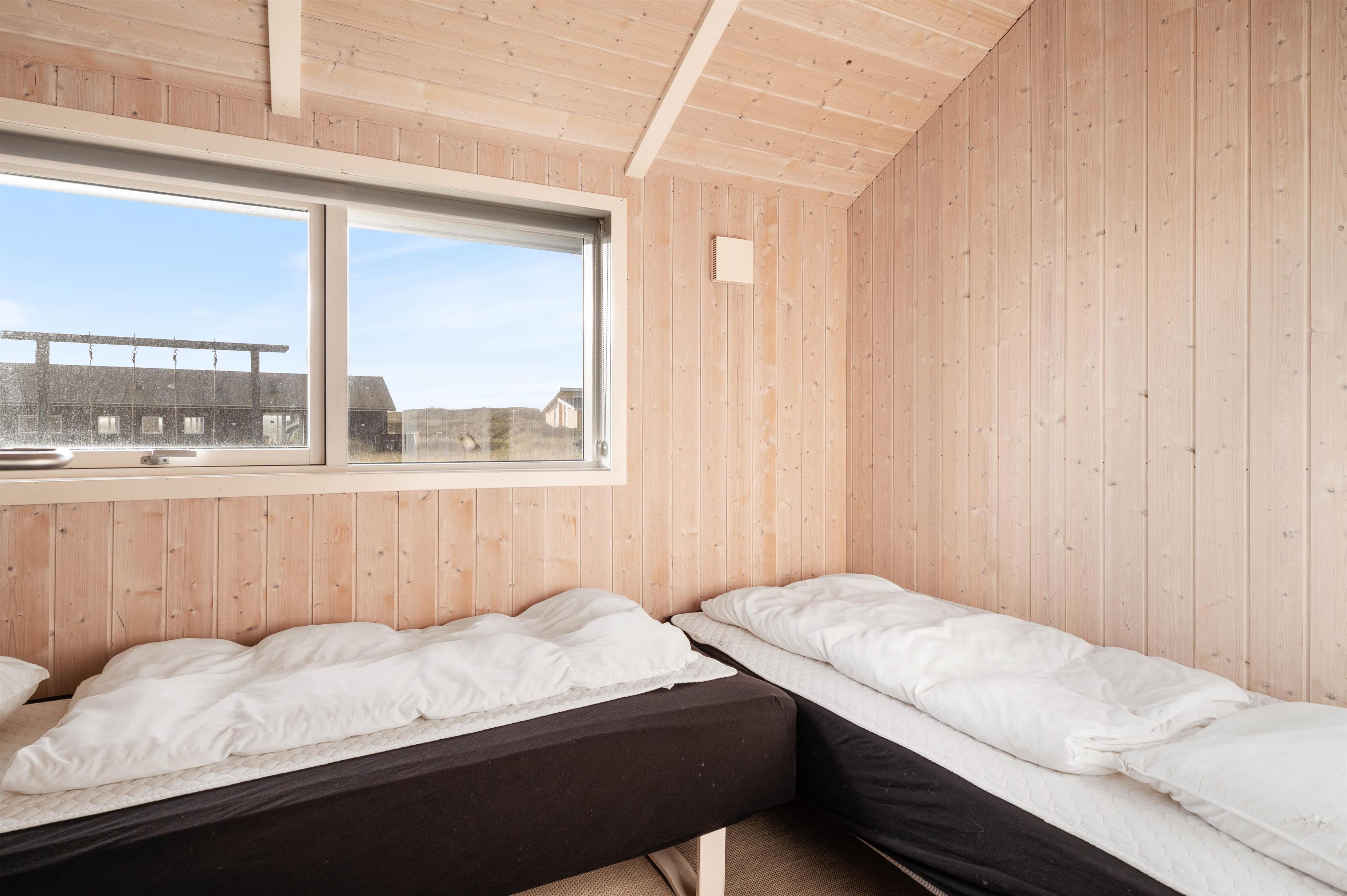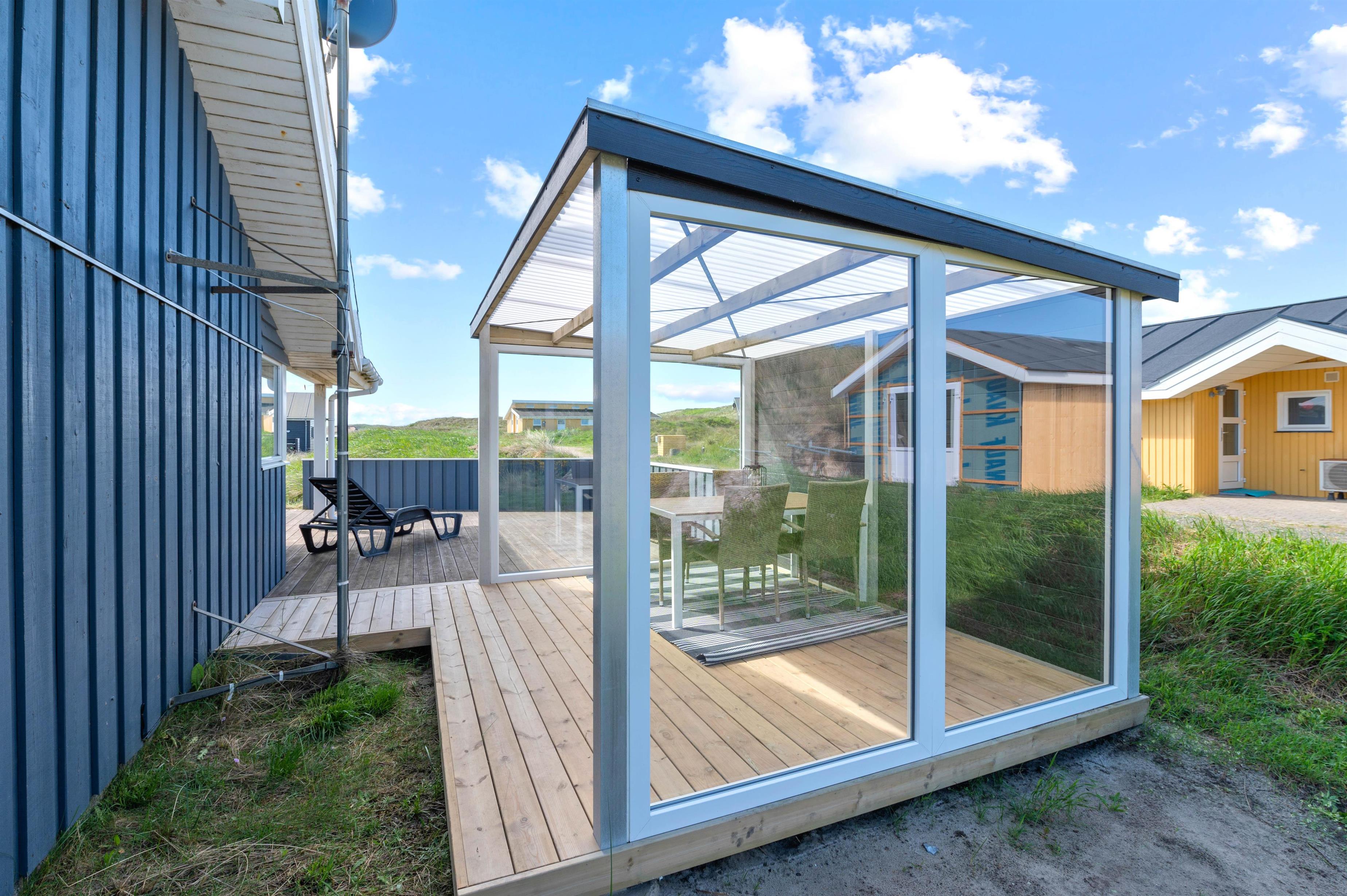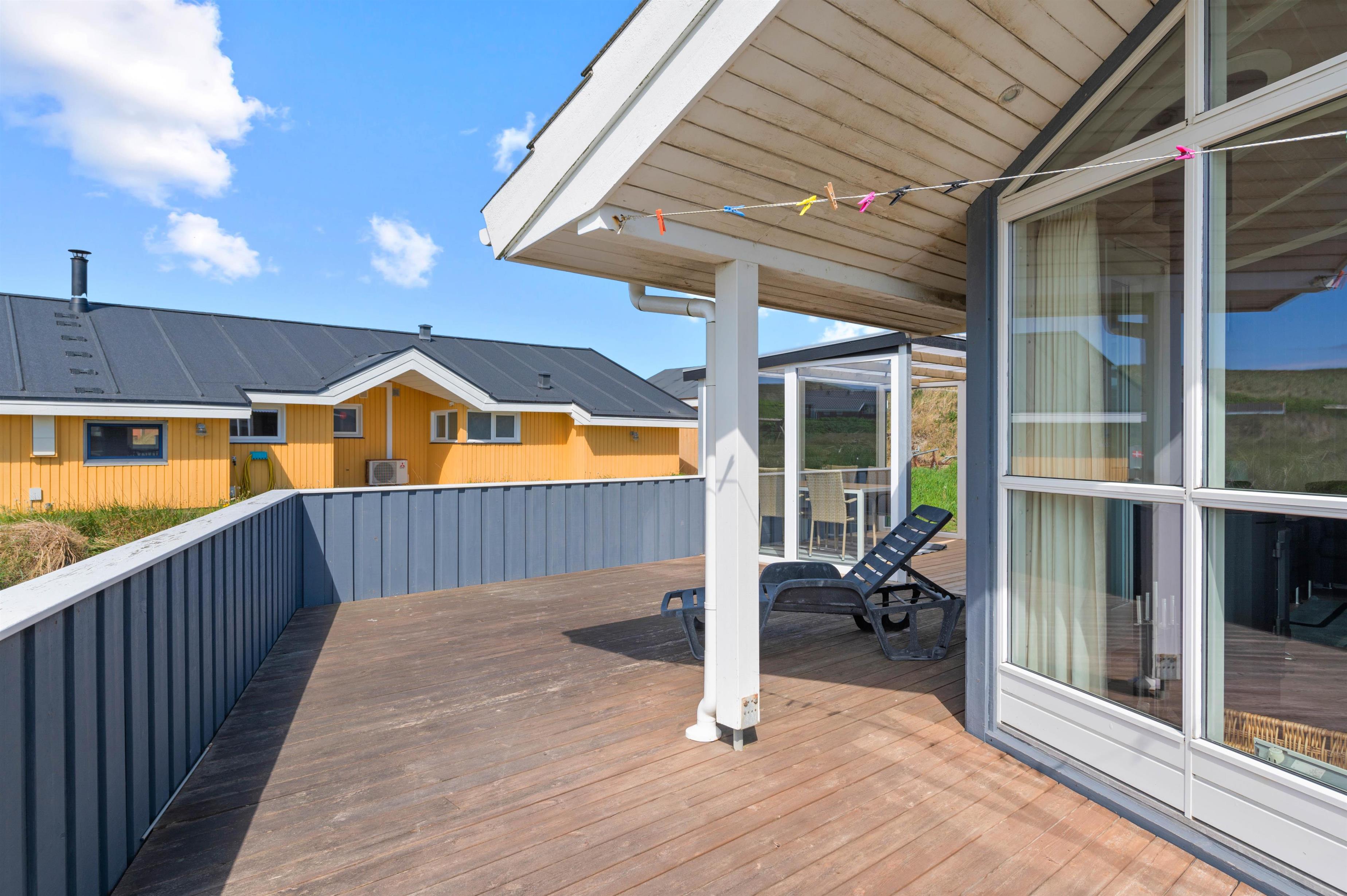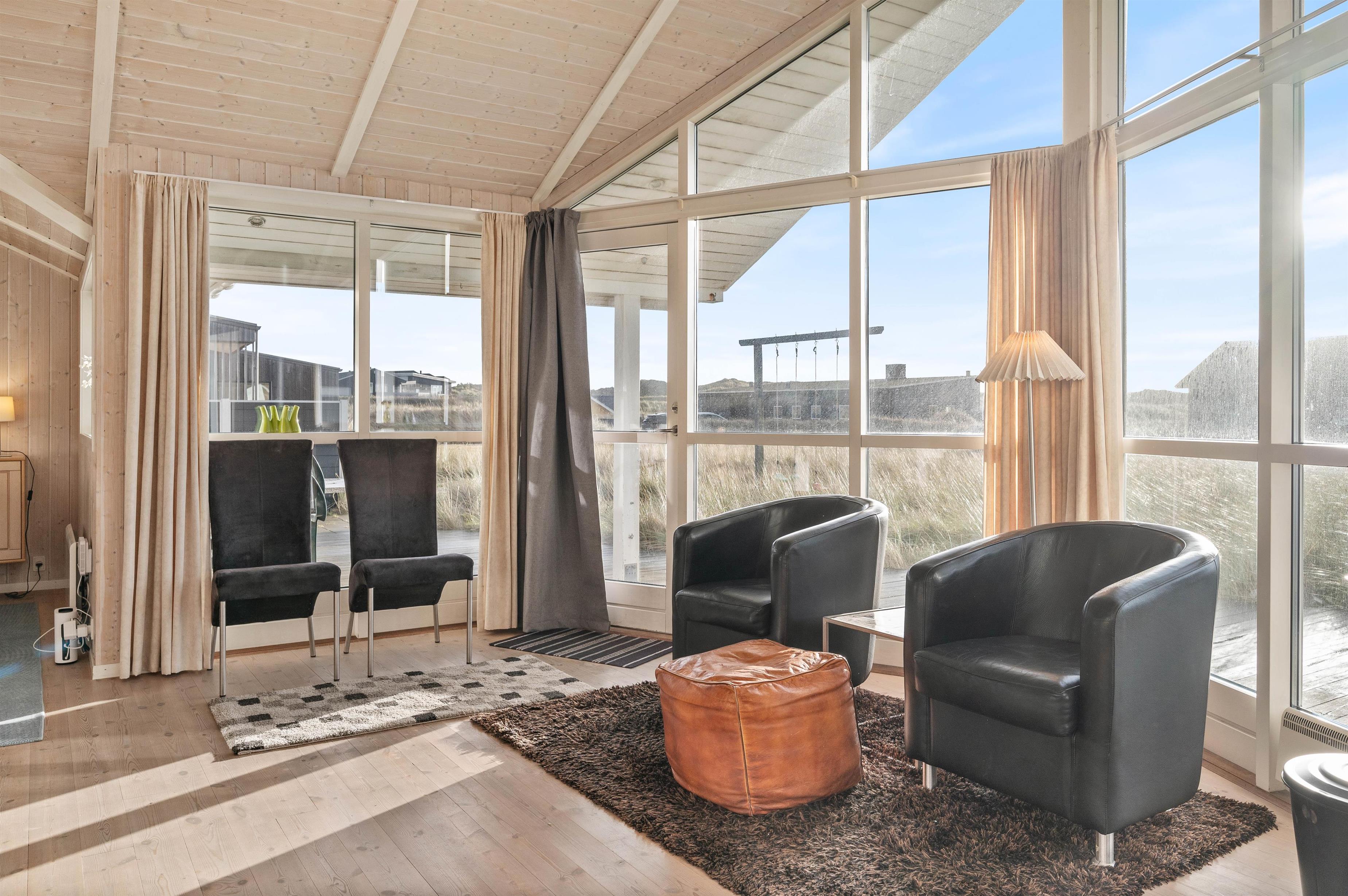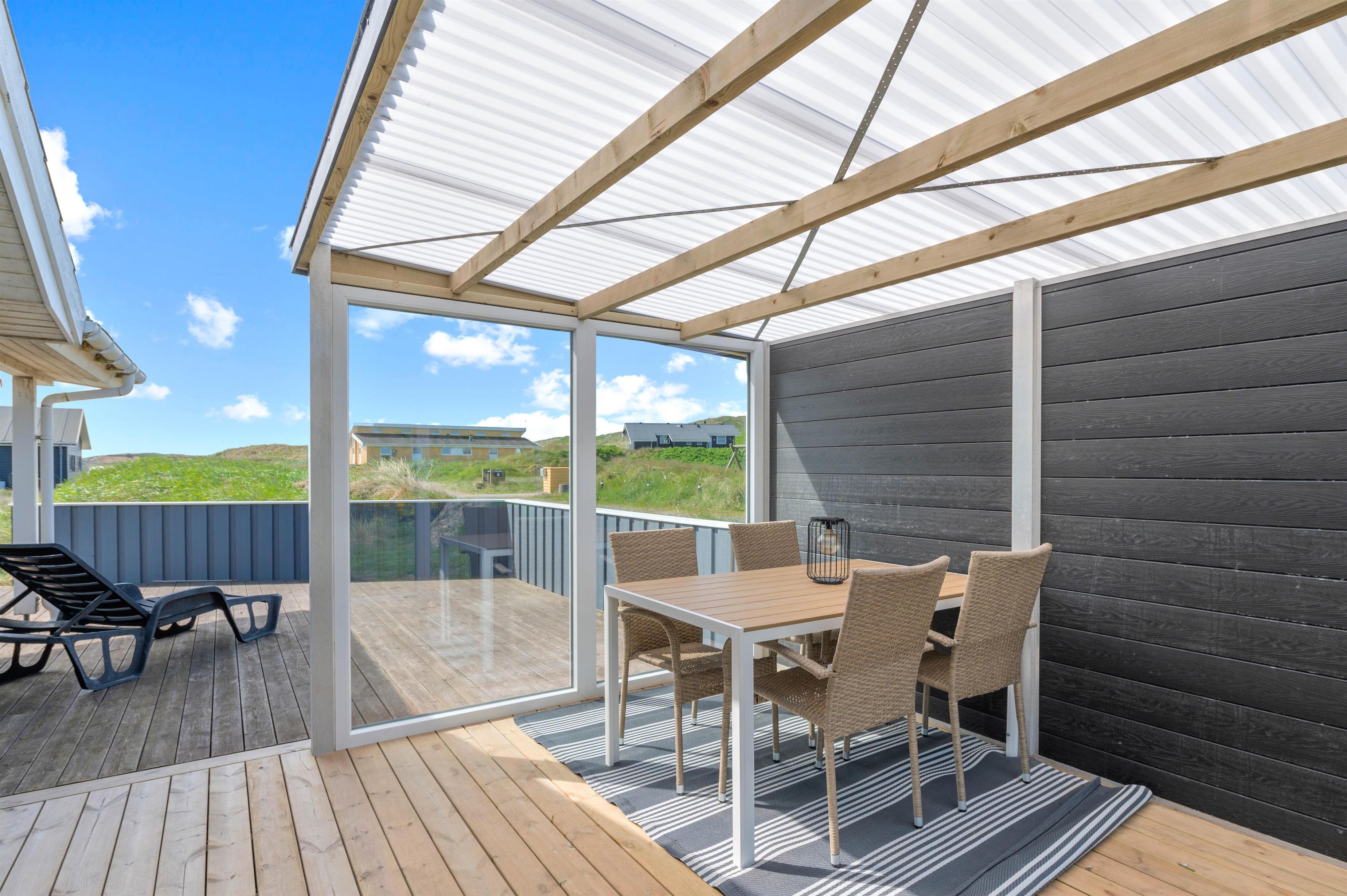 Sommerhuset på Mettes Bjerg 26 har en rigtig god beliggenhed. Her er der nemlig blot 200 meter til Vesterhavet med de smukke hvide sandstrande og det dejlige hav. På den sydvendte terrasse kan I nyde den friske havduft og den smukke natur, der omgiver sommerhuset.