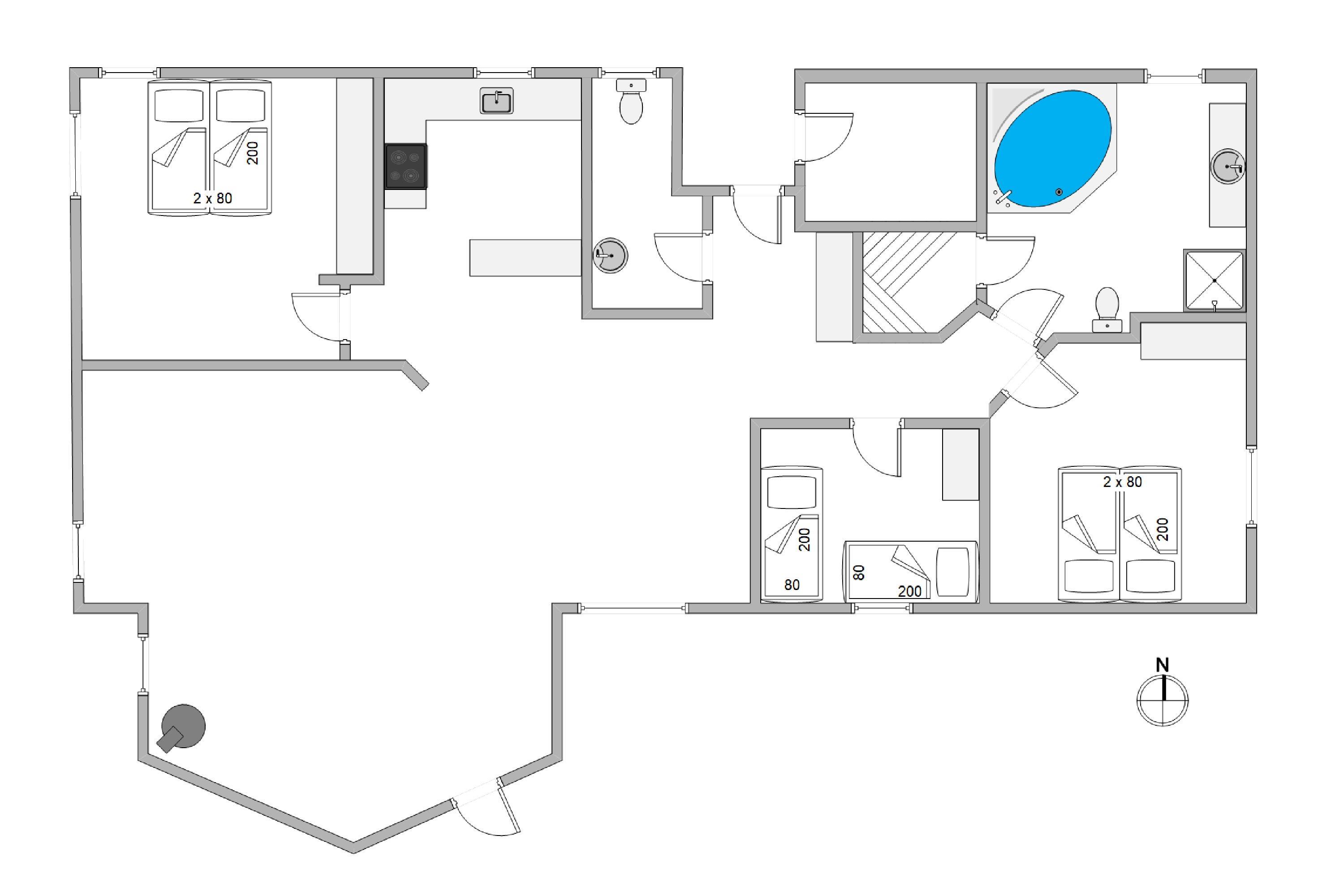 Alle medlemmer af familie vil sætte pris på de gode faciliteter, der er i sommerhus. Her er der nemlig, i tilfælde af dårligt vejr, mulighed for at kunne benytte spabadet og saunaen, hvor I kan nyde lidt ekstra feriehygge. Desuden er der også et gæstetoilet, og begge rum er med gulvvarme.