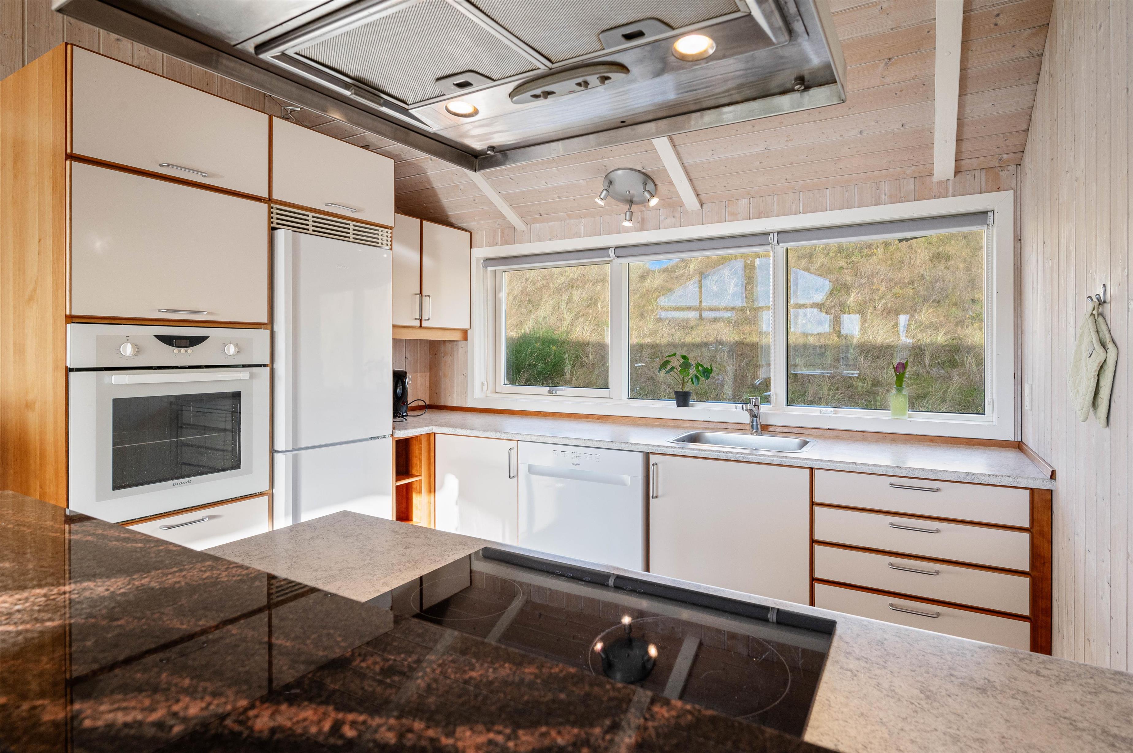 I sommerhuset er der et stort køkkenalrum, som byder til samling af hele familien. Her kan alle være, hvad enten man laver et lækkert måltid, klarer dagens opvask, spiller brætspil ved køkkenbordet eller ser en god film på fjernsynet. Derudover er er der 3 gode og komfortable soveværelser. 2 værelser med dobbeltsenge og et værelse med 2 enkeltsenge.