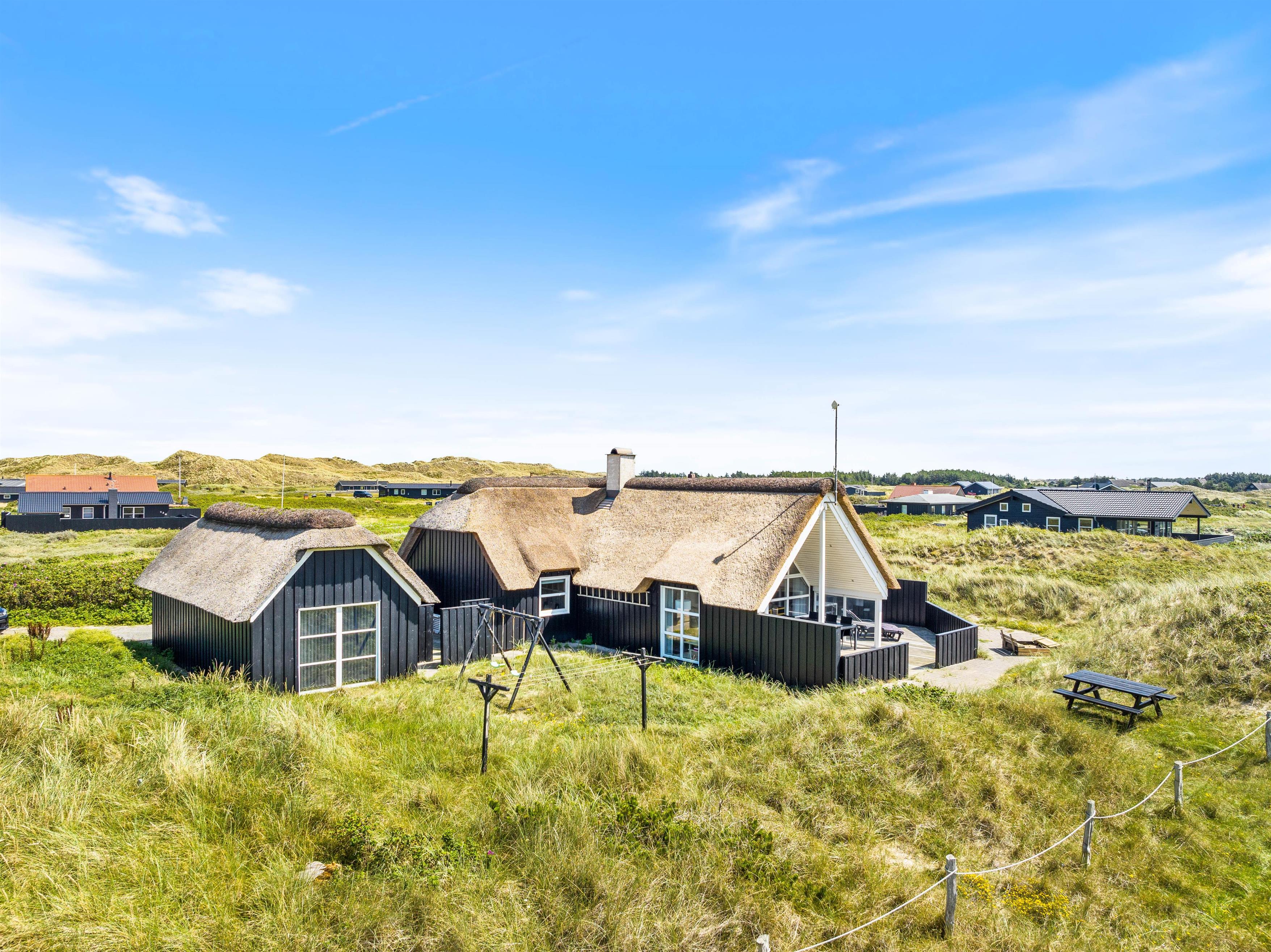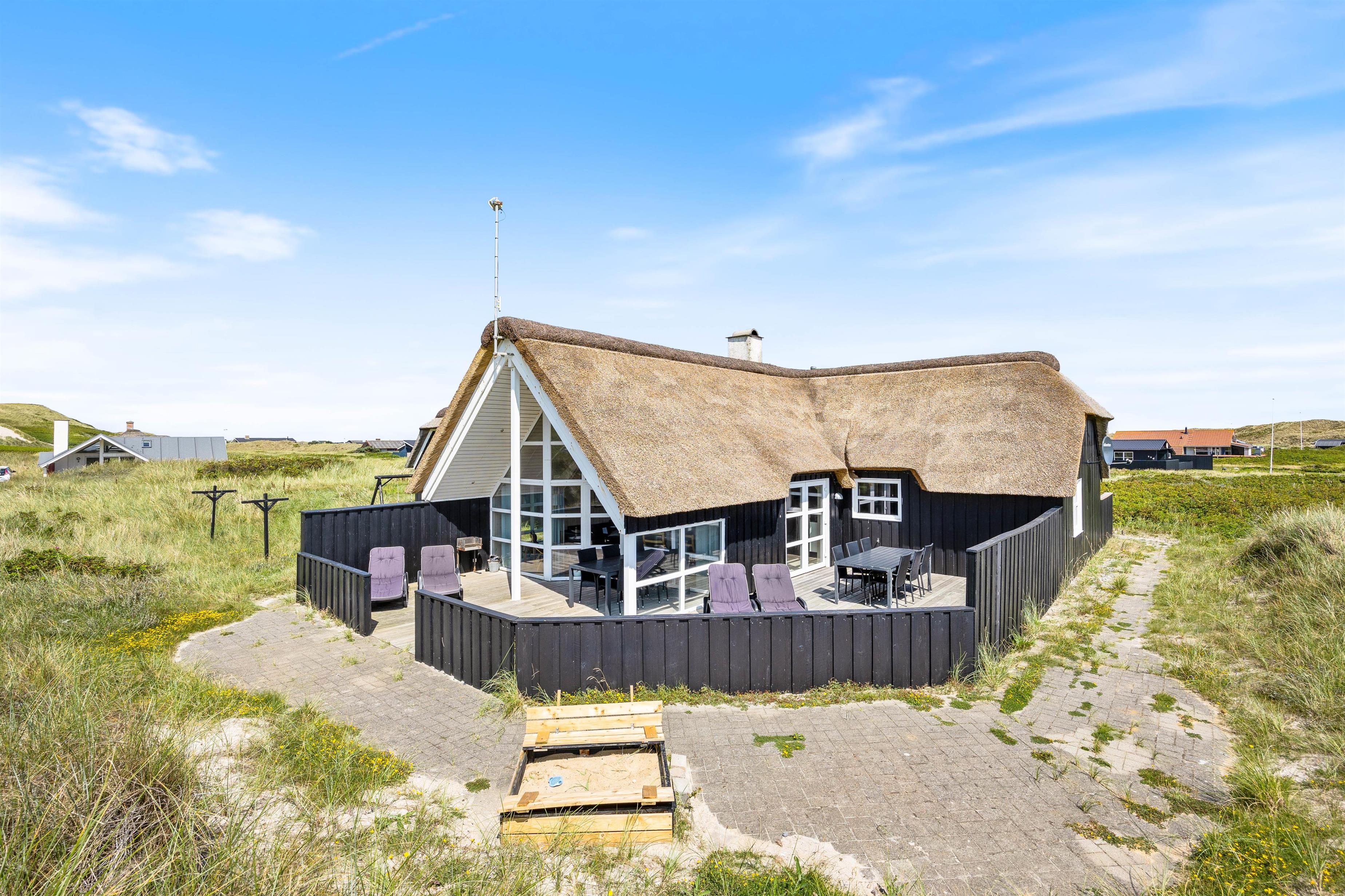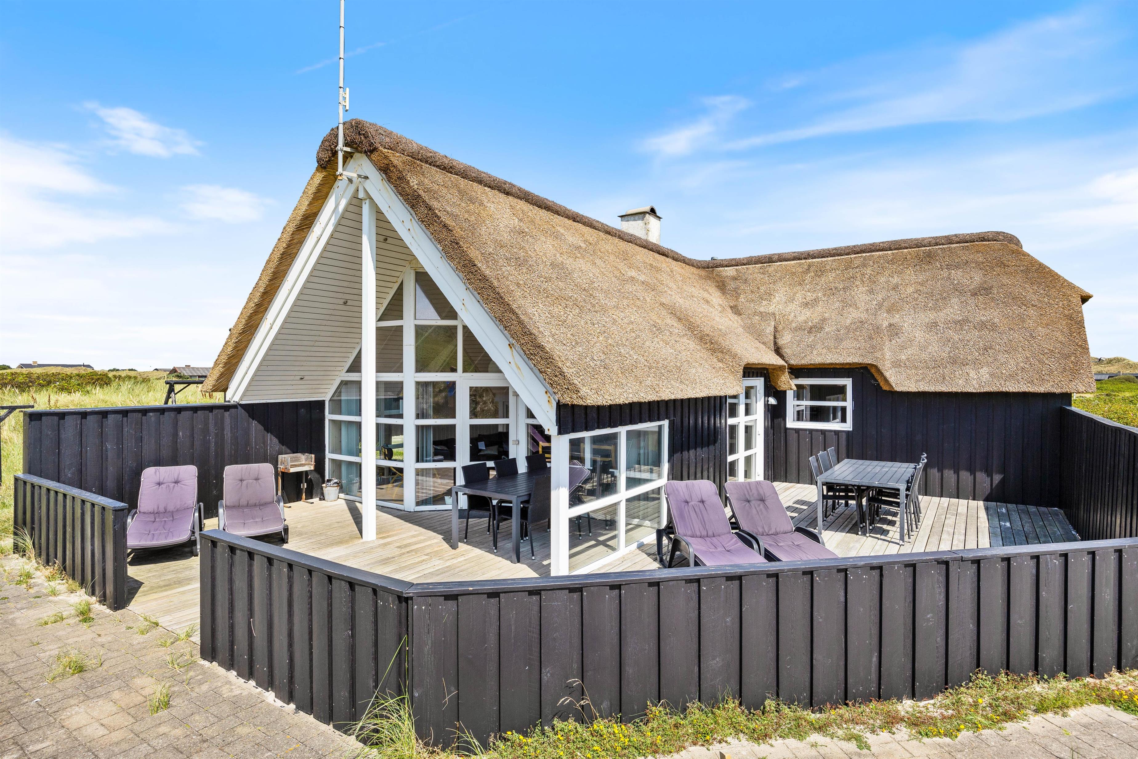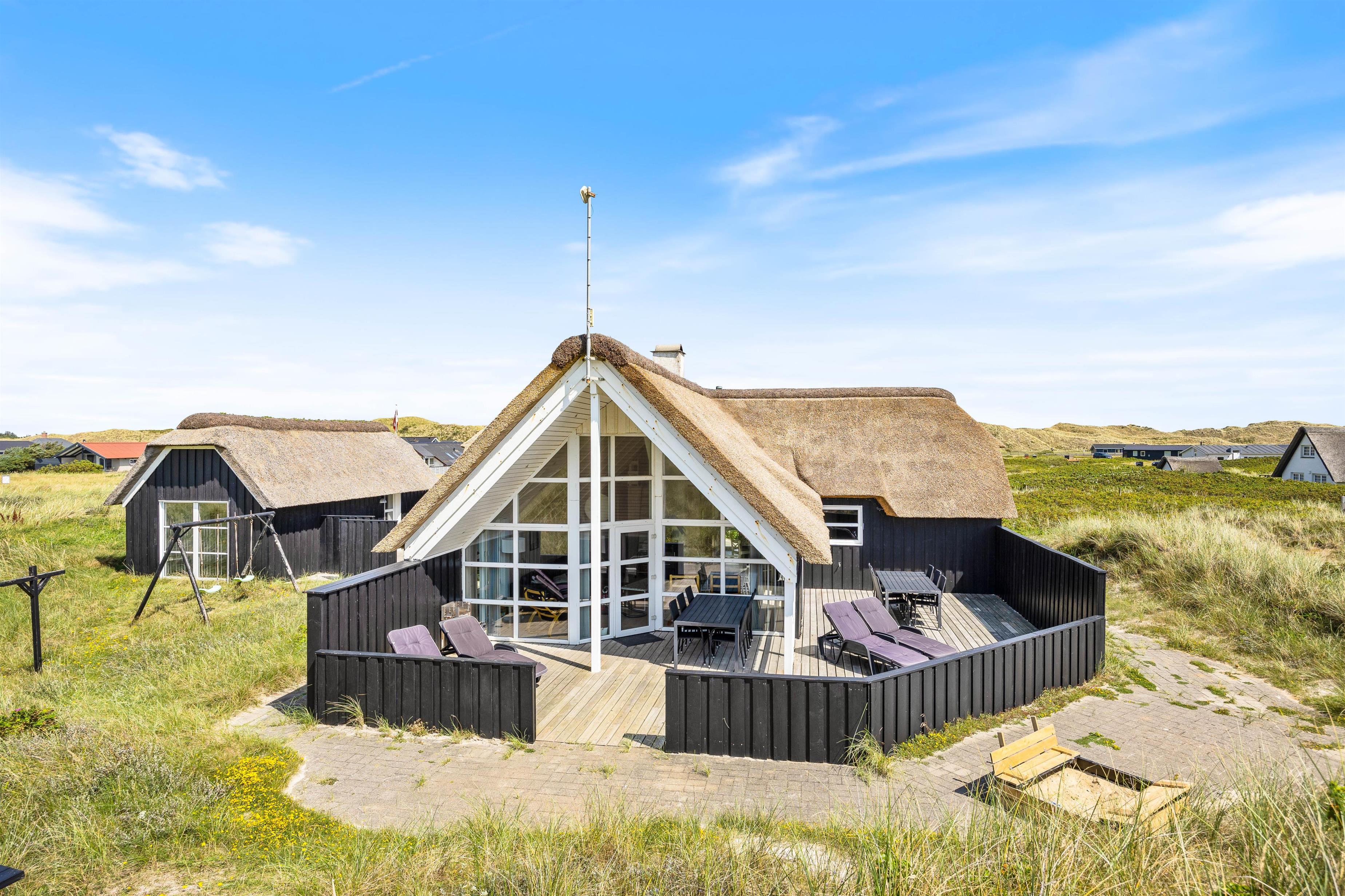 På Tingodden 113 møder i et spændende stråtækt sommerhus, opført i smukt sort træ, med en unik beliggenhed på en stor klitgrund i den første klitrække tæt på Vesterhavet. Her er en smukt og lyst indrettet hus med højt til loftet. Med både spabad, sauna og forskellige aktiviteter er der altid noget at give sig til. Med omkringliggende terrasser er der altid en dejlig udsigt til klitterne, som giver en skøn feriefornemmelse.