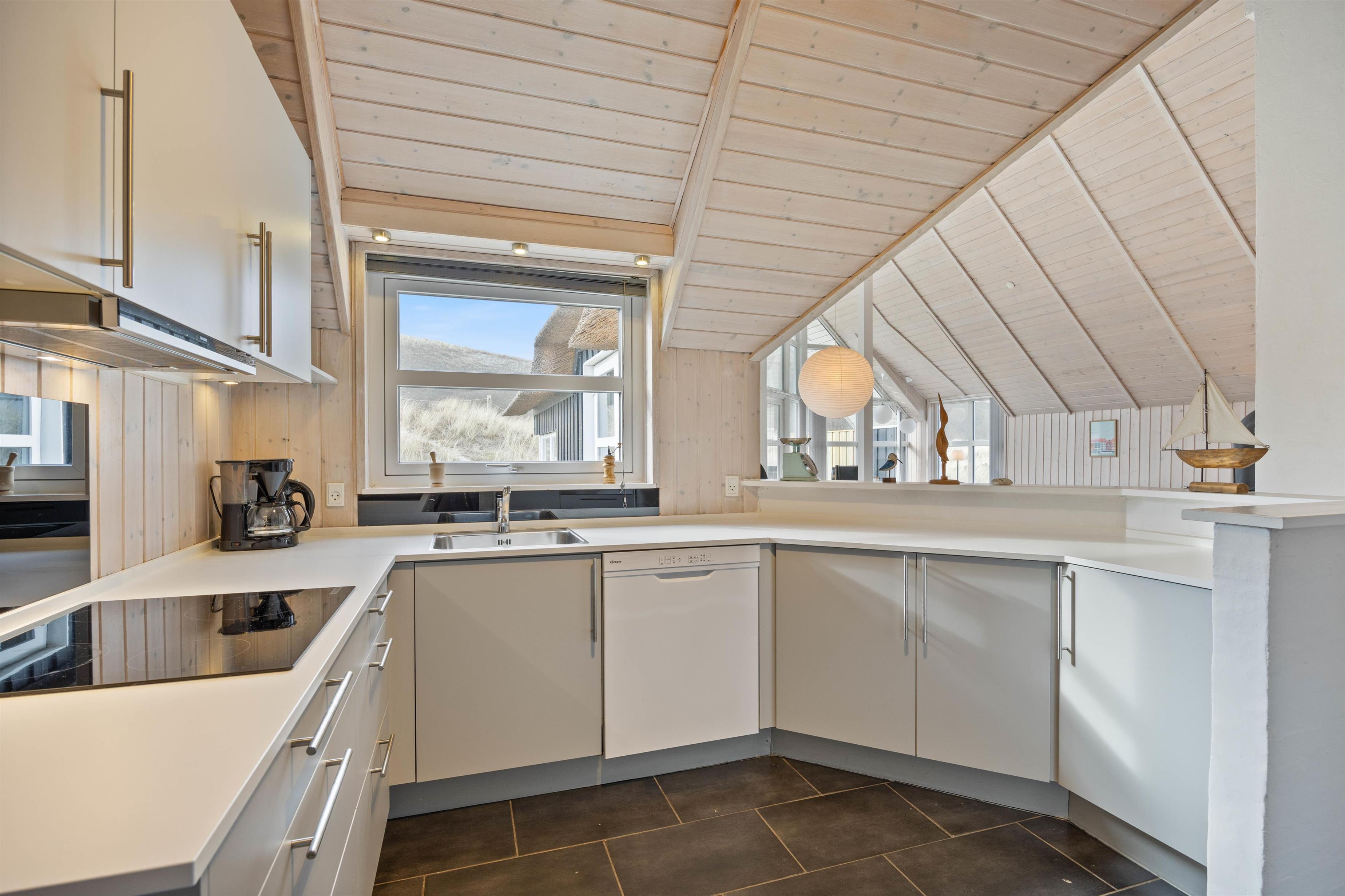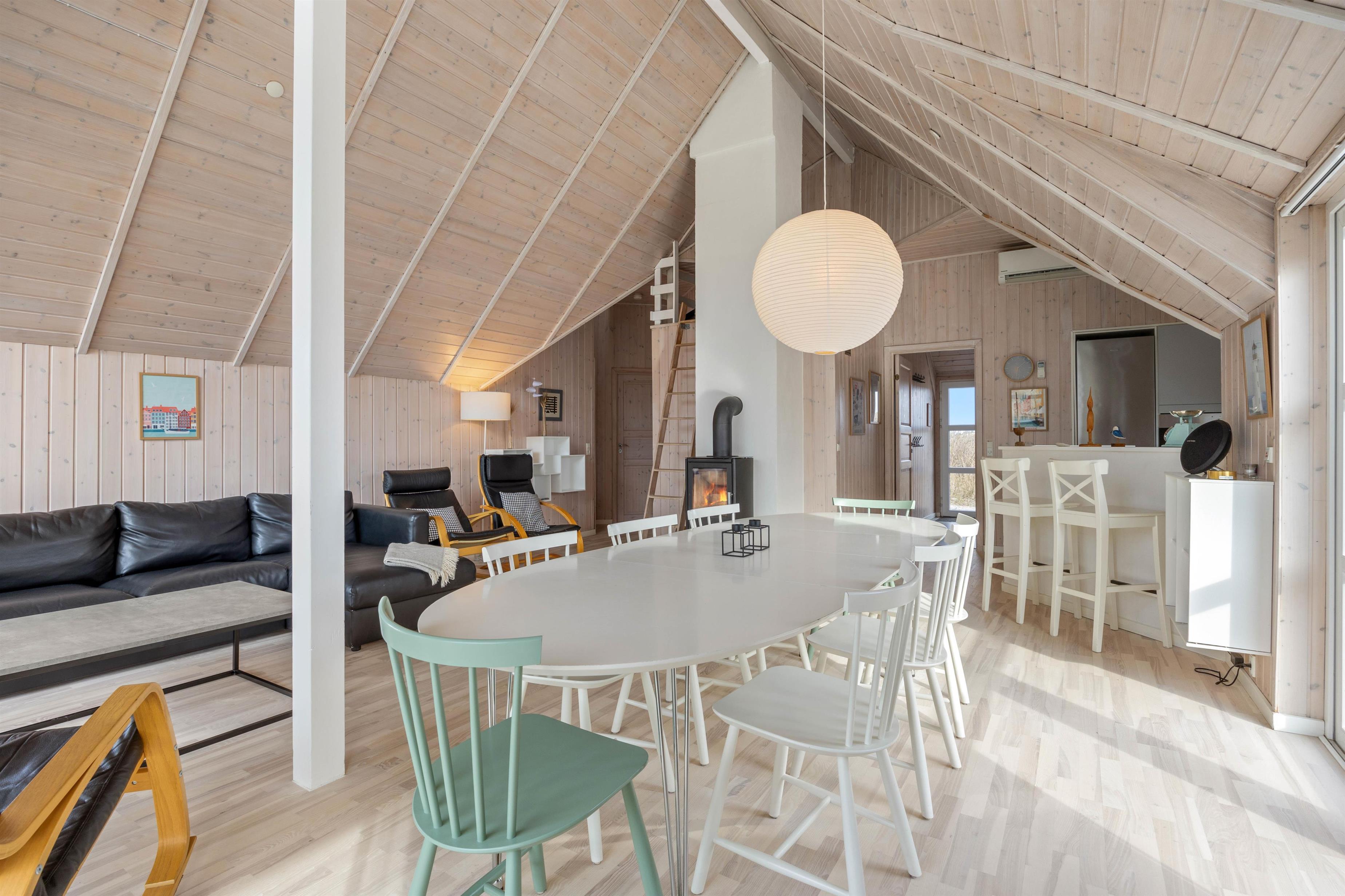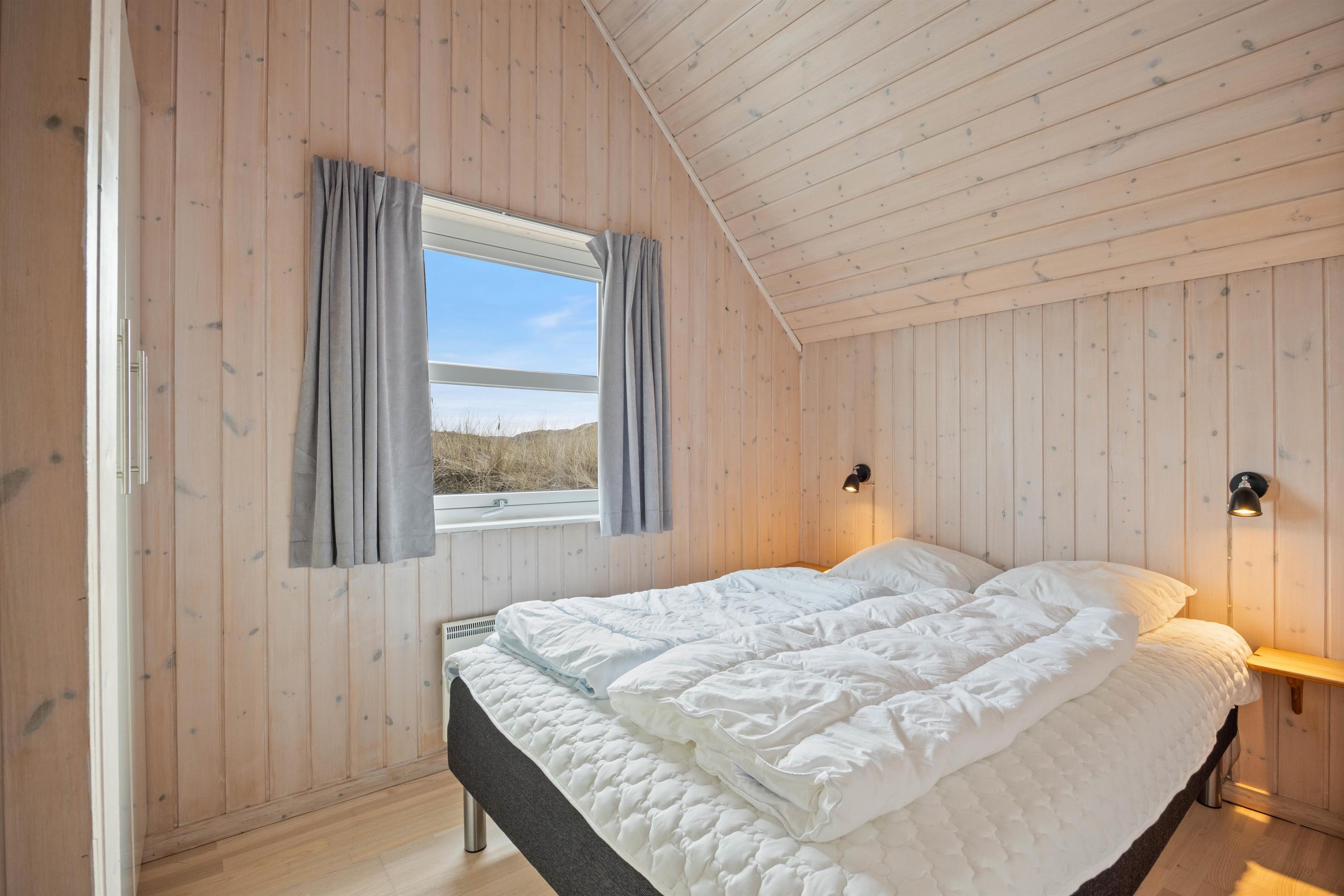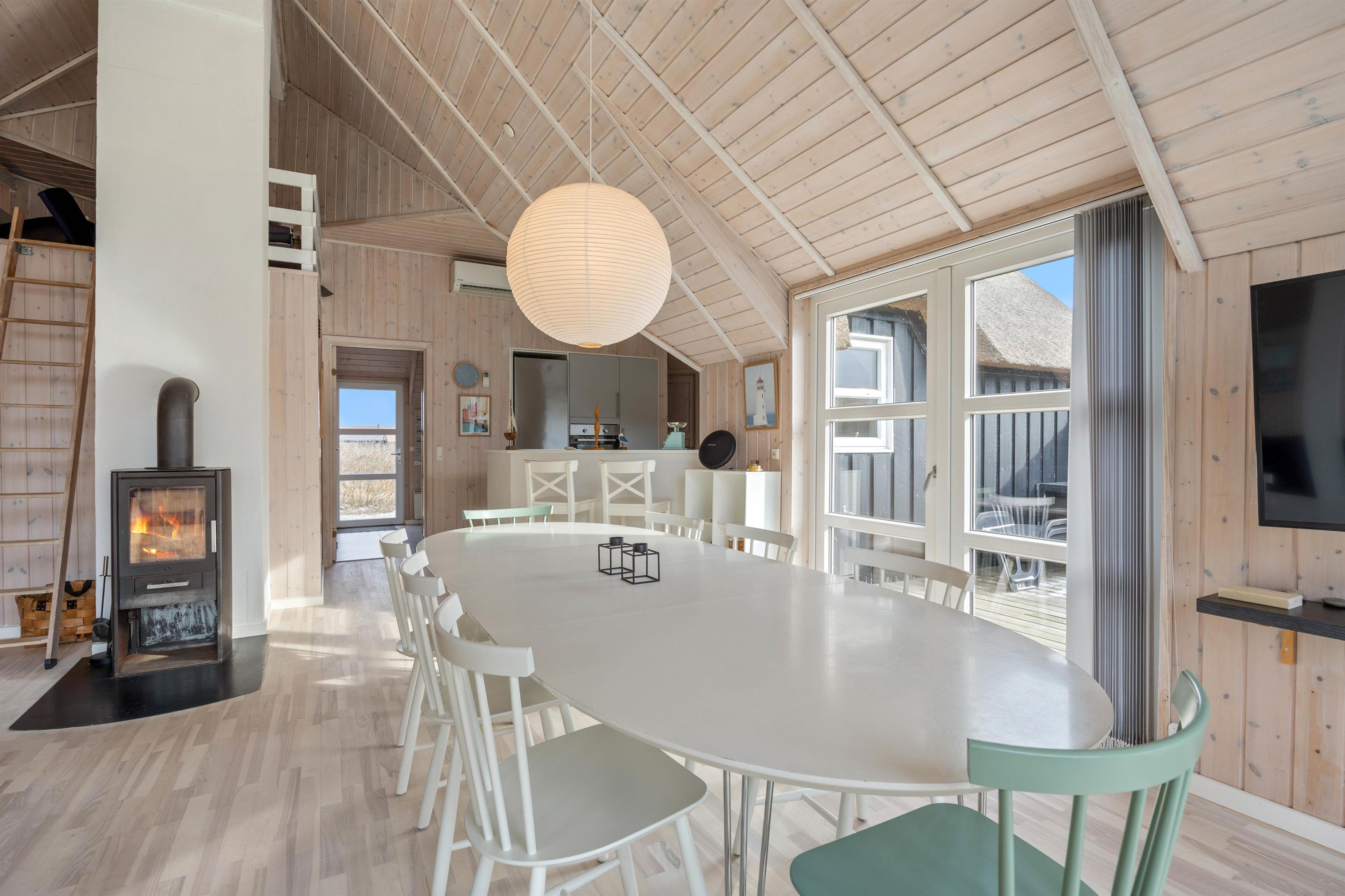 Sommerhuset blev bygget i 2004, men fremstår yderst indbydende, med de lyse træ loft, vægge og gulve samt store gulv til loft vinduer. Med det store vinduesparti i stuen, kan man nyde den danske natur med en skøn udsigt over klitterne. Her får i et fantastisk lysindfald, som giver en rigtig sommerhusstemning.