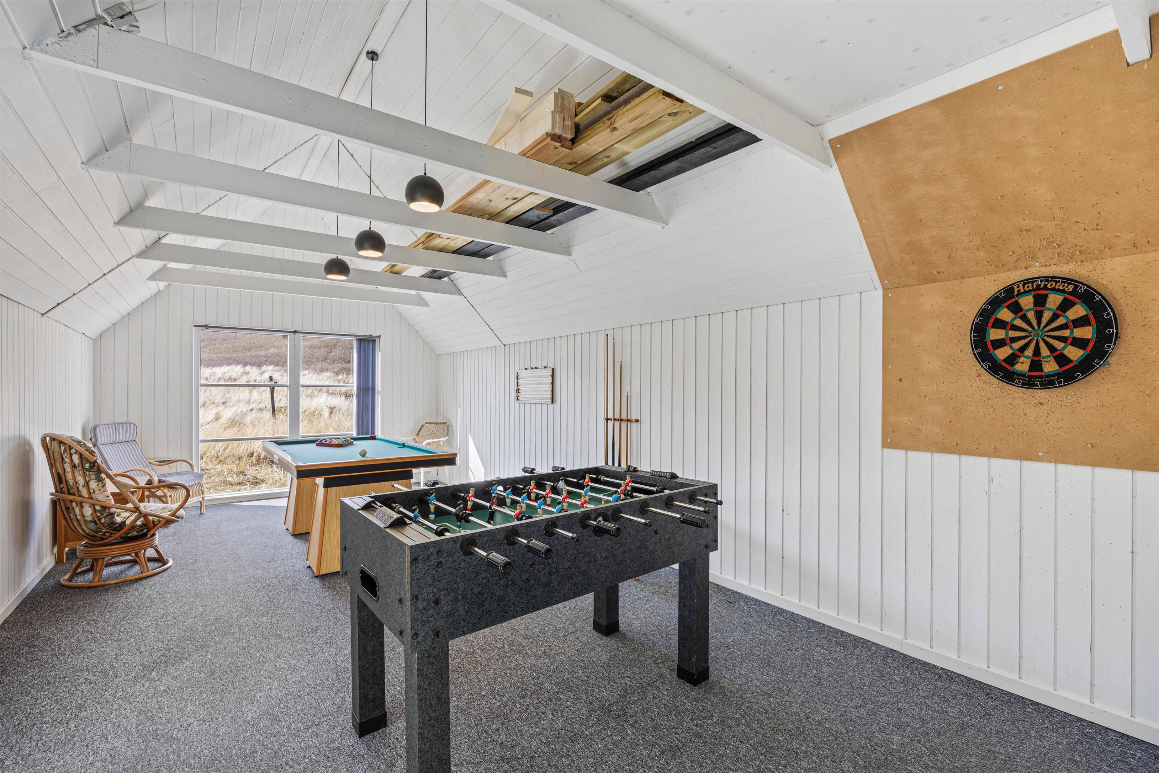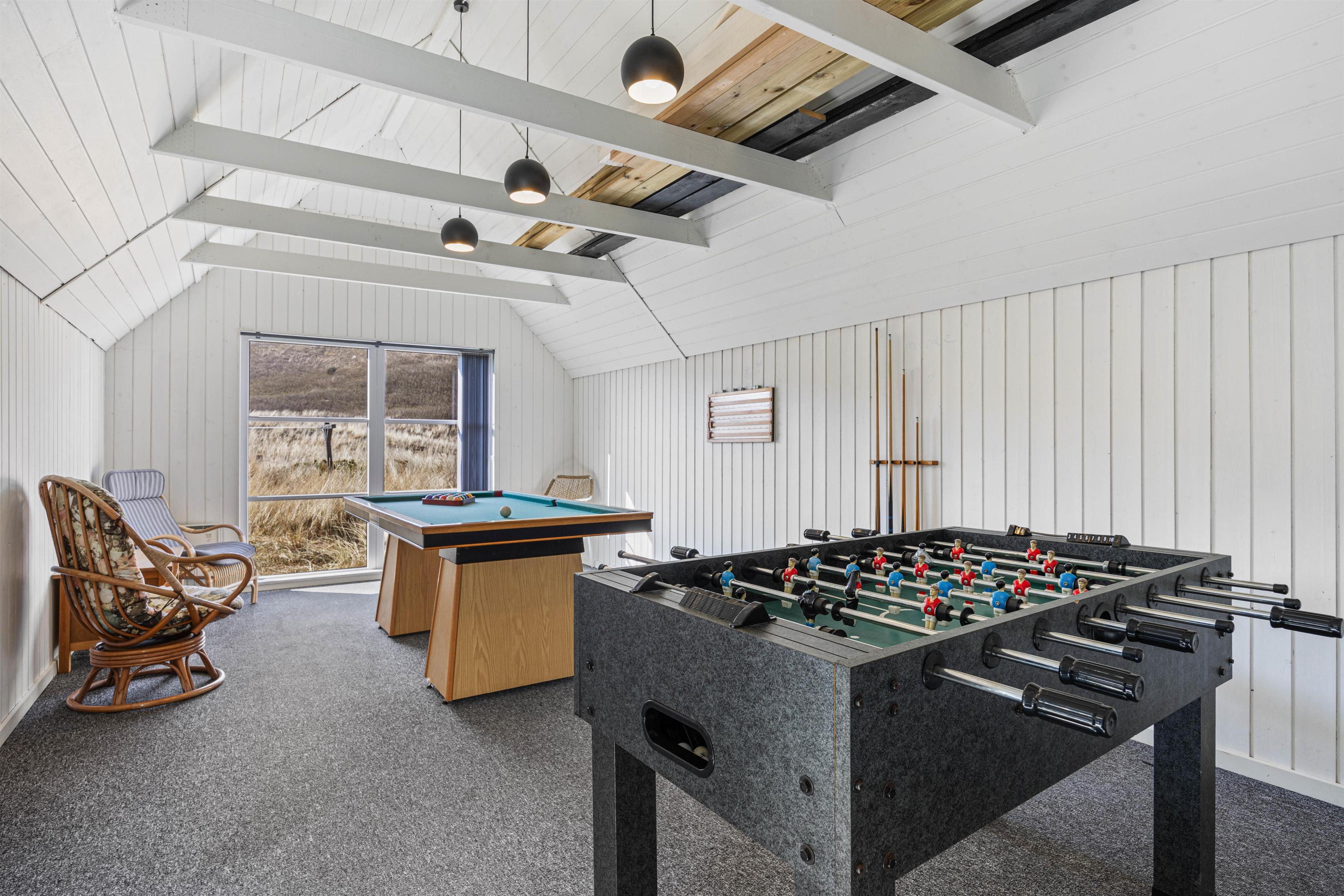 Huset er yderst familievenligt, her er der nemlig underholdning til alle aldre. I aktivitetsrummet finder I både et billardbord og et bordfodboldbord så I kan have en lille familieturnering.