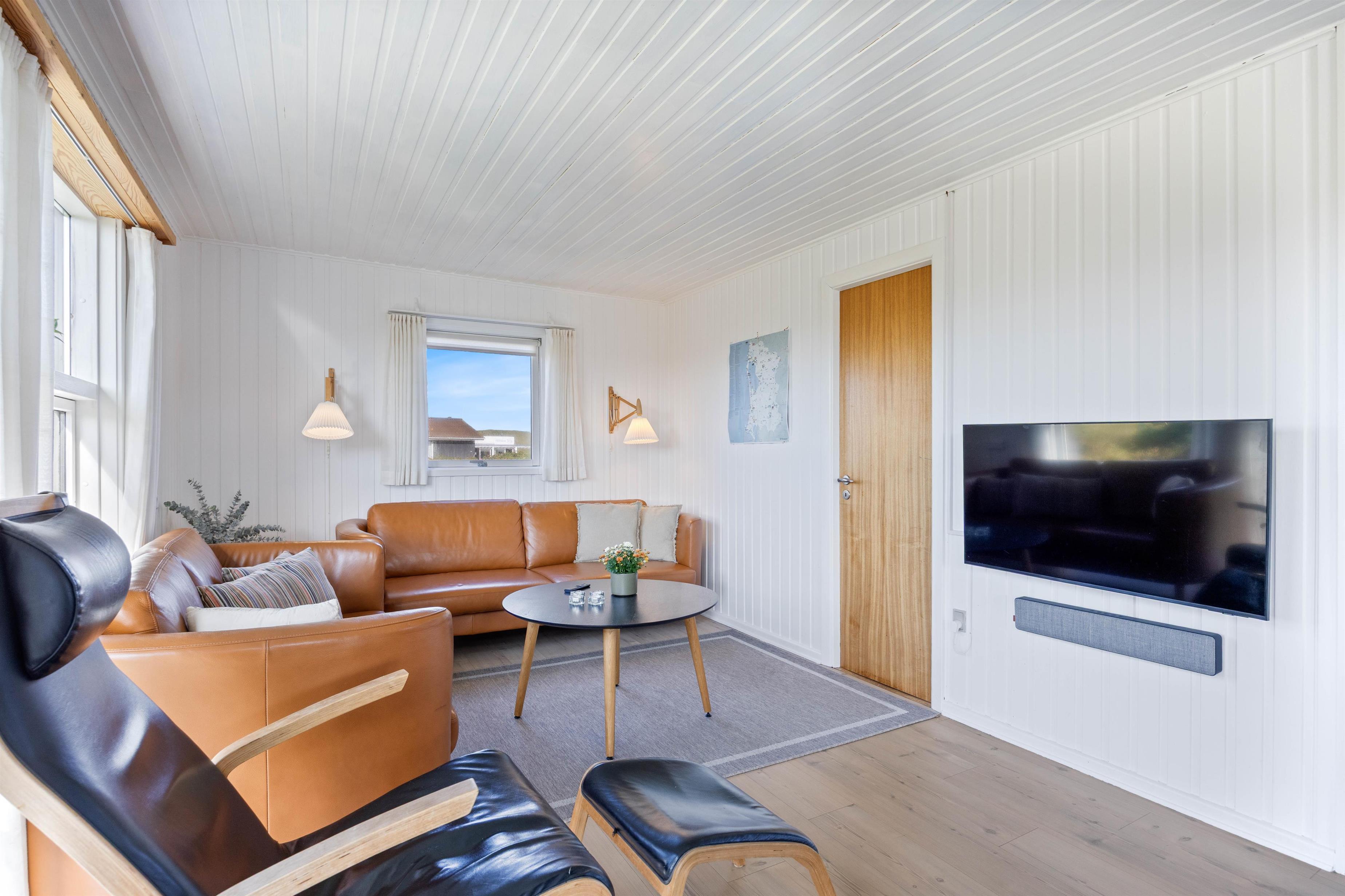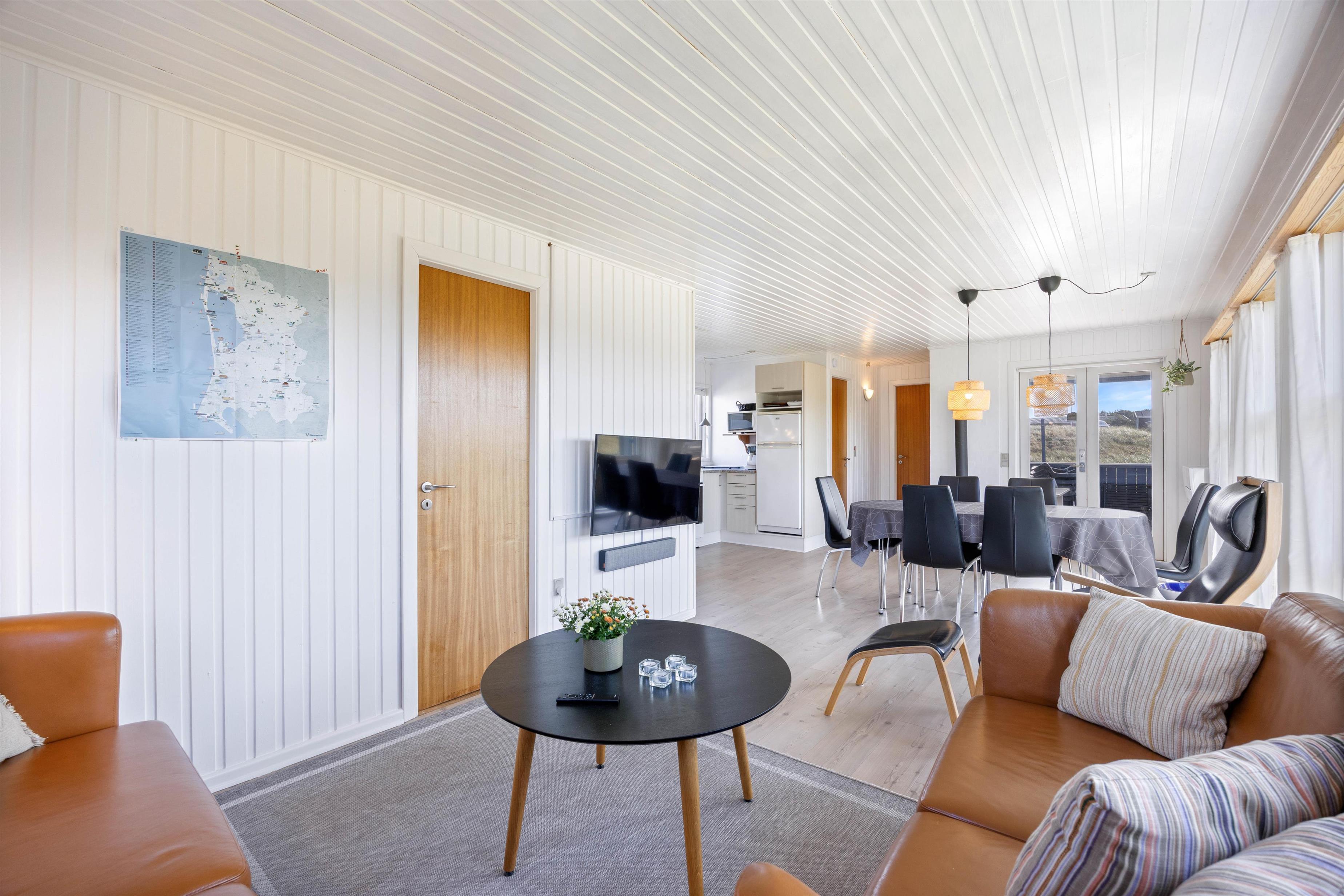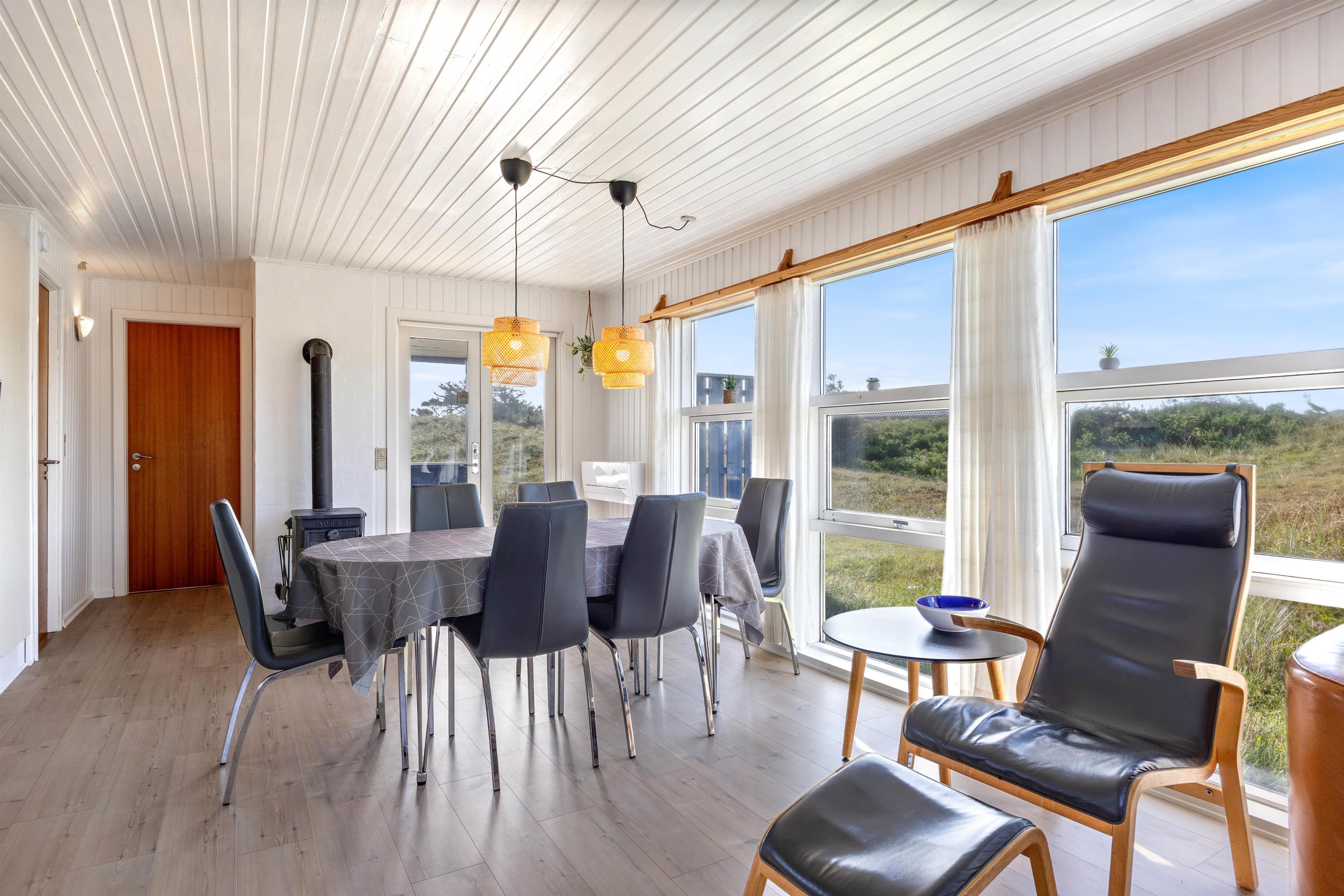 Dette hyggelige sommerhus byder på et dejligt køkken/alrum, som er sommerhusets samlingspunkt. Fra stuen af kan I nyde den skønne udsigt til klitlandskabet og på de kolde dage, kan I tænde op i brændeovnen. Varmepumpen sørger for en dejlig temperatur året rundt. Køkkenet er veludstyret blandt andet med en opvaskemaskine, så I ikke skal bruge lang tid på de praktiske gøremål.