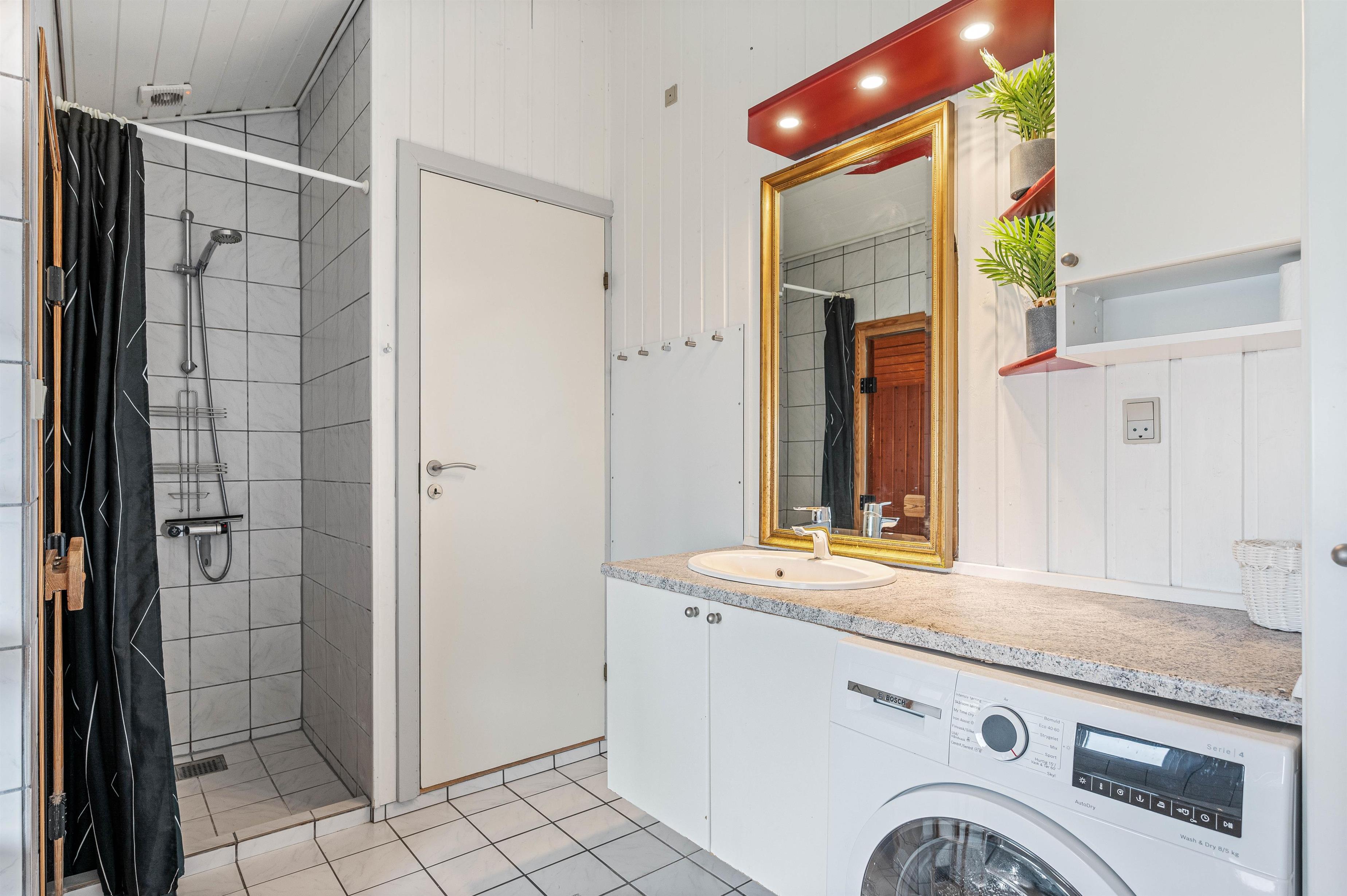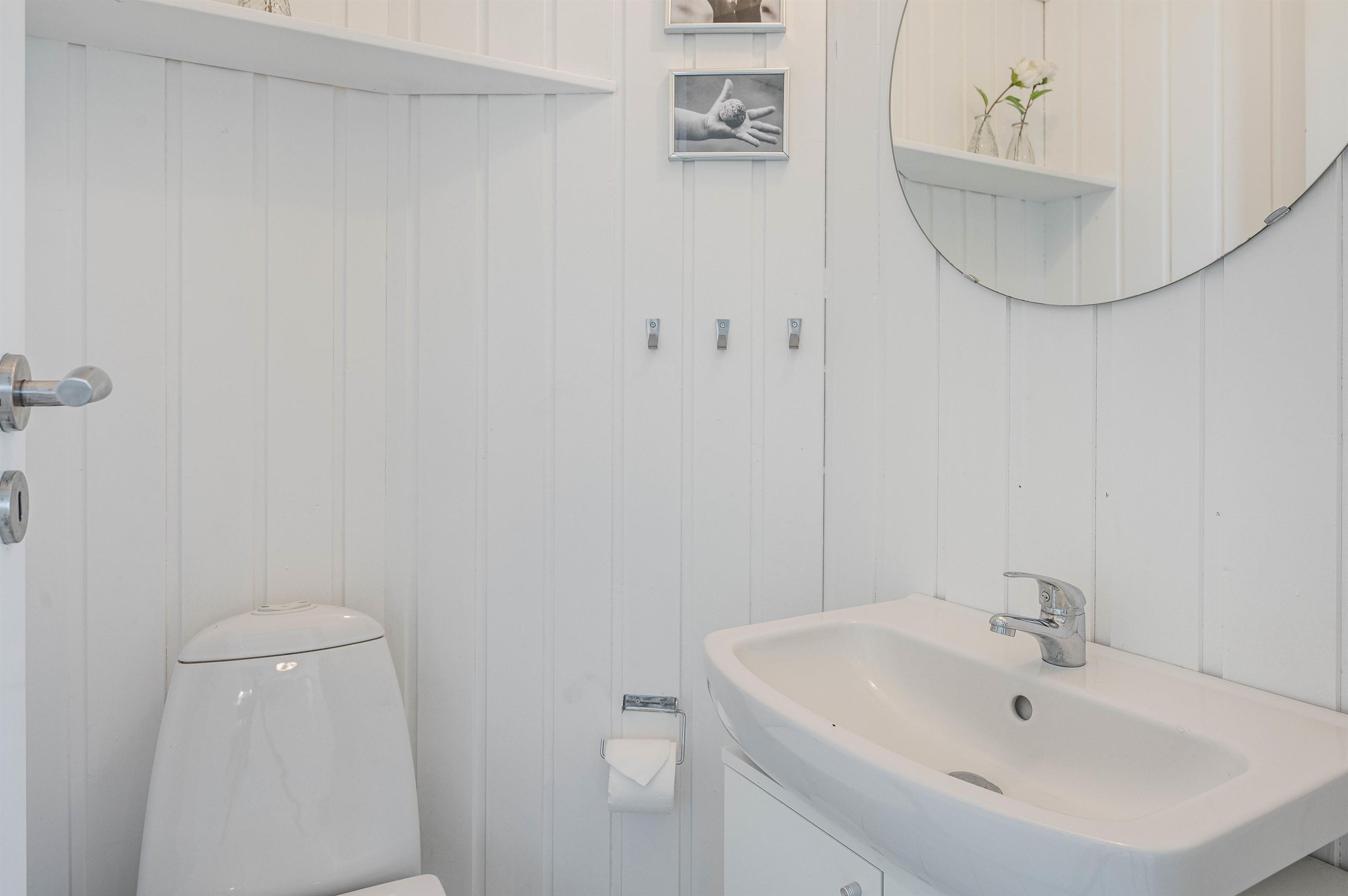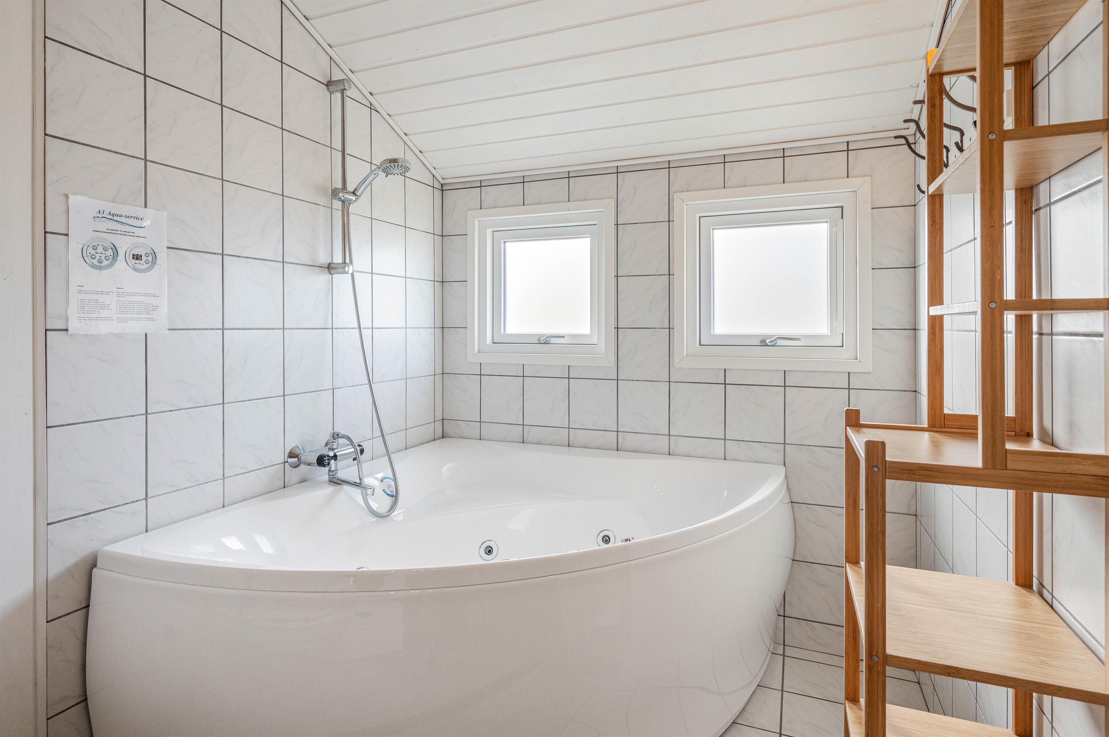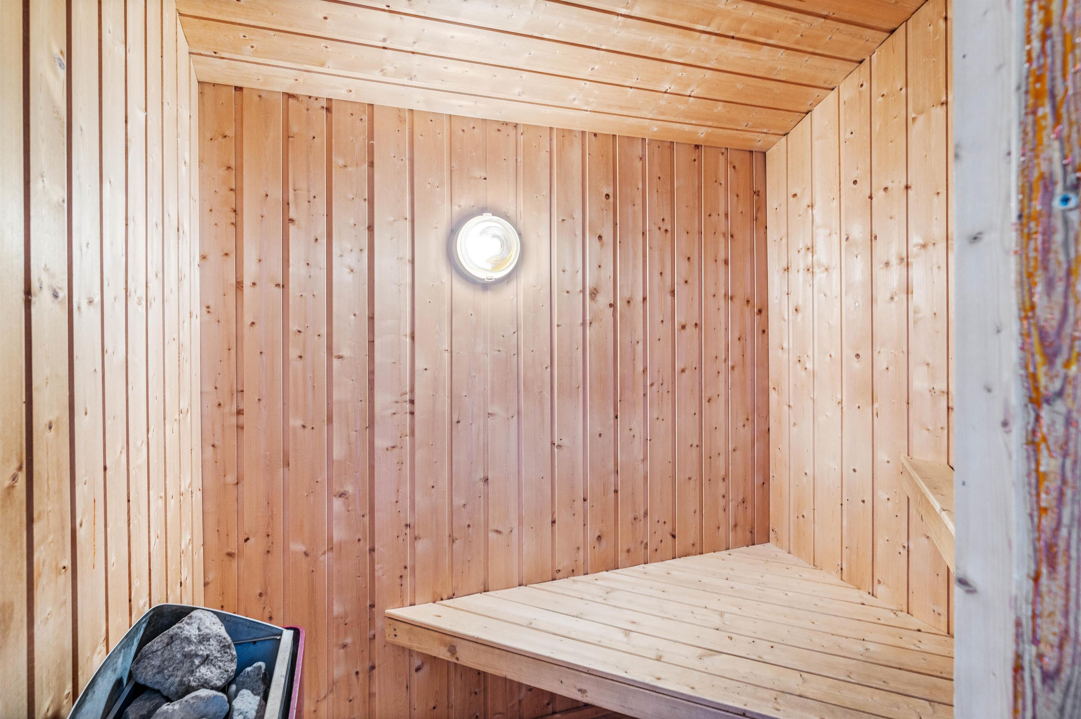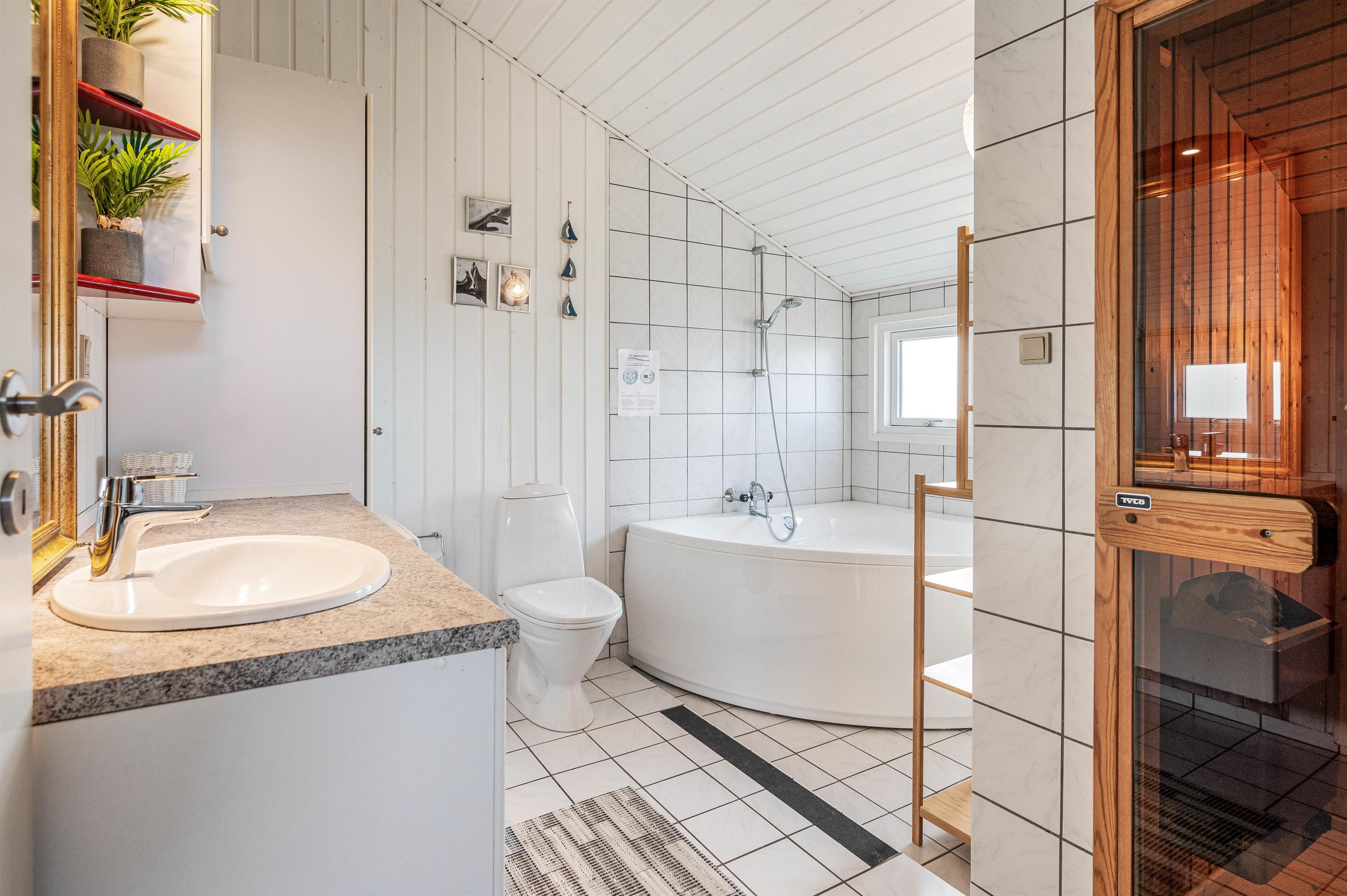 Badeværelset er udstyret med spabad og sauna, perfekt til et par afslappende timer i din ferie. Som et ekstra plus er der et ekstra toilet med gulvvarme, så køen ikke bliver for lang om morgenen.
