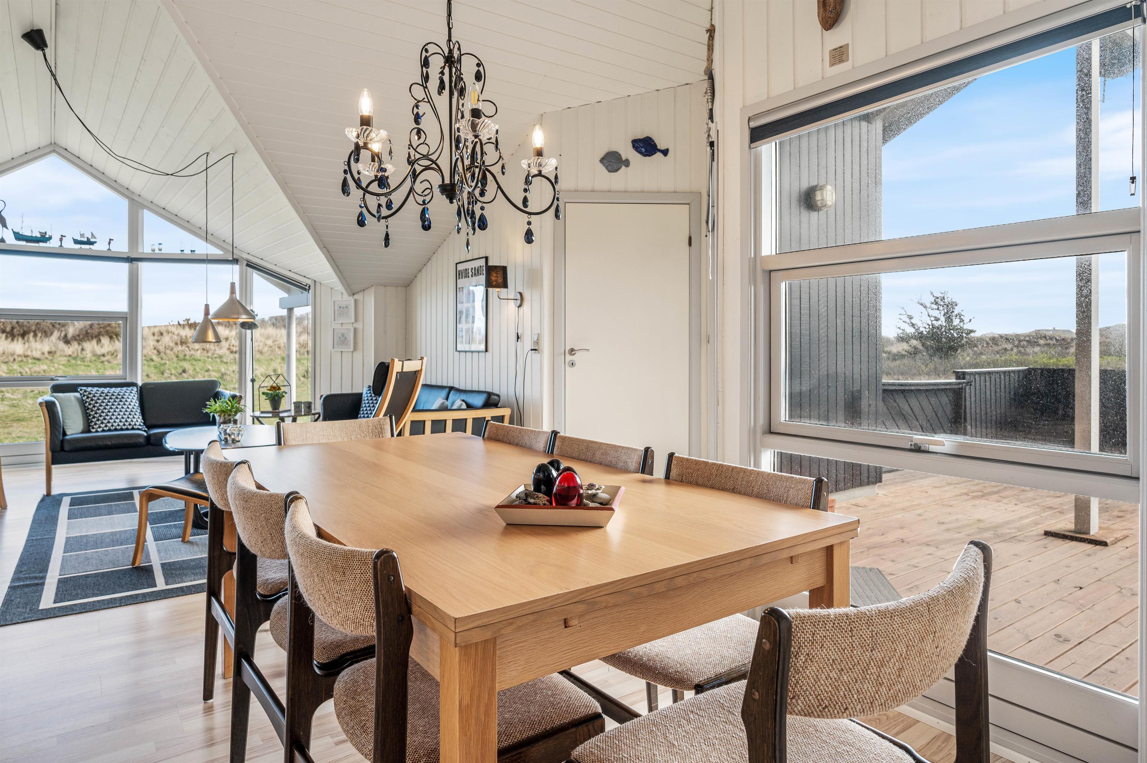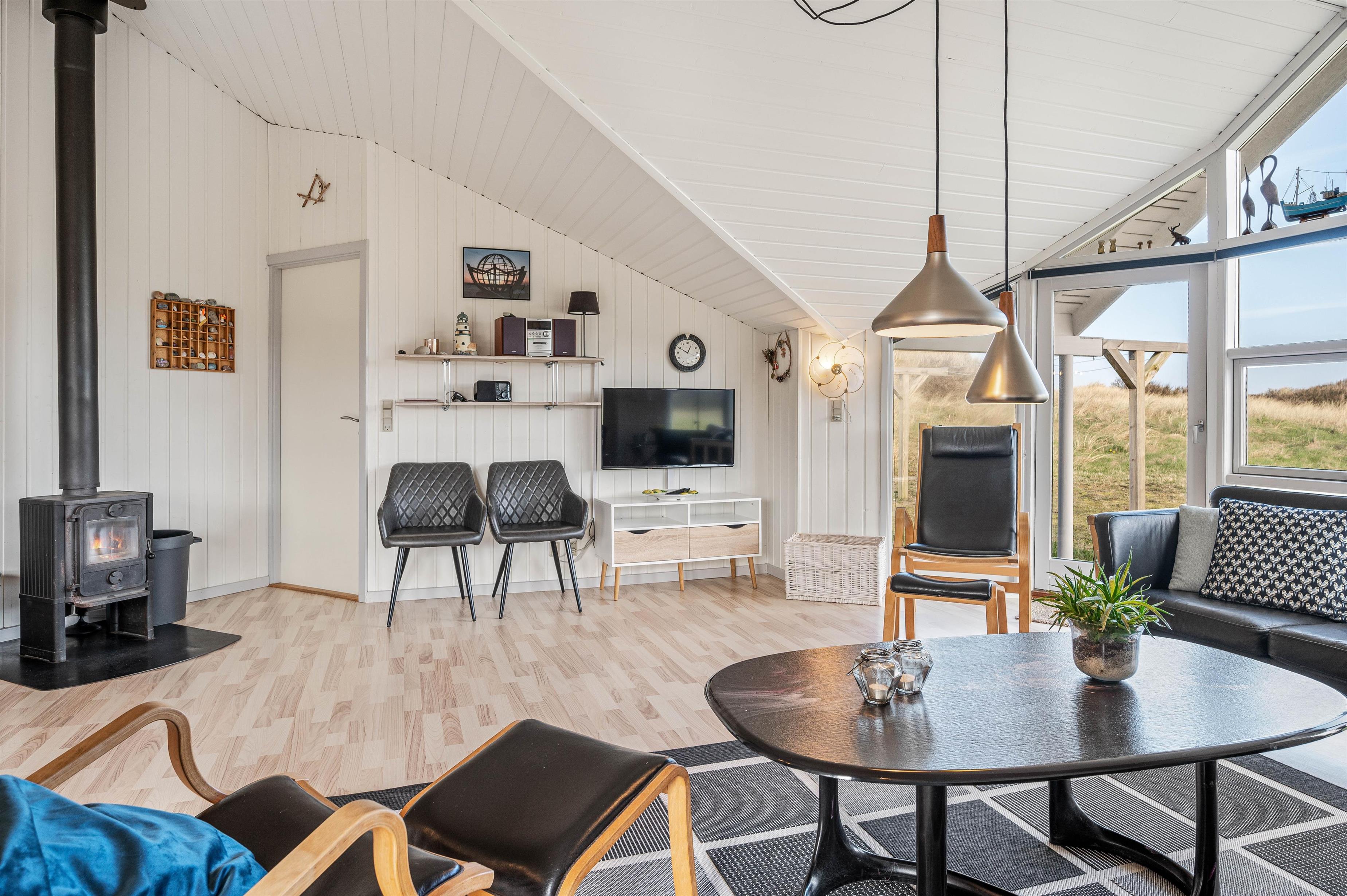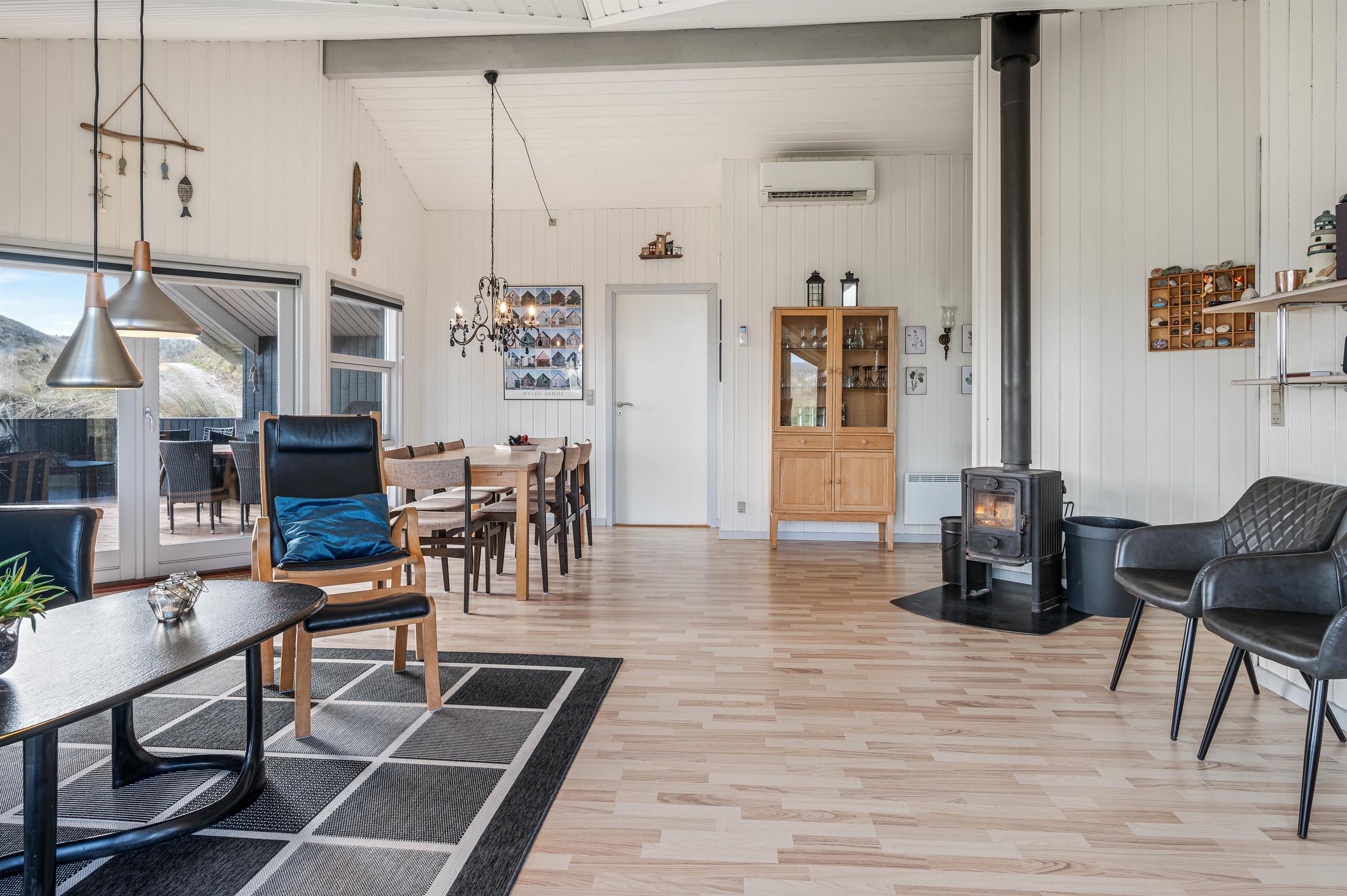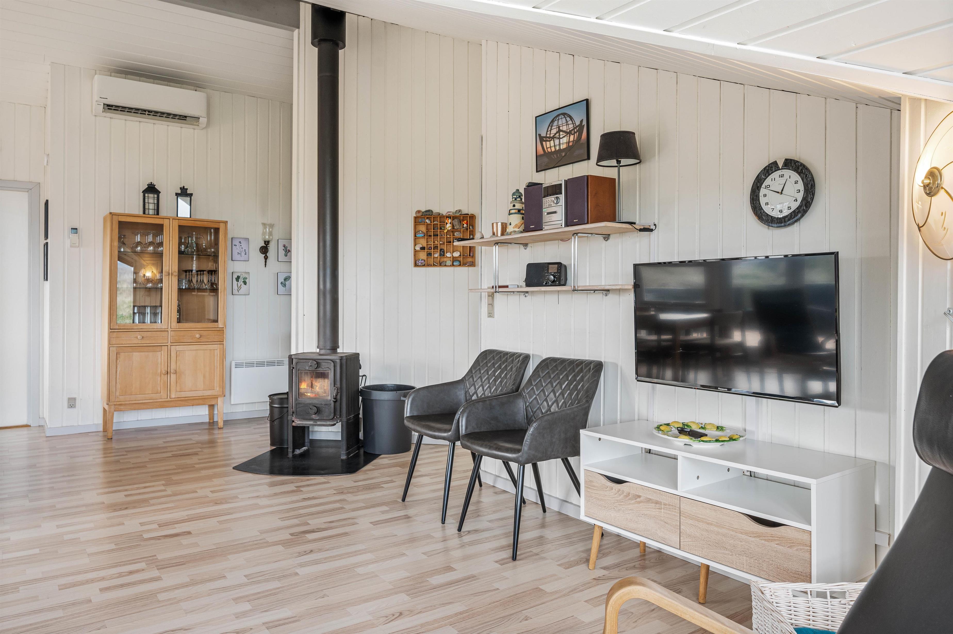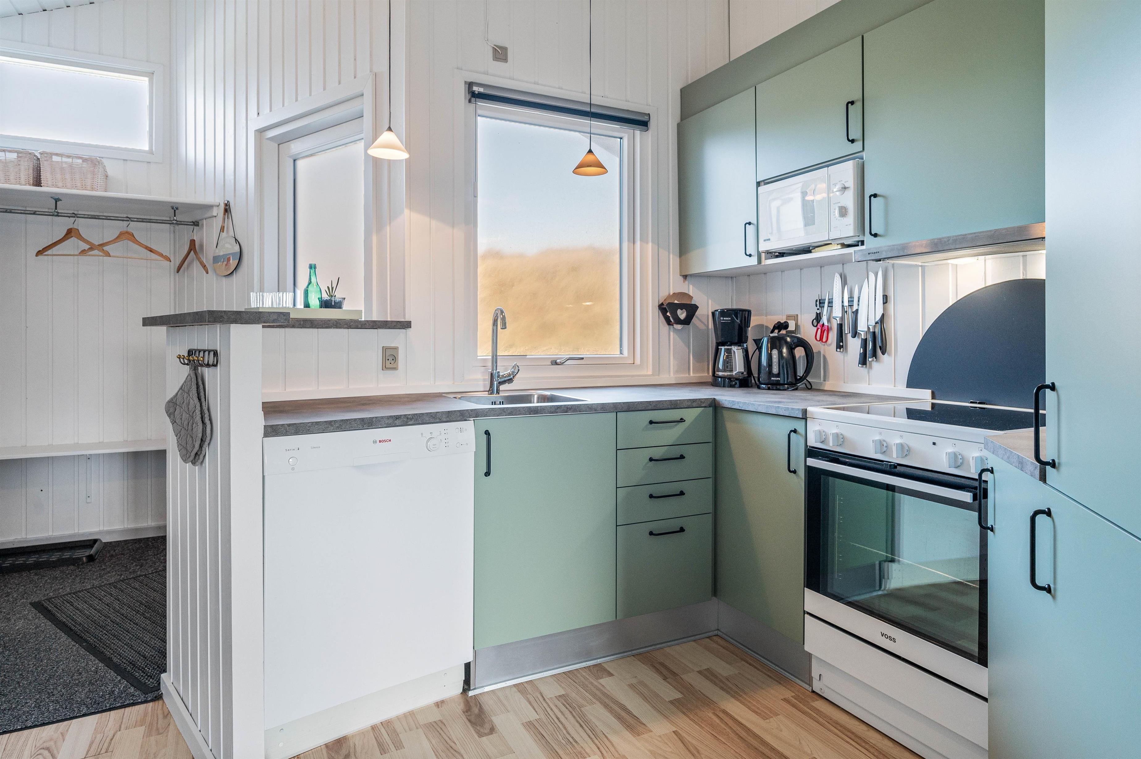 Det hyggelige feriehus har en fin og indbydende indretning. Her er et lyst og dejligt køkken i åben forbindelse med stue og spiseplads, indbyder til lange, hyggelige stunder sammen med familien og vennerne. Tænd op for brændovnen og lad varmen strømmen igennem hele huset, alt i mens du nyder en god bog eller benytter dig af huset trådløse internet.