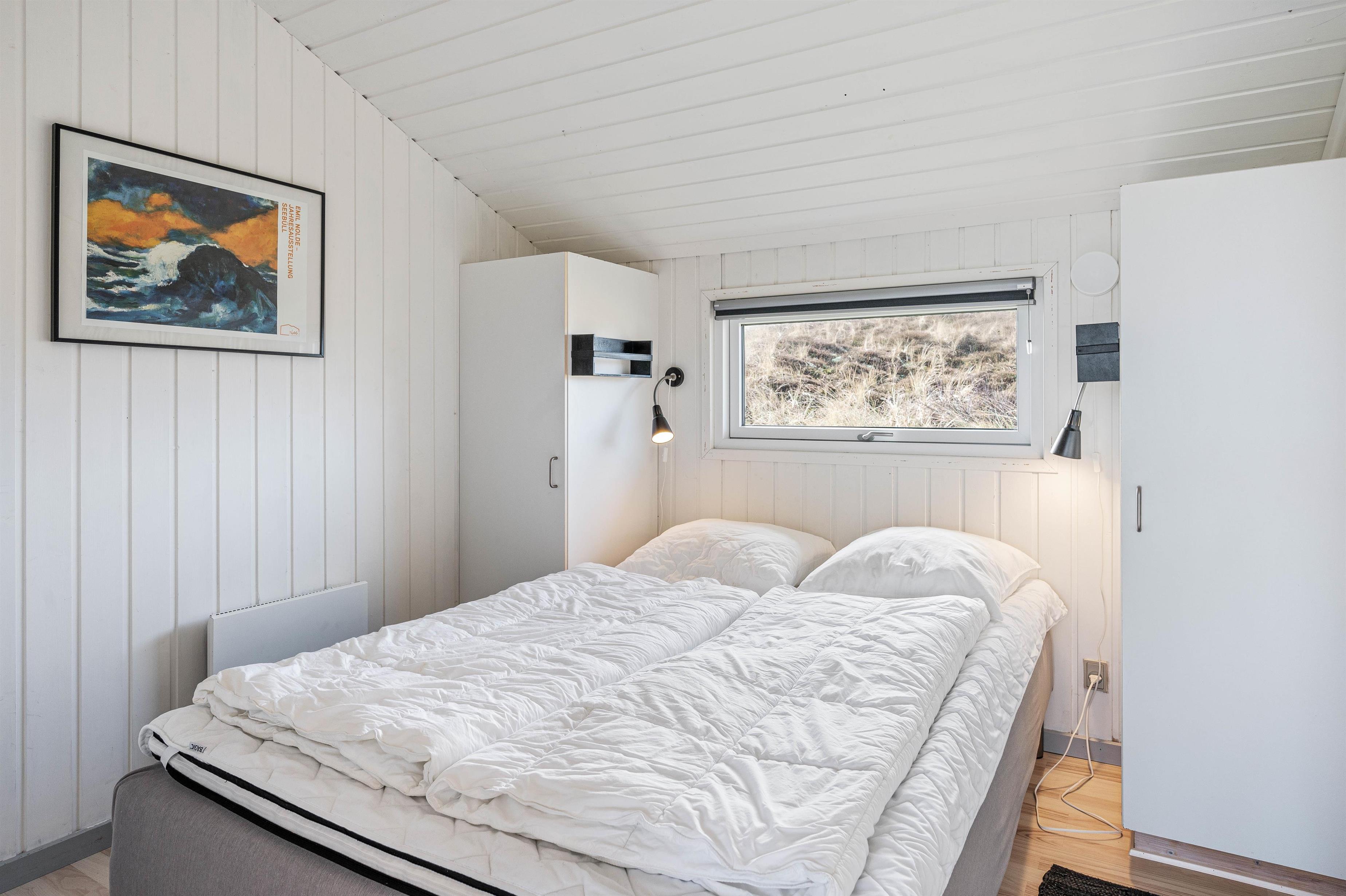Sommerhuset råder over 4 gode soveværelser med henholdsvis 3 dobbeltværelser med dobbeltsenge og 1 værelse med enkeltsenge.