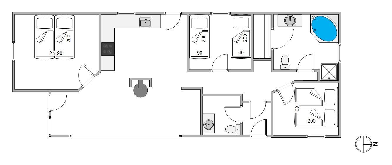 Det moderne køkken lader intet tilbage at ønske. Her kan du fremtrylle lækre menuer med hele familien. De 3 soveværelser er opdelt i 2 værelser med dobbeltsenge samt et værelse med 2 enkeltsenge. Ingen kø om morgenen, der er både et badeværelse samt et gæstetoilet til rådighed og på begge er der installeret gulvvarme.