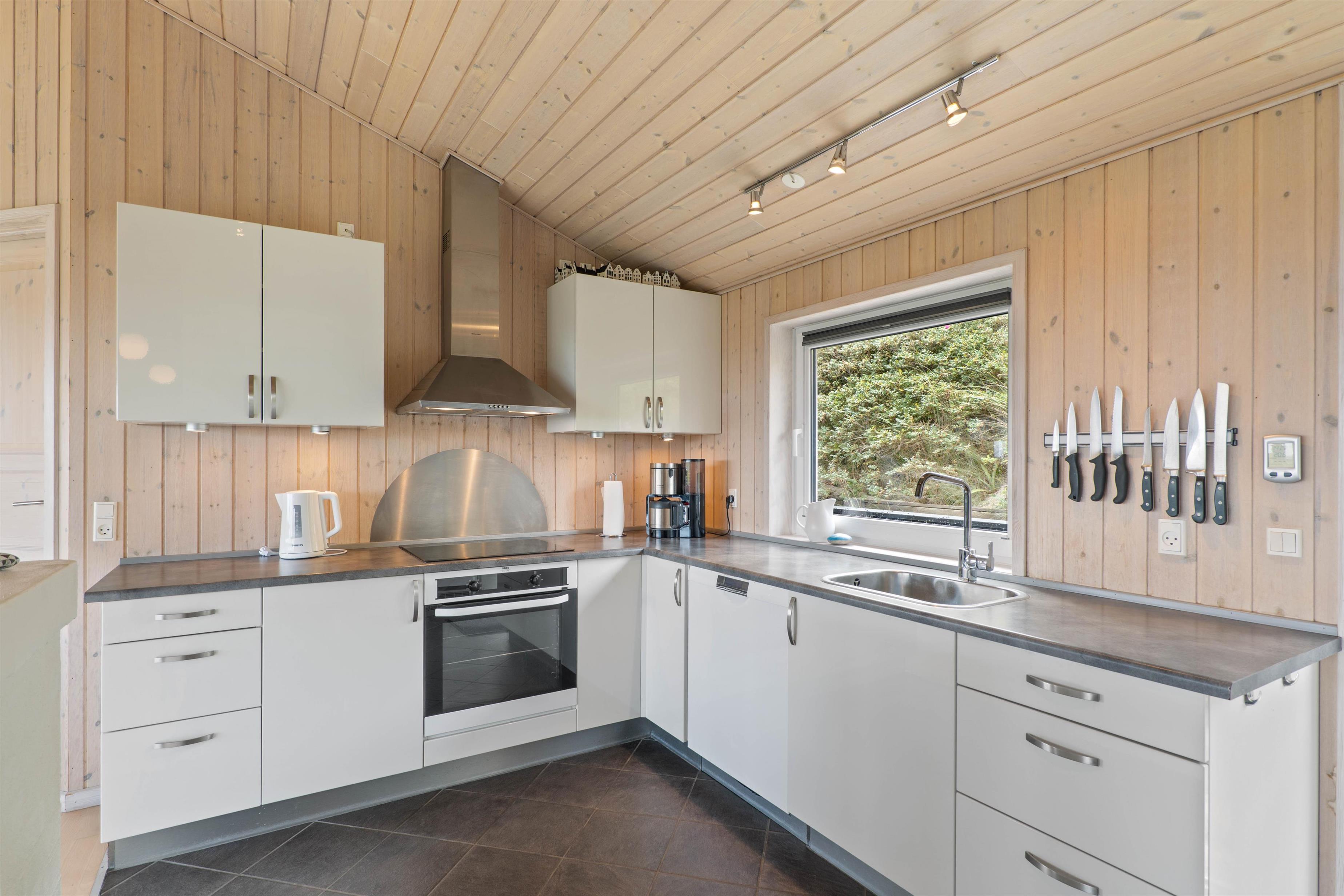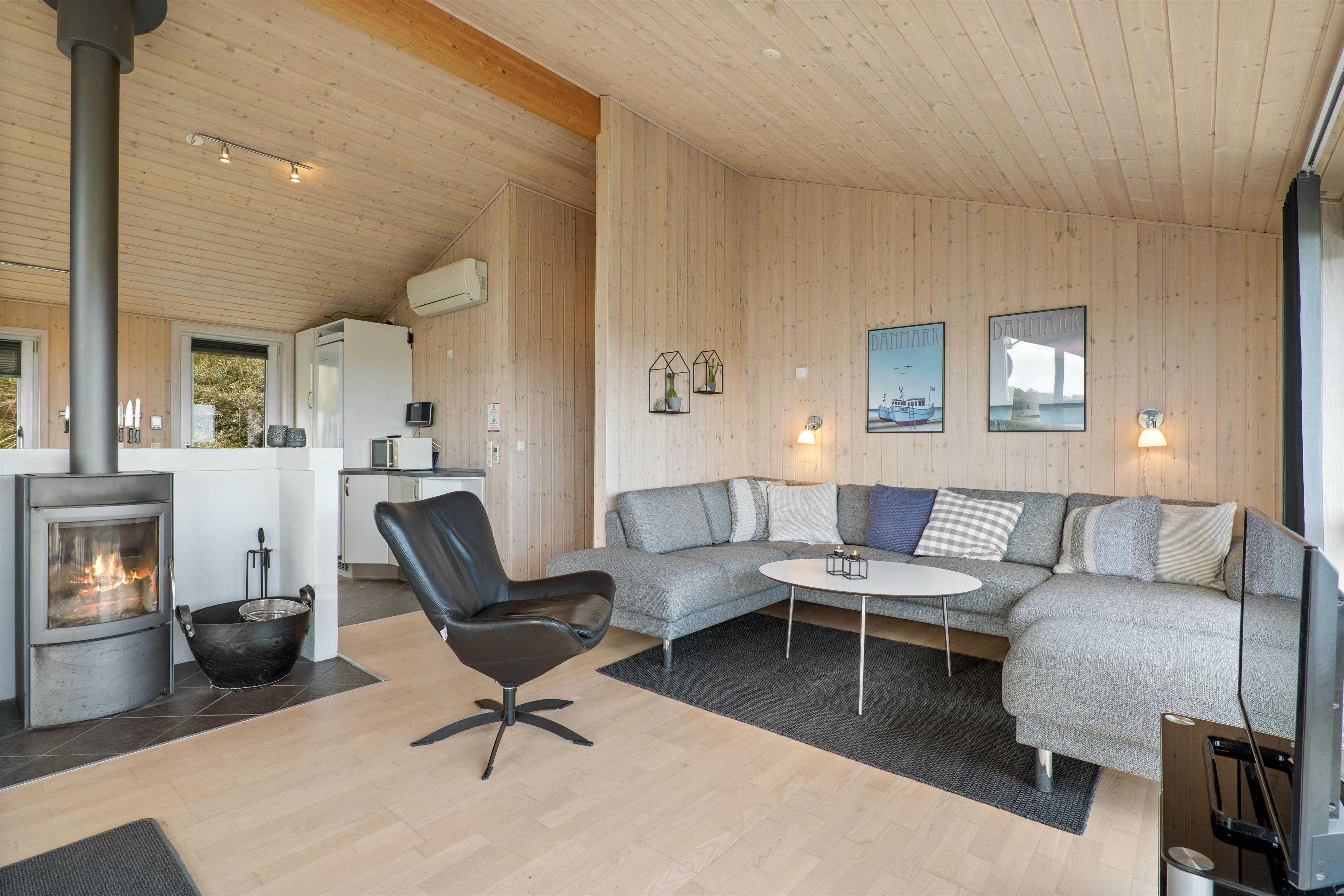 Den typiske skandinaviske hygge byder dig velkommen, så snart du træder ind i dette skønne sommerhus. Det åbne stue- og spiseområde har en bred glasfront, der skaber et flot lysinfald. Den hyggelige sofa inviterer til en afslappende filmaften med hele familien. TV'et med chromecast og dvd- afspilller byder på mange muligheder.