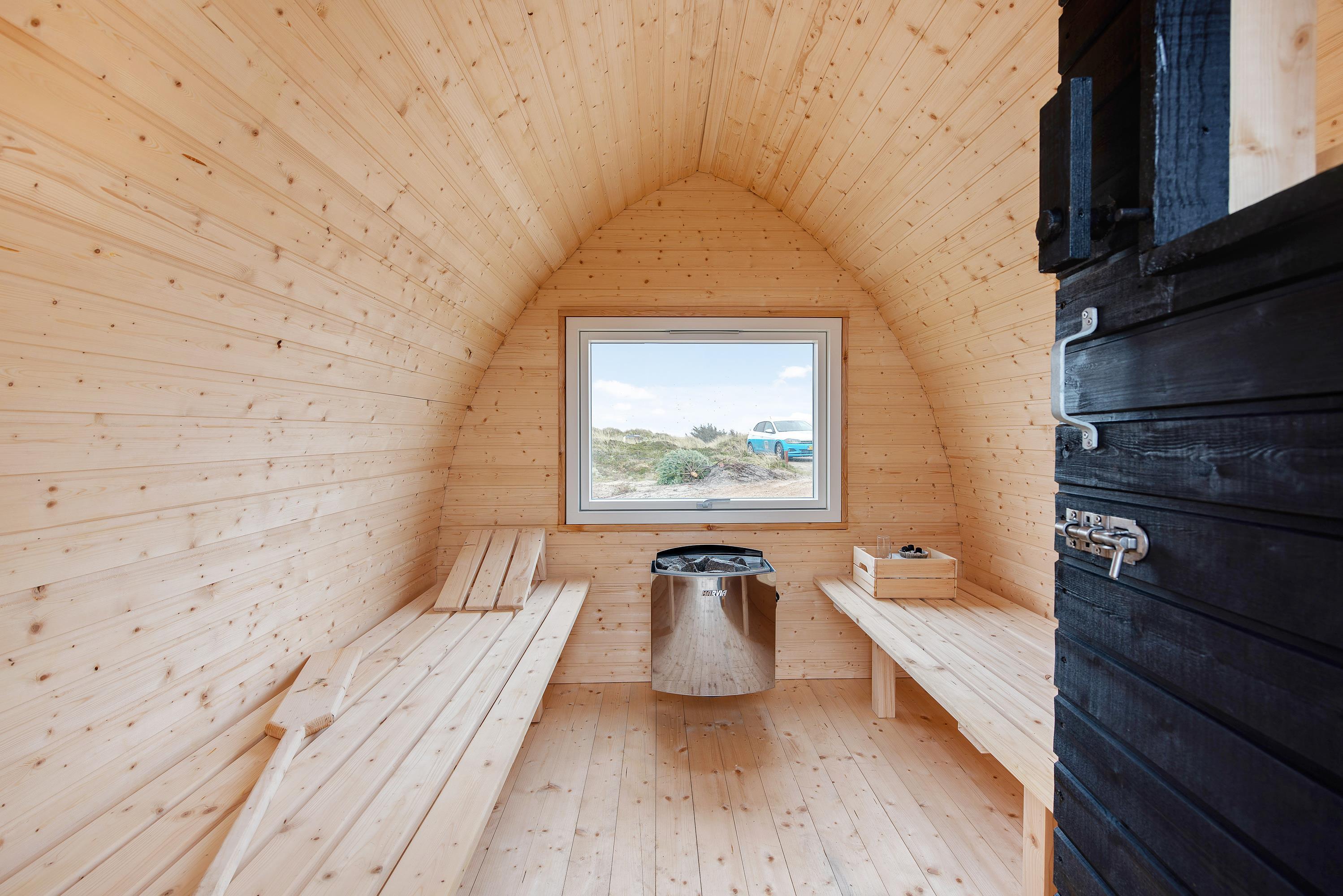 Lige meget vejret – det er altid en hyggelig og sjov oplevelse at tænde op under vildmarksbadet eller den udendørs sauna. Er du superfrisk, så kan du først smutte de 300 meter ned for at dyppe dig i Vesterhavet og efterfølgende nyde badekarrets varme vand eller sætte dig i saunaen og nyde både varmen og stilheden. Det er ren luksus og balsam for sjælen.