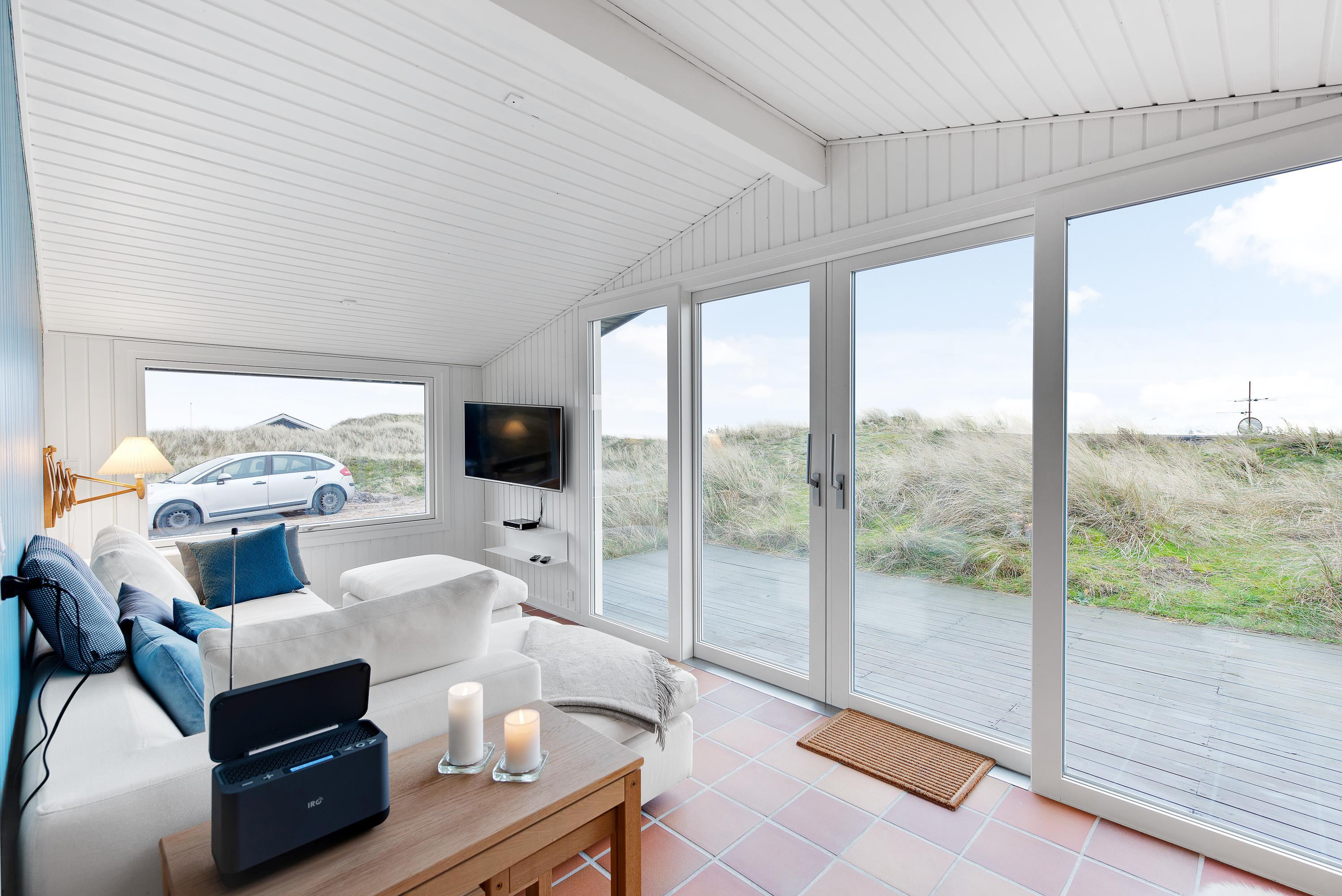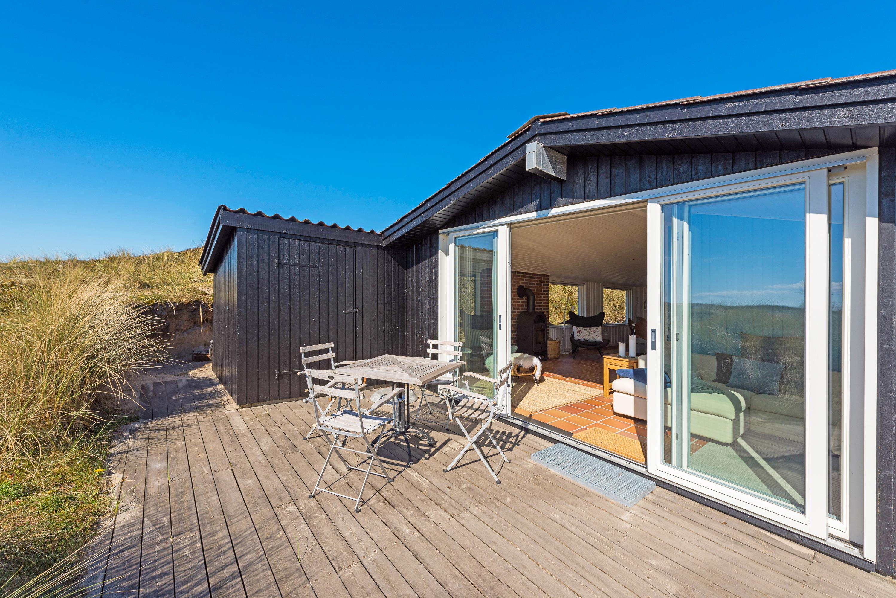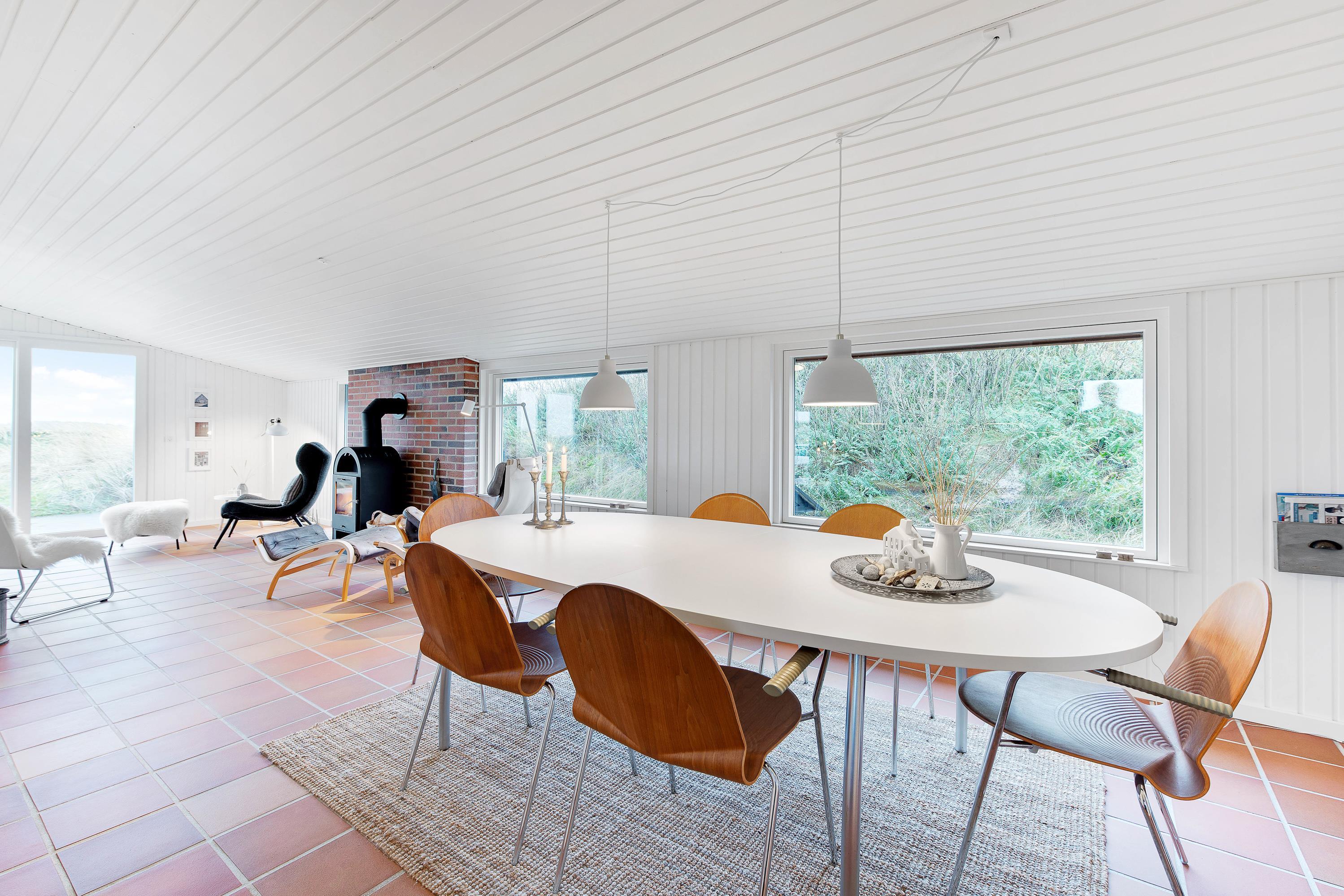 Feriehuset er blevet renoveret i 2020. Med nyt køkken, energivenlige varmepumpe og velvalgte lyse farver samt fine detaljer er det supernemt, at komme i feriestemning. Sommerhusets store panoramavinduer giver et dejligt lys og en skøn udsigt ud over klitlandskabet og den vajende marehalm, som hele tiden skifter farve, når vinden leget med det. På mørke aftenen er de bekvemme lænestole ved brændeovnen den perfekte plads til ugens kriminalroman.