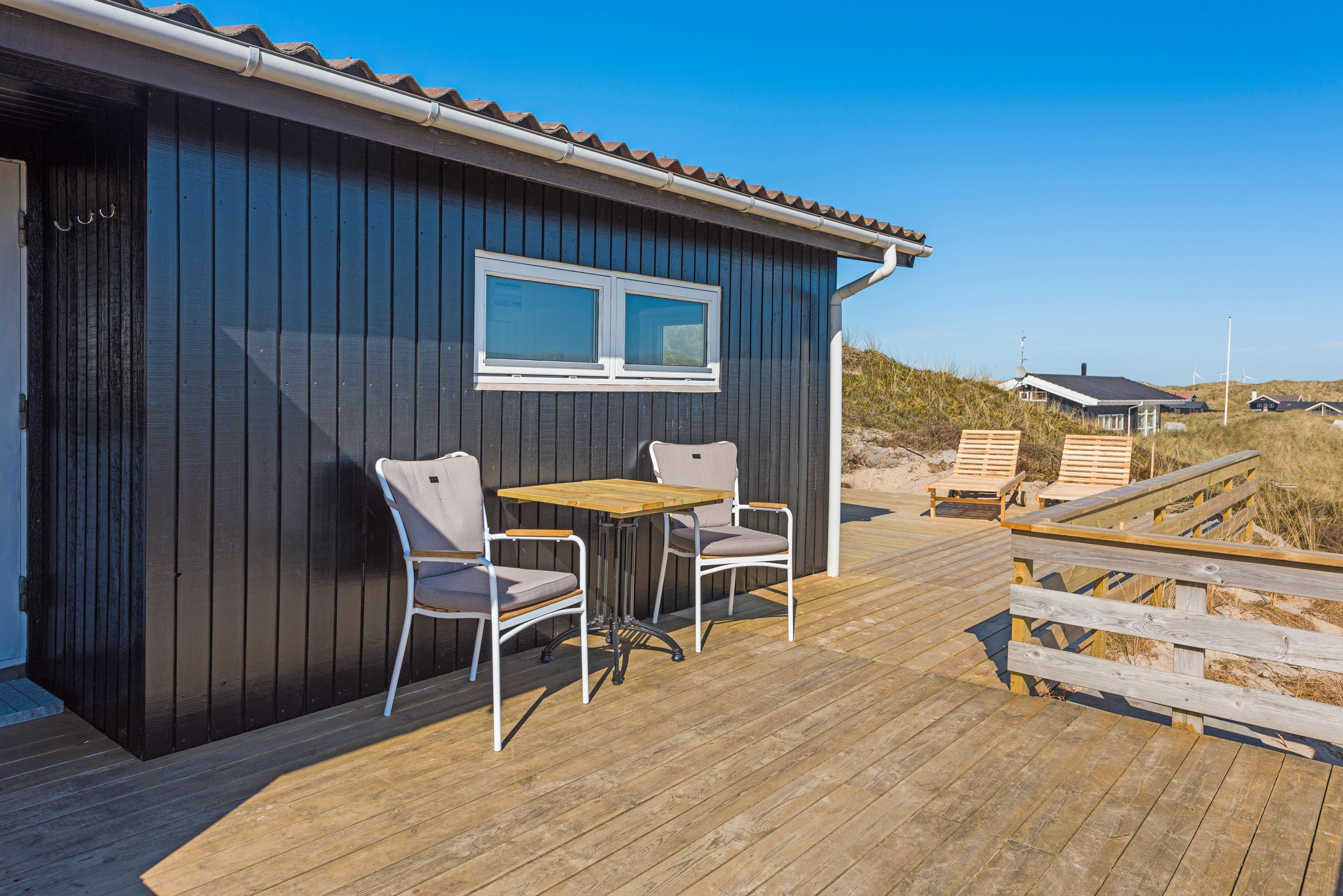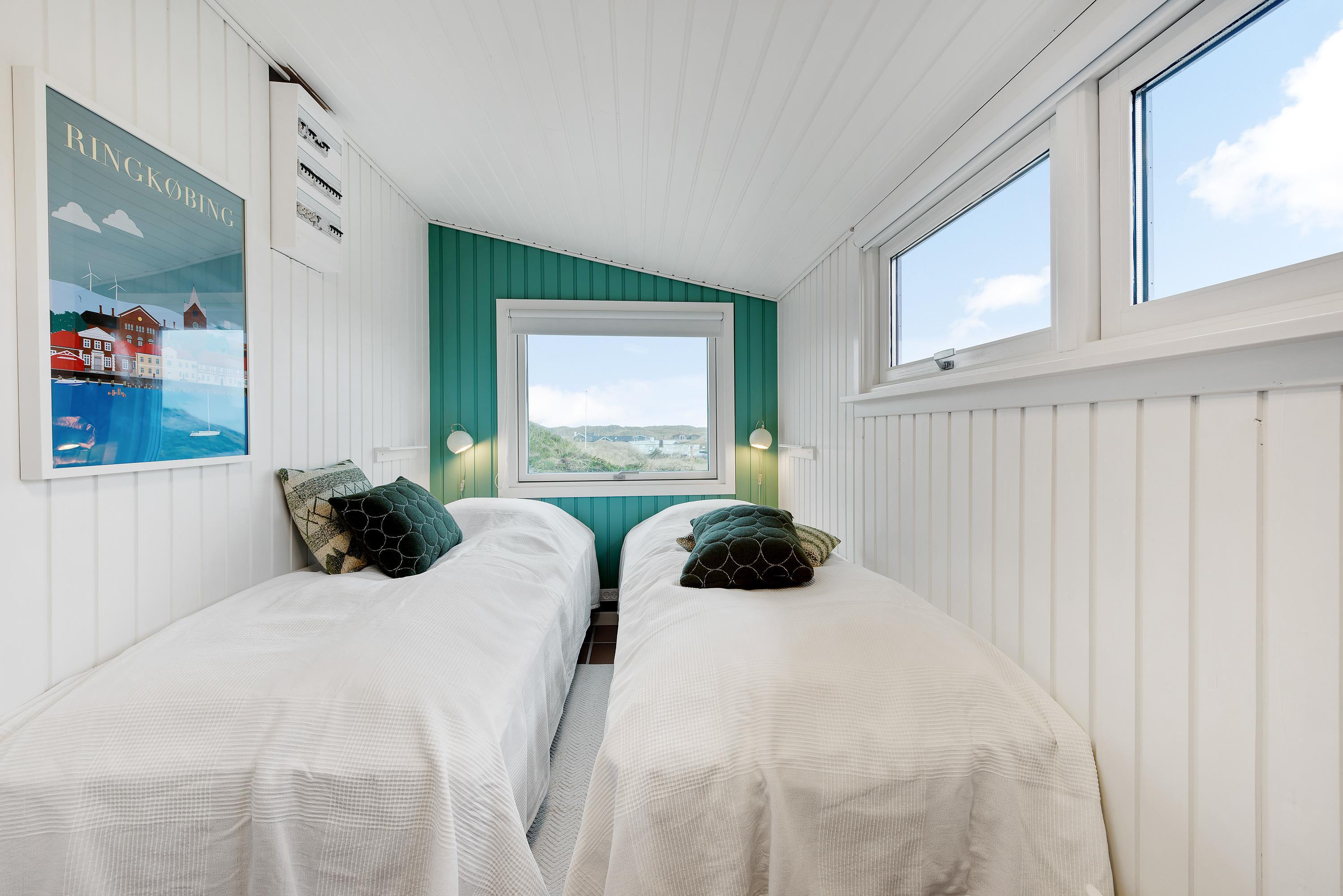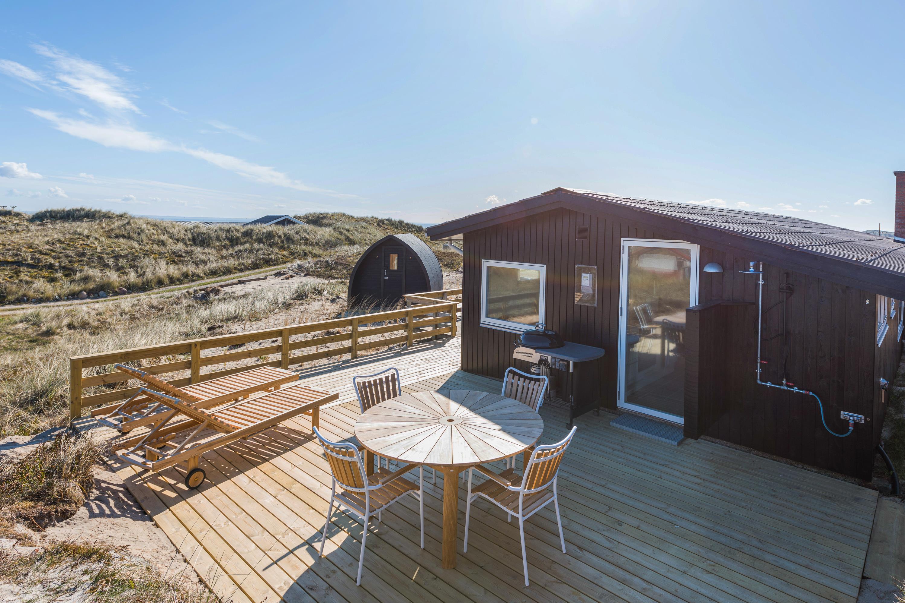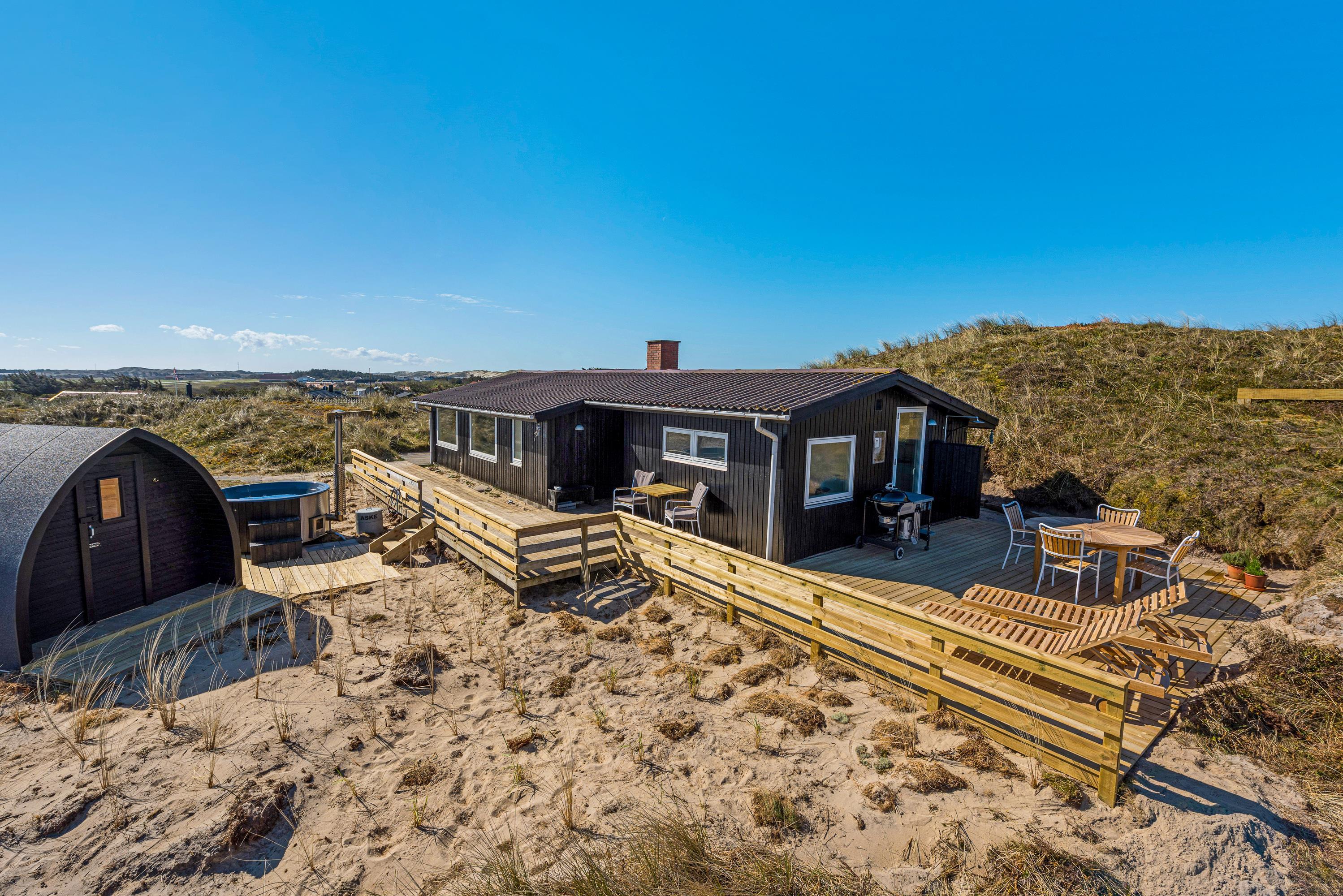 Feriehuset er blevet renoveret i 2020. Med nyt køkken, energivenlige varmepumpe og velvalgte lyse farver samt fine detaljer er det supernemt, at komme i feriestemning. Sommerhusets store panoramavinduer giver et dejligt lys og en skøn udsigt ud over klitlandskabet og den vajende marehalm, som hele tiden skifter farve, når vinden leget med det. På mørke aftenen er de bekvemme lænestole ved brændeovnen den perfekte plads til ugens kriminalroman.