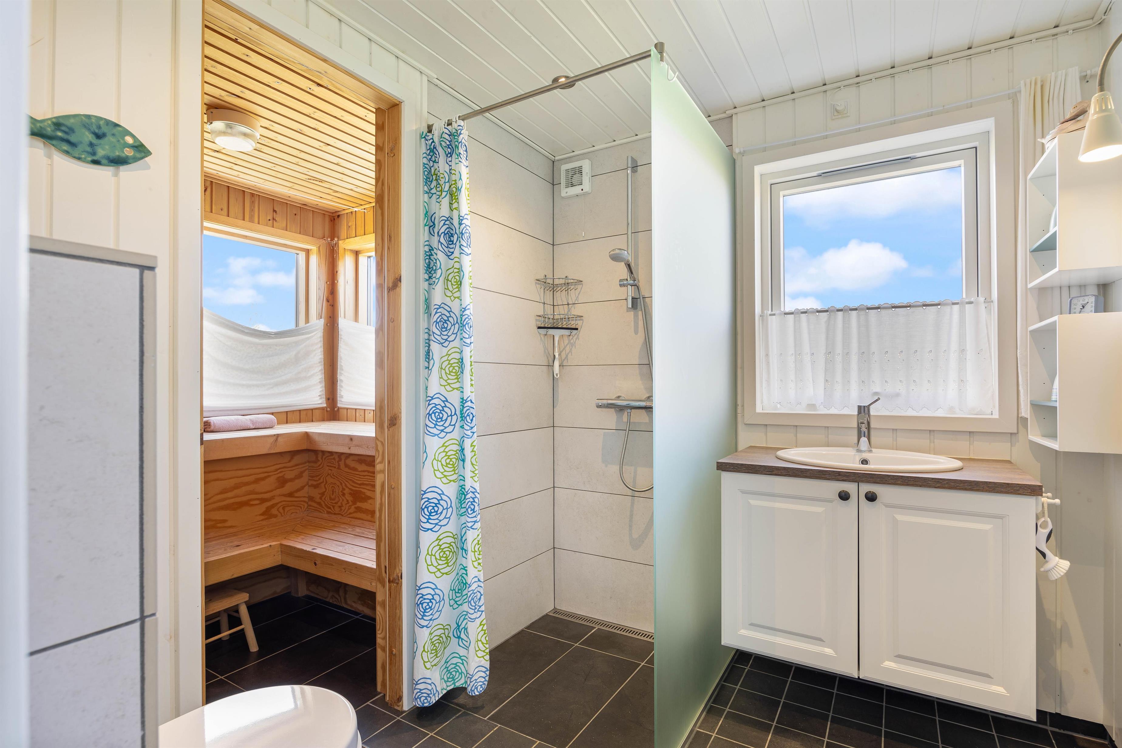 Det charmerende sommerhus blev i 2018 renoveret og rummer i dag 2 badeværelser, en dejlig sauna samt et stort køkkenalrum med plads til hele familien. I den hyggelige stue kan I slå jer ned og nyde varmen fra sommerhusets brændeovn.