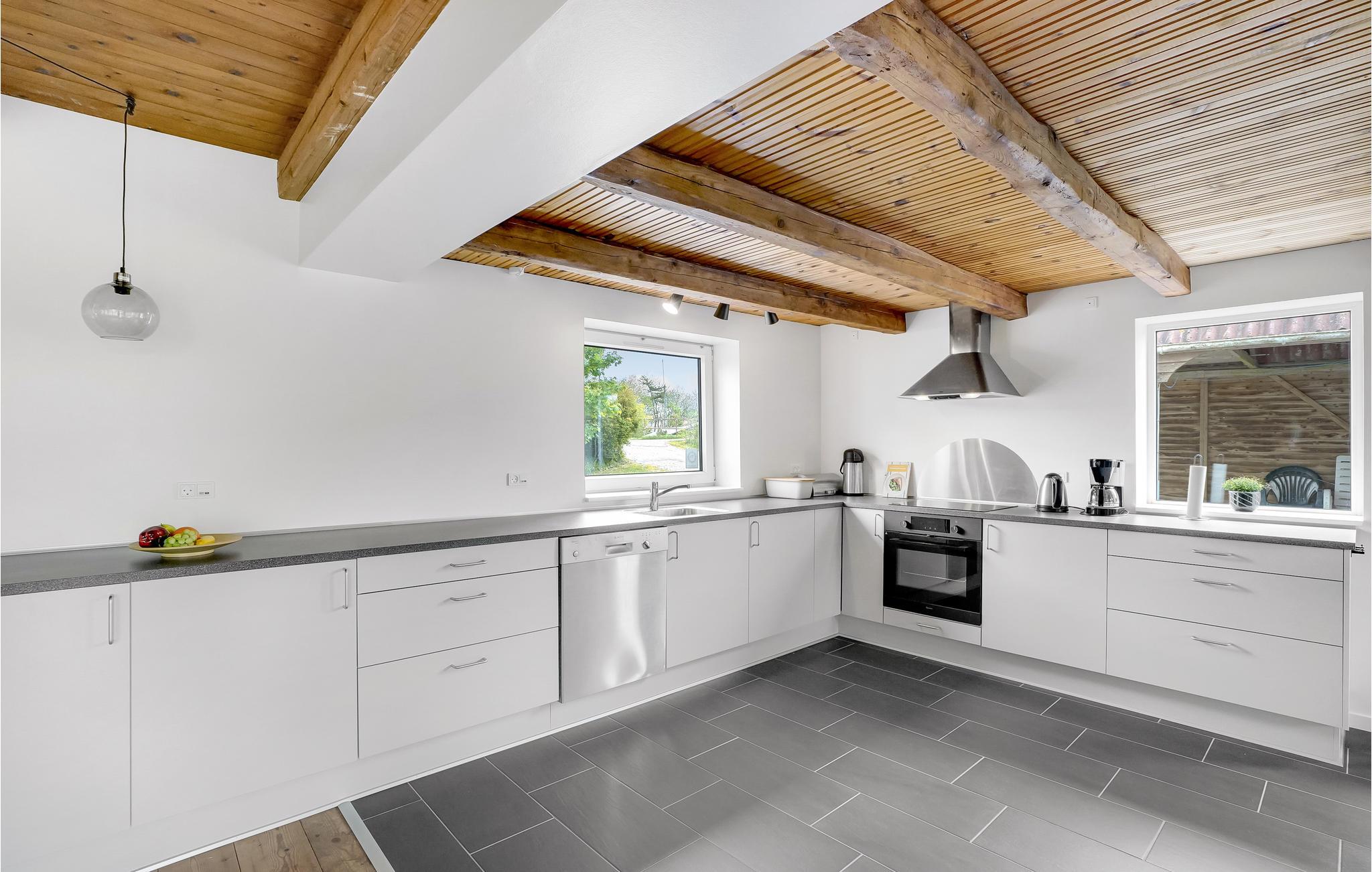I smukke, landlige omgivelser finder I dette hyggelige, lyse hus. Køkkenet gør et godt indtryk, og stuen indbyder til at tilbringe hyggelige stunder sammen. Nyd varmen fra brændeovnen på de kolde aftener og lyt til flammernes knitren. I haven kan I tilbringe sommerdagene med at slappe af, nyde en kop kaffe i stilheden og fiske fra badebroen.