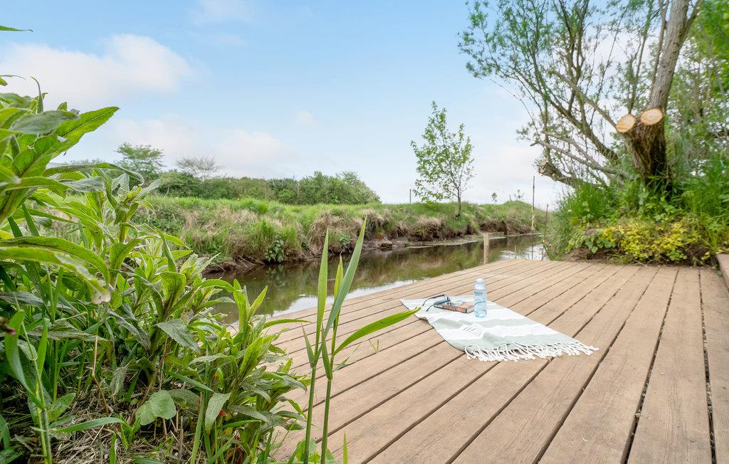 Hyggeligt feriehus ved Årup Å med egen badebro til fiskeri i naturskønne omgivelser nær Vesterhavet.