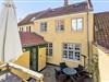 Træd ud i den flisebelagte gårdhave, hvor du kan nyde roen og den karakteristiske udsigt til Ærøskøbings hvidkalkede kirke. Gården er en privat oase, perfekt til at slappe af med en god bog eller en kop eftermiddagste. Om aftenen kan du lave lækker aftensmad på grillen og spise under åben himmel. Uanset om du ønsker at observere solnedgangen eller bare suge atmosfæren til dig, er gårdhaven det ideelle sted.