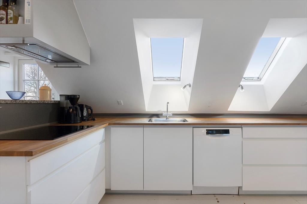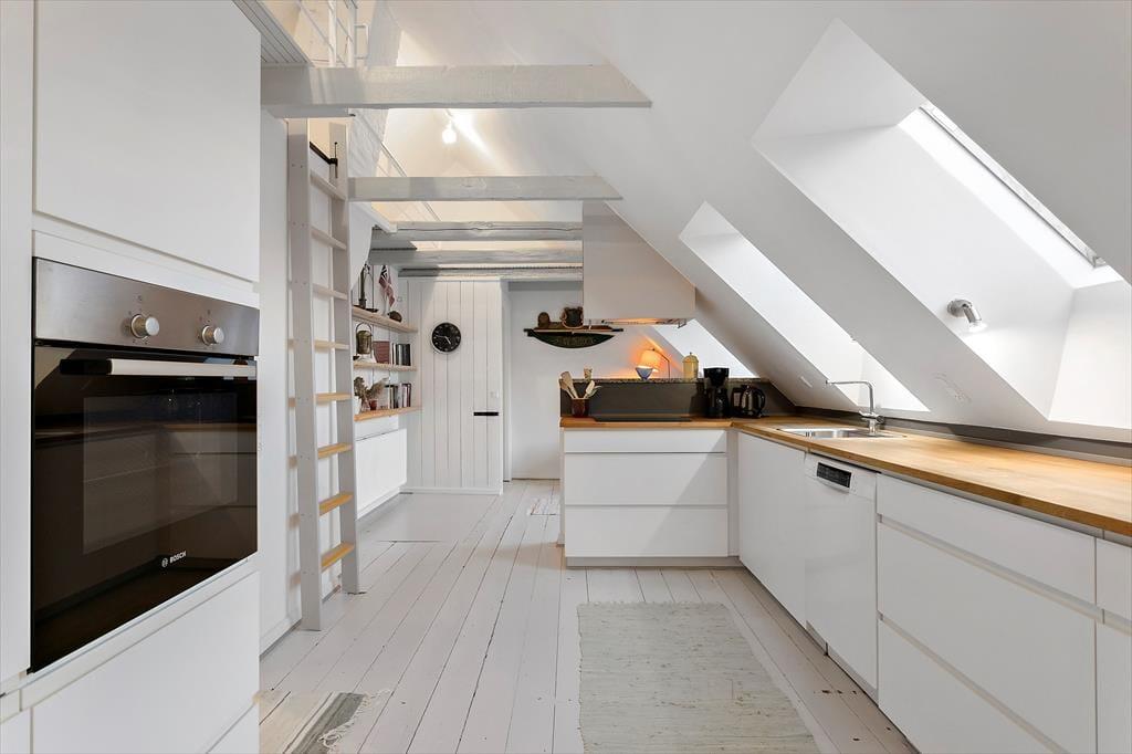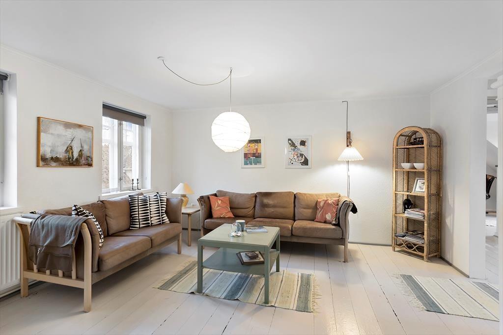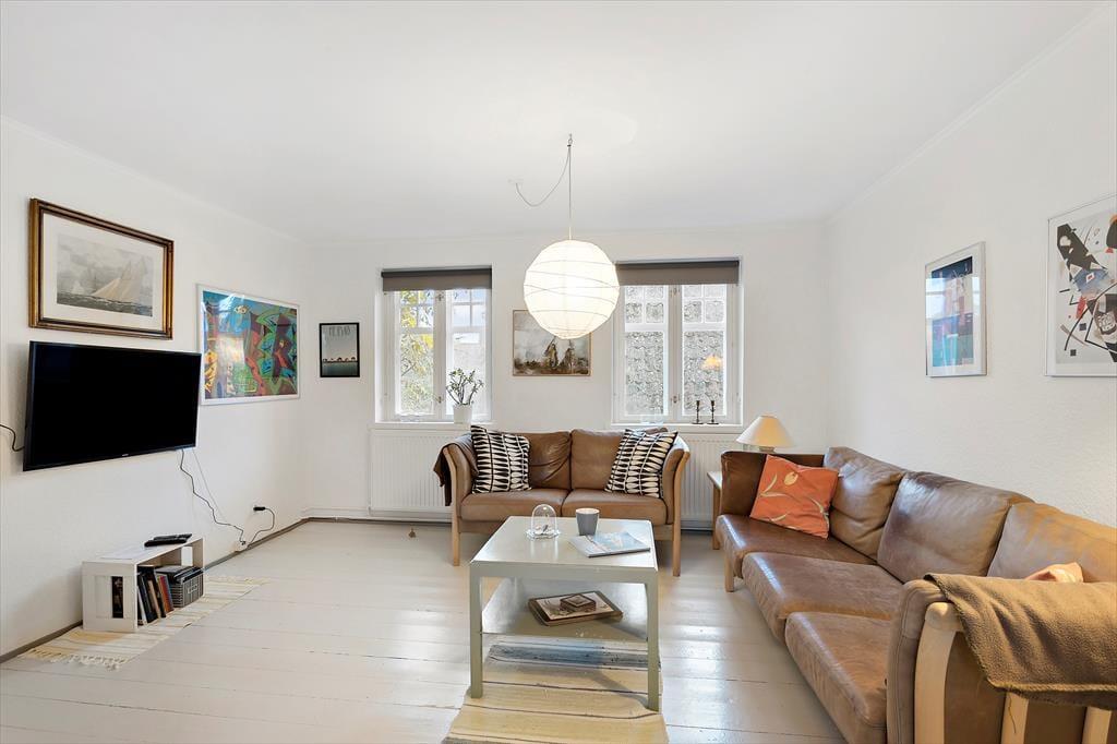 Lejligheden er ideel til 2 voksne, evt med 2 børns som kan sove på den store lyse hems.