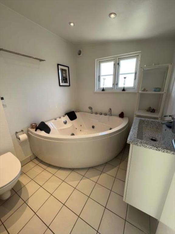 I stueetagen finder du en hyggelig stue med behagelige møbler og TV – oplagt til ro og afslapning. Ligeledes er der en autentisk spisestue med charme og stemning. Køkkenet er udstyret med alt til madentusiasten. Der findes også et lækkert badeværelse med både bruser og spa-bad – ren selvforkælelse!