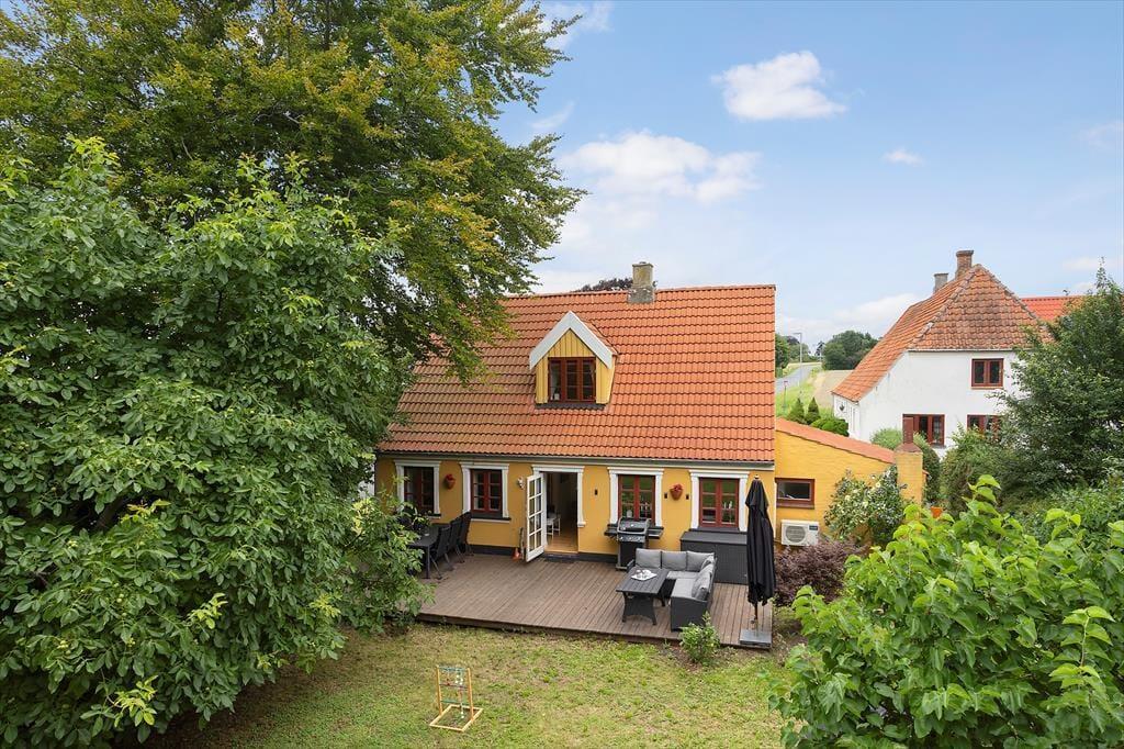 Huset ligger på en bakketop tæt ved eventyrbyen Ærøskøbing, hvor sommeren byder på jazzfestival, hyggelige gårdhavecaféer, gode restauranter og spændende museer. Tag på vandretur eller cykeltur gennem det smukke Ærø-landskab, og mærk hvordan tempoet falder, mens livsglæden vokser.