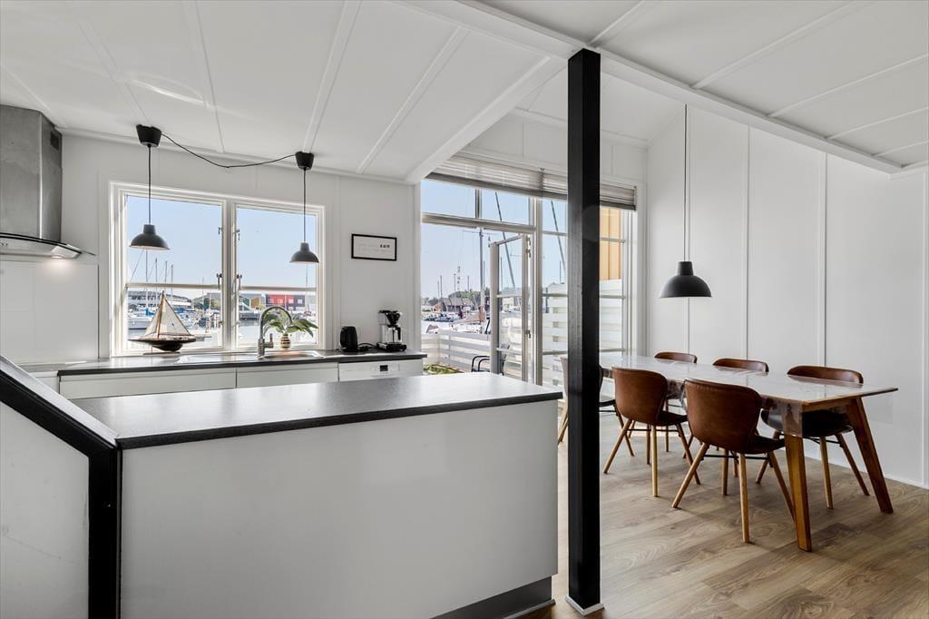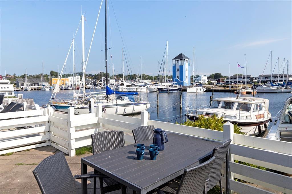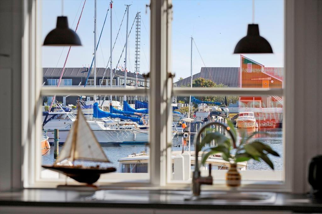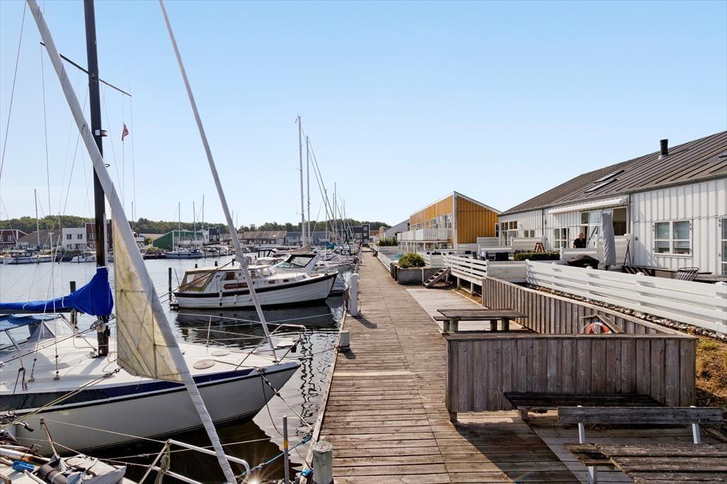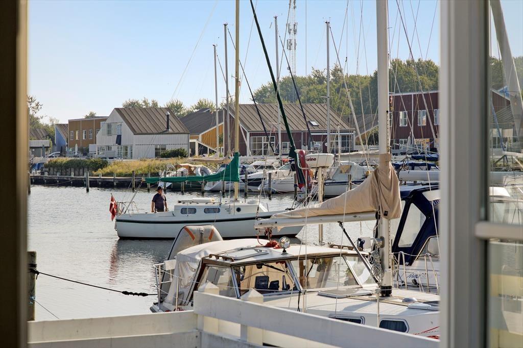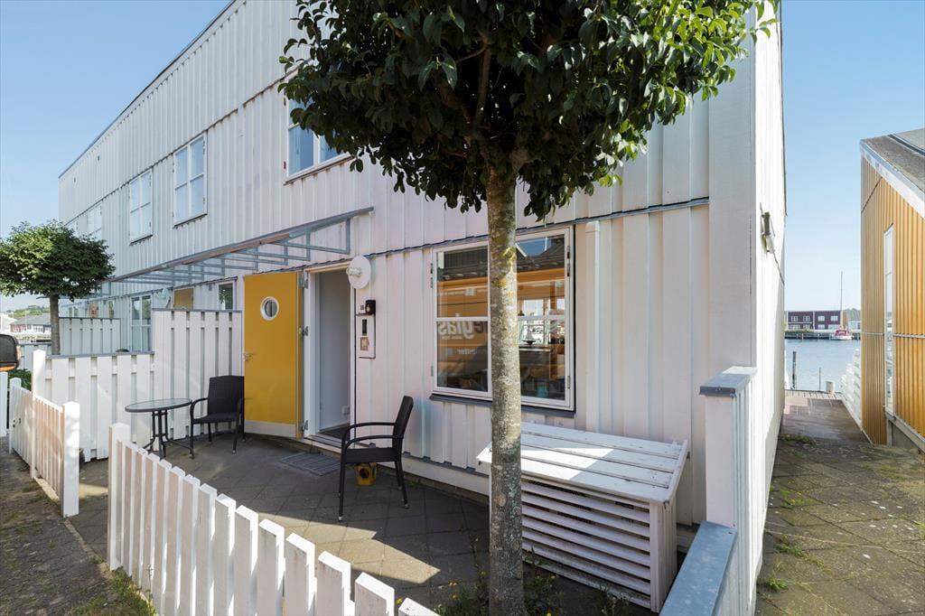 Udenfor venter to solrige terrasser, hvor du kan finde din plads til afslapning – uanset om du foretrækker morgensolen eller aftenens gyldne stråler. Her kan du sidde med en kop kaffe, læse en god bog eller grille, mens du lytter til roen i kanalomgivelserne. Den sydvendte orientering betyder, at du kan nyde solens varme det meste af dagen. Har du lyst til at samle familien til hyggelige stunder, så er loungemøblerne og parasollen klar til netop det.