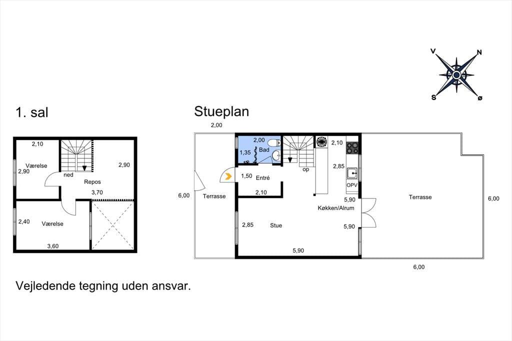 Afstande fra ferieboligen og placering på kort
