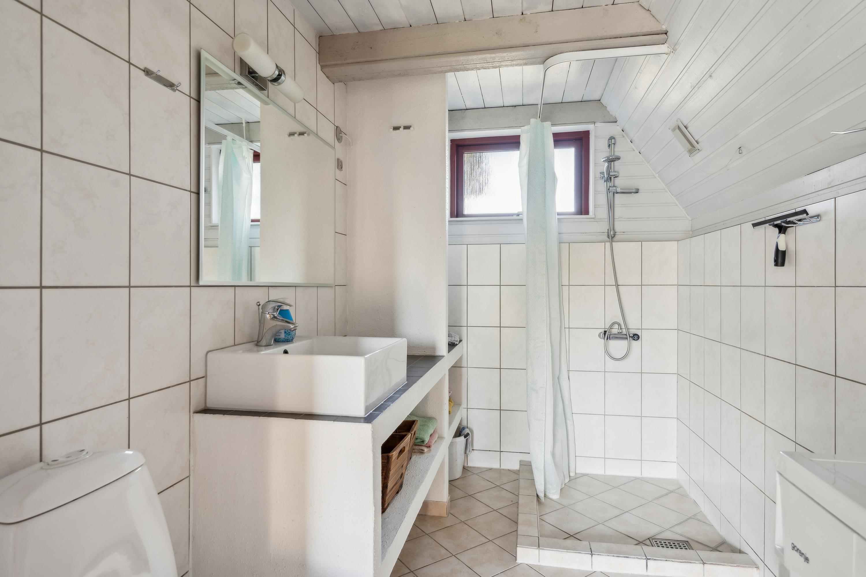Blot 5-10 min gang fra vandet finder man dette ældre, men hyggelige sommerhus. Huset som er i to plan indeholder i stueetagen en hyggelig stue med både brændeovn og varmepumpe og med udgang til en overdækket terrasse med havemøbler og grill. Mindre men funktionel køkken med b.la. opvaskemaskine. Pænt badeværelse med bruseniche og adgang til vaskemaskine. På husets 1 sal finder man husets sengepladser fordelt i to værelser, begge med dobbeltsenge og en enkeltseng. Som alternativ findes der et nyere anneks, også med dobbeltseng til fri afbenyttelse og velegnet til nogle større børn. Til de små feriegæster er der høj stol og barneseng. Der er ikke internetadgang i huset, men det kan lejes på vores kontor (så længe lager haves). Huset er beliggende på en grund med en stor græsplæne, velegnet til leg og boldspil og til de små feriegæster er der gynger og legehus samt en sandkasse.