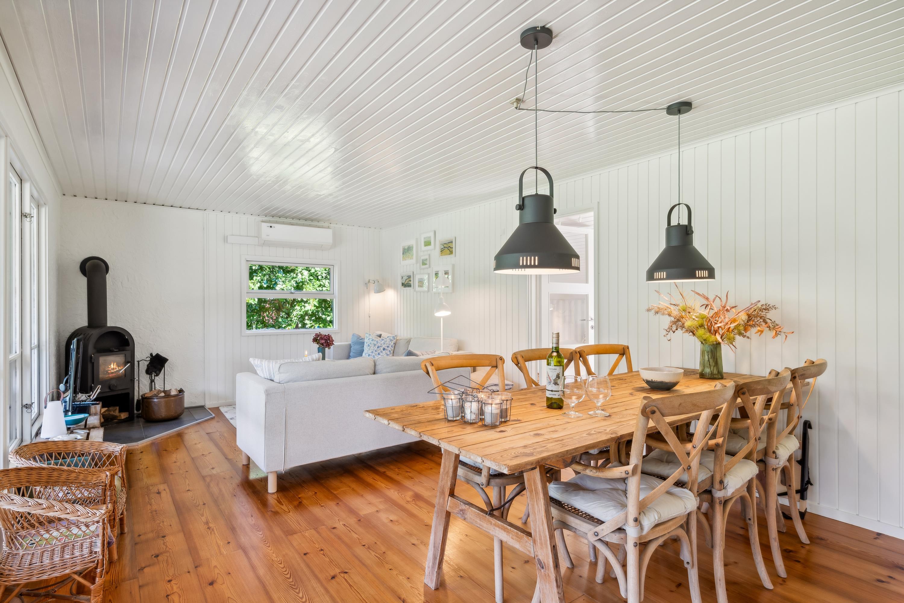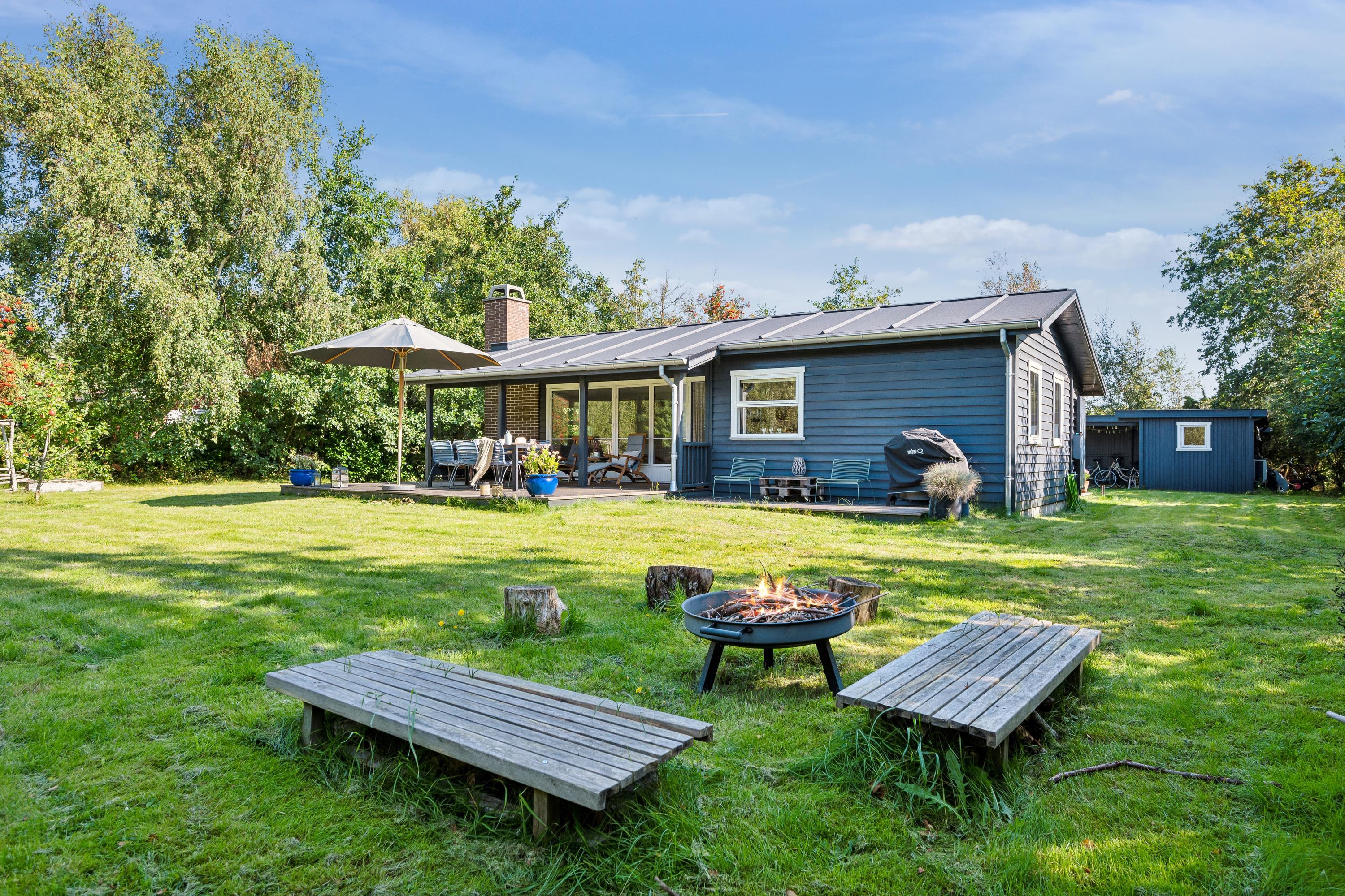 Hyggeligt feriehus tæt på strand og Ebeltoft med brændeovn, terrasse og børnevenlig beliggenhed.