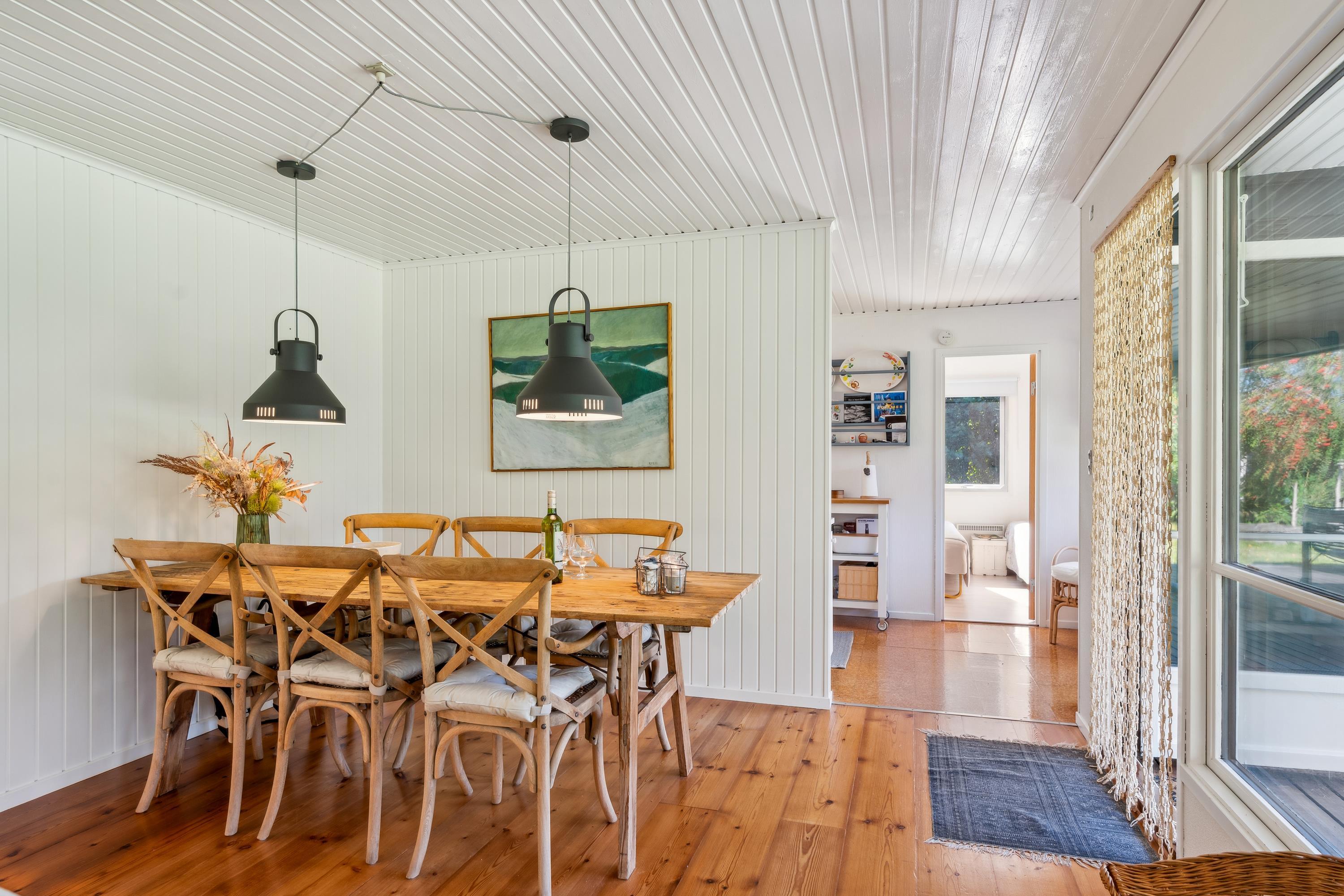Blot 250 m fra vandet og 10 min kørsel fra Ebeltoft, finder man dette hyggelige og velholdte hus. Huset indeholder en hyggelig og velmøbleret stue med b.la. brændeovn og varmepumpe.Herfra er der udgang til en skøn overdækket terrasse med havemøbler, liggestole og grill. Dejlig køkkenafdeling med b.la.opvaskemaskine. Husets sovepladser finder man i tre hyggelige soveværelser, heraf to med dobbeltsenge og et værelse med to enkelt senge.Dejligt badeværelse med bruseniche. I separat rum står der en vaskemaskine til afbenyttelse. På grunden er der en stor græsplæne, velegnet til leg og boldspil og et hyggeligt bålsted, så man kan sidde en lun sommeraften og lave snobrød. Der er internet i huset og tv foregår via Chromecast. Huset har en meget børnevenlig beliggenhed for enden af af blind vej.
