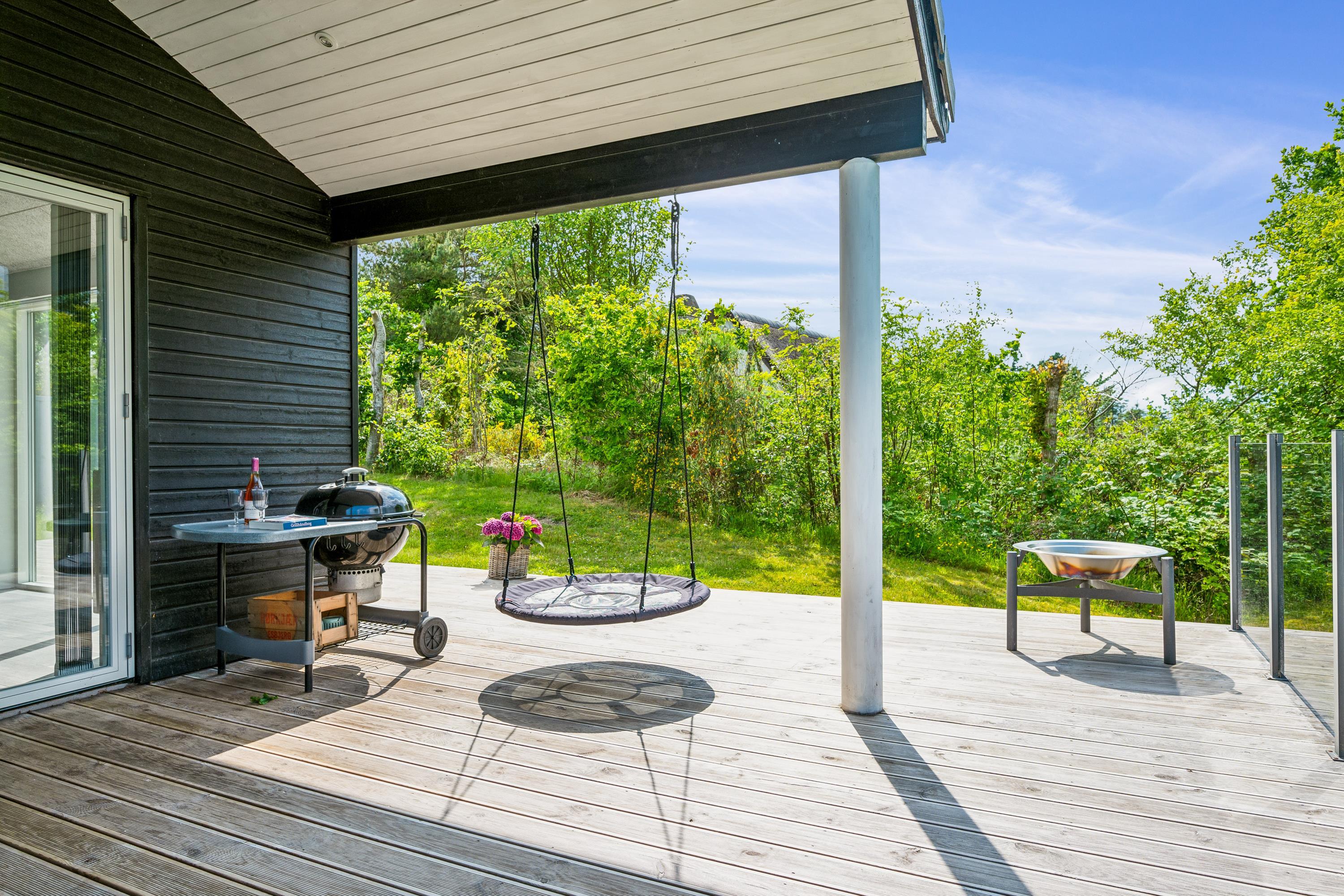 Blot 10 min. kørsel fra Ebeltoft finder man dette flotte og velholdte hus. Her finder man en hyggelig og indbydende stue, møbleret med gode møbler og varmepumpe samt udgang til en skøn terrasse med gode havemøbler. I forbindelse med stuen finder man det flotte køkken med b.la. opvaskemaskine og en god spiseafdeling. To flotte badeværelser med gulvvarme og hvoraf det ene indeholder et badekar. Husets seks sovepladser finder man i tre gode værelser med dobbeltsenge. Til de små feriegæster er der en høj stol og en weekendseng. TV foregår via chromecast og box med tyske kanaler kan lejes på vores kontor (hvis lager haves) Huset er beliggende på en skrående grund med stor græsplæne, velegnet til leg og udendørs hygge. Er man flere familier afsted, så udlejer vi nabohusene Drosselvej 2, Drosselvej 18 og Drosselvej 19