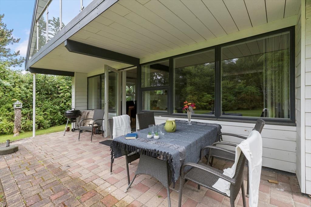 Hvis du kan løsrive dig fra udestuen og gårdhaven på dette hus, vil du opleve at der ligger så megen natur lige udenfor den afskærmede grund. Efter 3 min. Gang kan du stå med fødderne i vandet og kan nyde det smukke udsigt. Her er mange surfere og kitesurfere som fanger vinden og flyver hen over vandet, når det blæser lidt. Du kan også tage en morgendukkert, eller slutte dagens oplevelser af med at sige godnat til solen der. Huset har en stor flad græsplæne som indbyder til leg og spil ligesom der er flere terrasser, hvor du kan sidde og nyde freden og roen.
