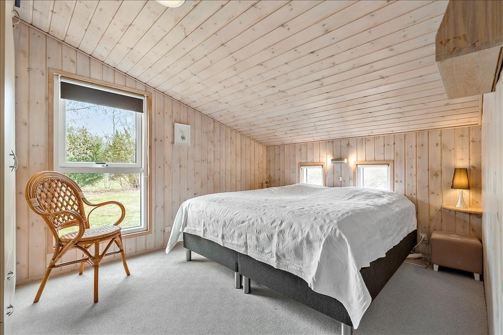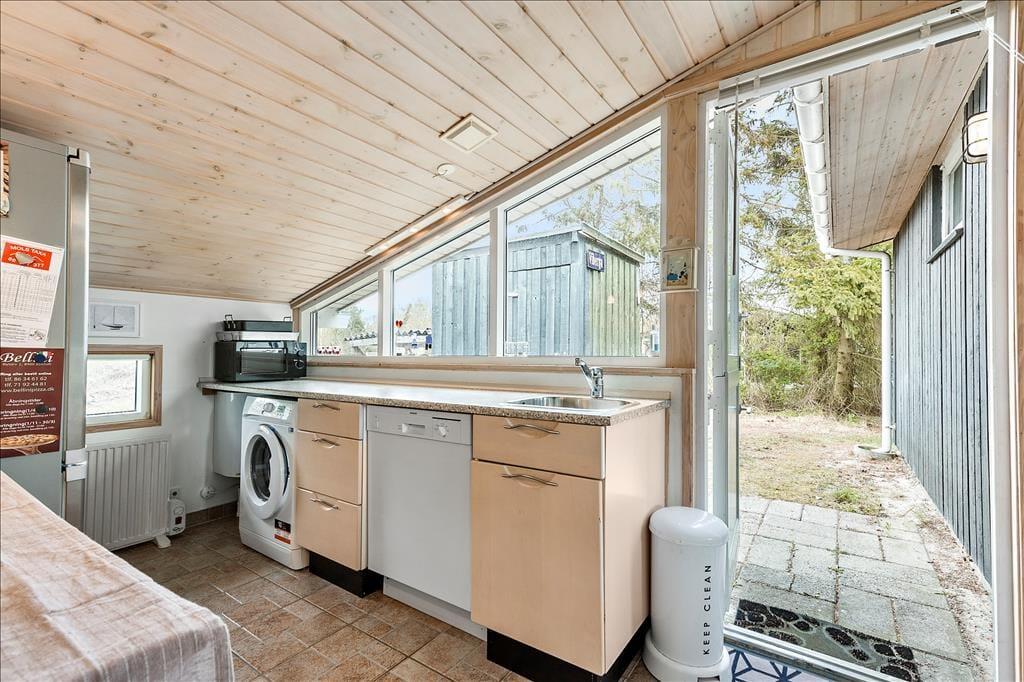 I Øer Strand ligger dette hyggelige sommerhus på en stor naturgrund. Huset indeholder et køkkenalrum med lille køkken og spiseplads til hele familien. Køkkenalrummet er forbundet til stuen via et lille trin. Her er der en stor sofa, som indbyder til hygge med hele familien. Fra køkkenalrummet er der også et lille trin ned til køkkenet som indeholder både opvaskemaskine og vaskemaskine. Huset indeholder tre værelser, hvor to værelser har en dobbeltseng og et har en køgeseng. Derudover er der også husets badeværelse med toilet og bruser. Fra køkkenalrummet og stuen er der direkte adgang til husets store terrasse.