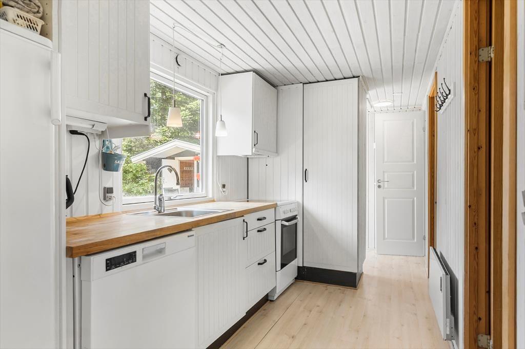 Sommerhuset ligger på en solrig naturgrund for enden af en blind vej, hvilket giver en rolig og ugeneret atmosfære. Der er stier til opdagelse, gode terrasser og et hyggeligt udhus med egen terrasse og anvendelsesmuligheder. Kun 200 meter til stranden kan du starte dagen med en frisk dukkert eller en gåtur langs kysten.