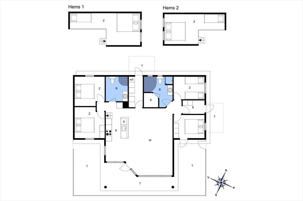Der er 4 soveværelser i huset, samt 4 sovepladser på hemsen alle med springmadrasser.