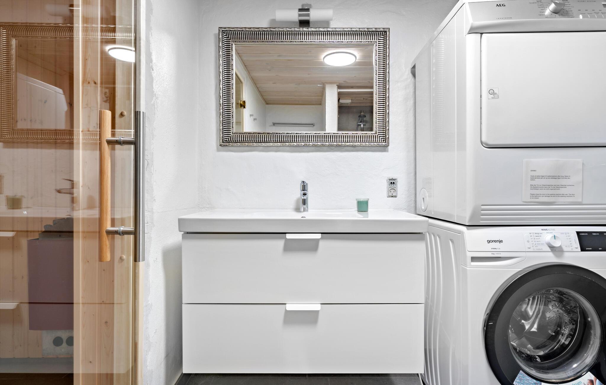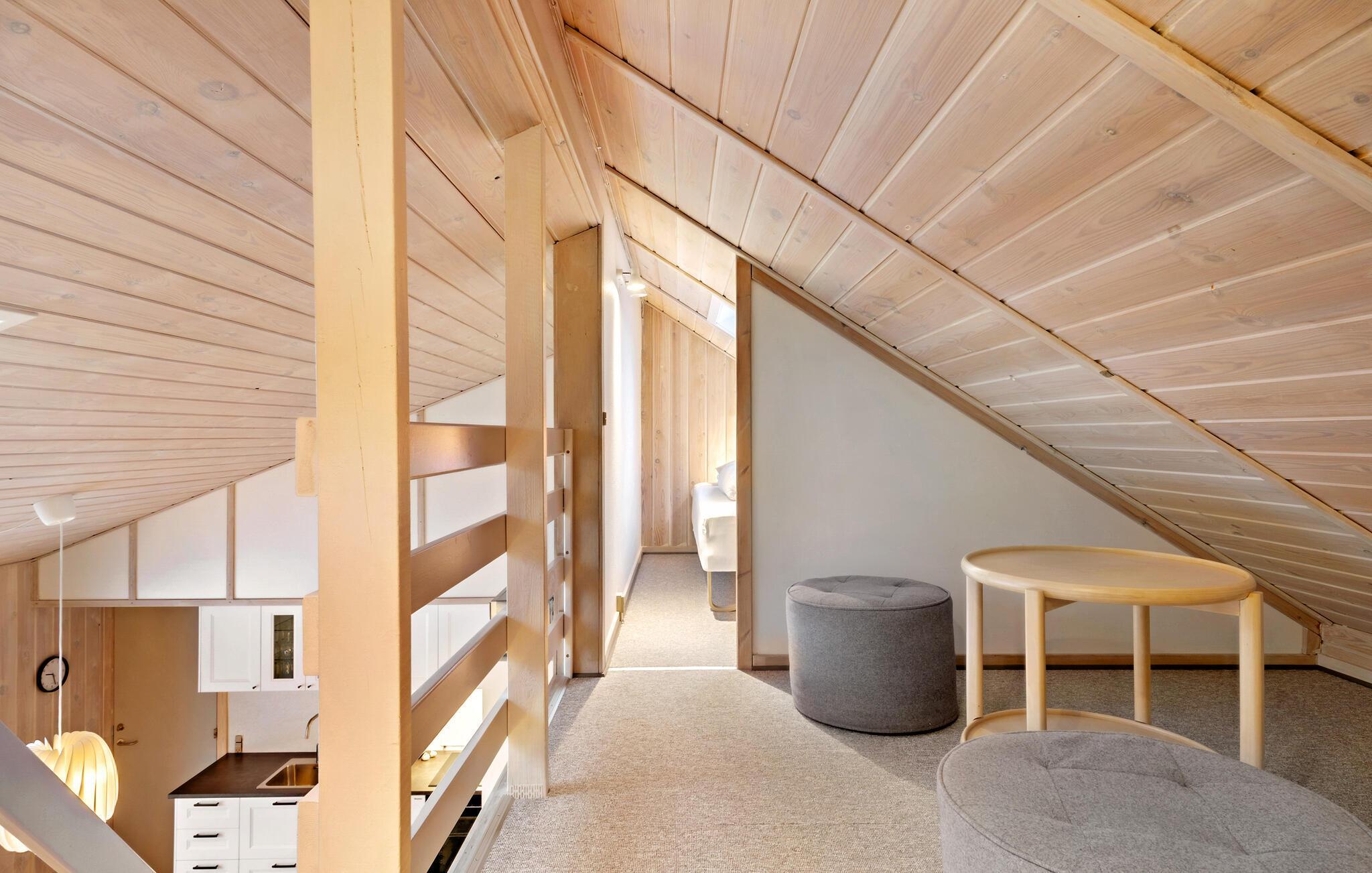 Der er lagt op til en dejlig pause fra hverdagen derhjemme, når I sammen med familien skal på ferie i denne idylliske bolig. I kan se frem til husets lyse og nænsomme indretning og særligt den åbne stue, hvor der er højt til loftet i og en åben første sal. Herfra kan I gå ind i endnu et soveværelse. Efter dagens aktiviteter og dukkerter kan I nyde lidt lækker wellness i saunaen, før I runder dagen af med en magisk, lun sommeraften på træterrassen.