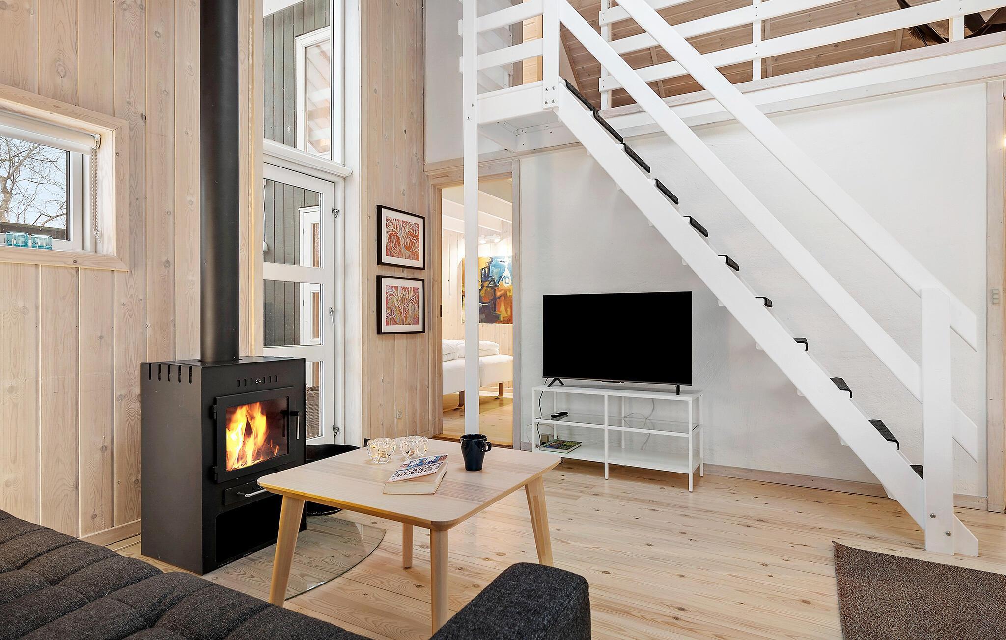 Der er lagt op til en dejlig pause fra hverdagen derhjemme, når I sammen med familien skal på ferie i denne idylliske bolig. I kan se frem til husets lyse og nænsomme indretning og særligt den åbne stue, hvor der er højt til loftet i og en åben første sal. Herfra kan I gå ind i endnu et soveværelse. Efter dagens aktiviteter og dukkerter kan I nyde lidt lækker wellness i saunaen, før I runder dagen af med en magisk, lun sommeraften på træterrassen.