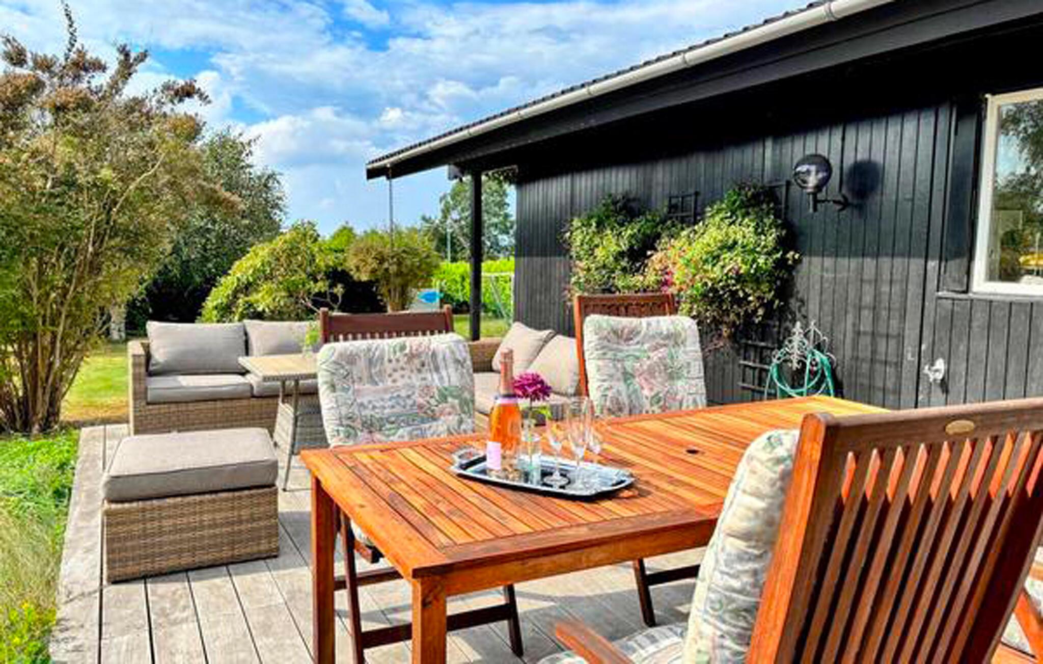 Begynd dagene med en kop kaffe på den solrige terrasse og nyd den friske brise fra fjorden. Om aftenen er den overdækkede, vestvendte terrasse ideel til hyggelige grillmåltider og en smuk solnedgang. I kan også spille fodbold og andre sjove boldspil med børnene. En kort gåtur fører jer lige fra huset og ned til den lavvandede, børnevenlige strand, hvor I kan gå en dejlig tur langs kysten.