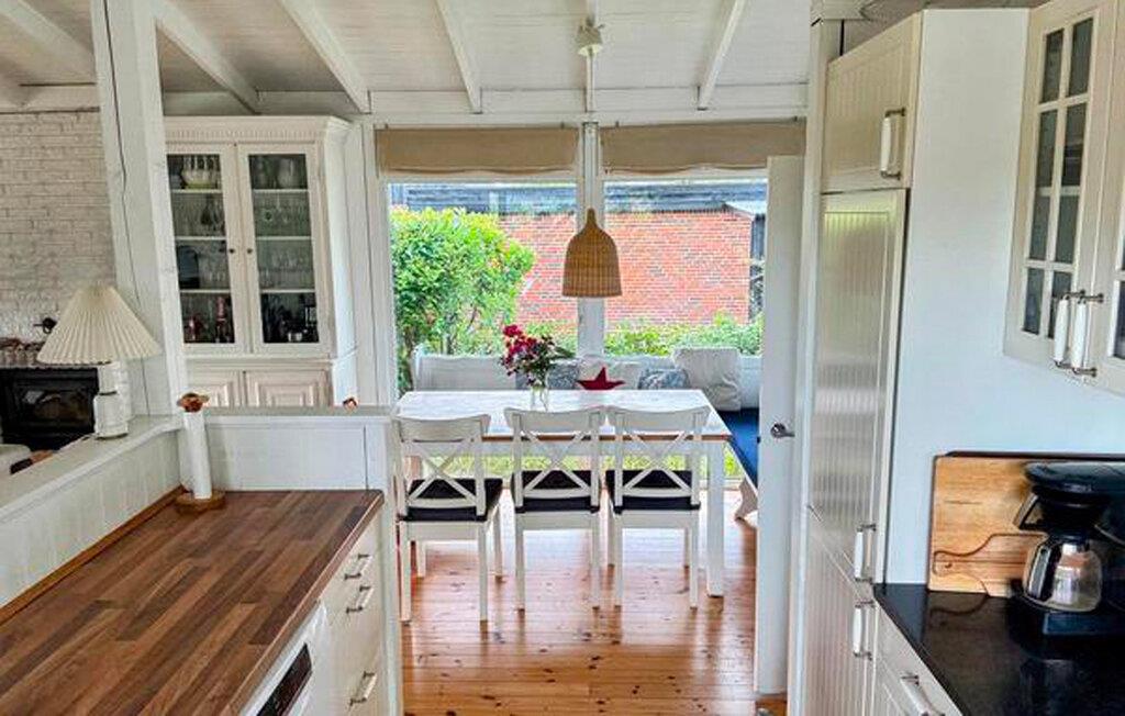 Dette feriehus lægger op til en afslappende ferie med en idyllisk beliggenhed ved Roskilde Fjord. Den komfortabelt møblerede opholdsstue er fyldt med lys takket være de store vinduer og udstråler en behagelig atmosfære. find jer godt til rette i sofaen eller slå jer ned ved spisebordet, mens I kigger ud i haven. Tilbered jeres måltider sammen på ingen tid i det åbne, praktisk udstyrede køkken.