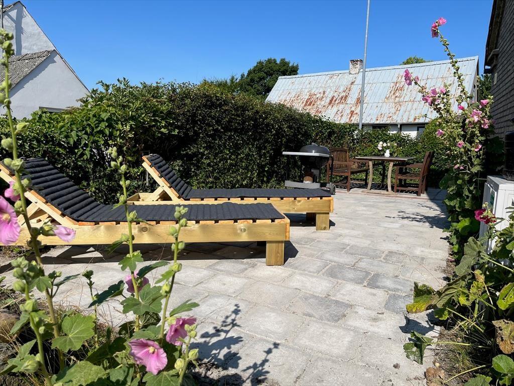 Det gamle landsbyhus midt i Ørby har lille indhegnet forhave med stakit og bonderoser, det oser af samsk landsby-idyl. Langs huset mod nord er der en fin græsparkeringsplads. I et hjørne af haven mod gaden, er der mindre fliseterrasse med hæk omkring og havemøbler af træ. Huset har også en dejlig, nyanlagt sydvendt terrasse.