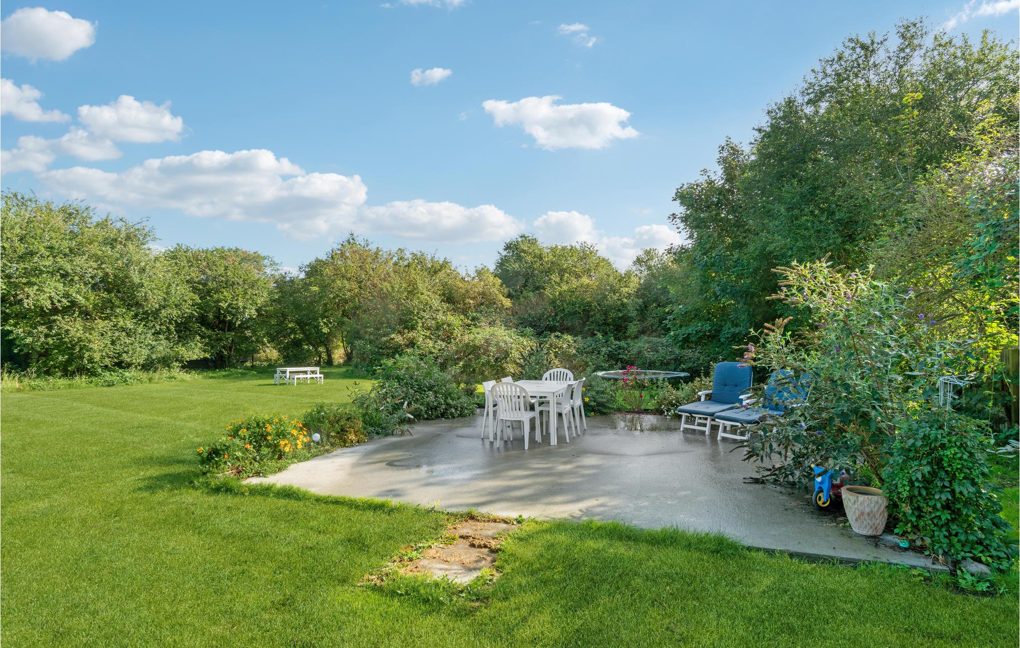 Jeres børn har masser af plads til at lege på ejendommen, hvad enten det er på gyngen eller i sandkassen. Slap af med en bog og en kold drink på solterrassen midt i haven og se de små hoppe vildt på trampolinen.