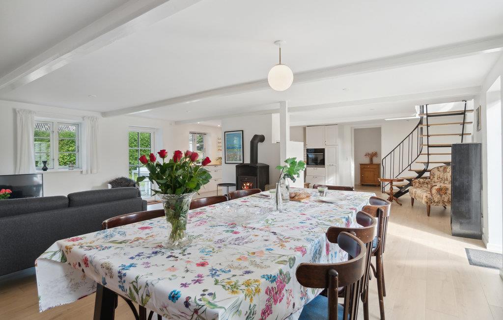 Det moderniserede landsbyhus byder jer velkommen med den perfekte blanding af originale detaljer og moderne faciliteter. Føl jer godt tilpas i de lyse, smagfuldt indrettede lokaler, som byder på masser af plads til en hyggelig samvær. Efter at have spist sammen, kan I sætte jer godt til rette sammen i sofaen, læse en historie, mens brændeovnen knitrer, eller spille et spil sammen og slutte dagen af ??i fred.