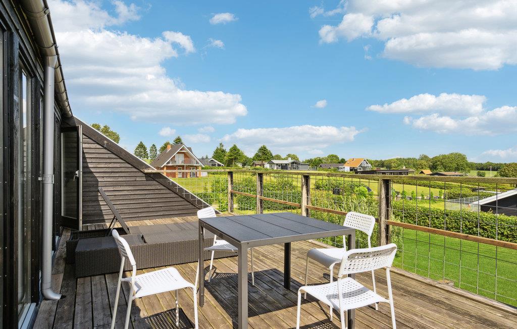 Rummeligt, familievenligt feriehus med flere terrasser og panoramaudsigt over Limfjorden.