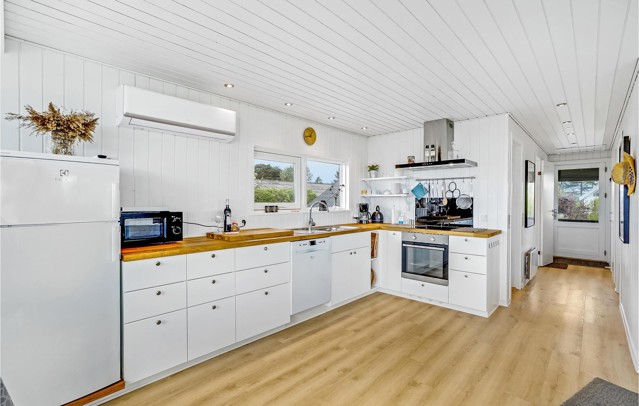 I dette attraktive og renoverede sommerhus er alt klar til en afslappende ferie med hele familien. Huset har 3 soveværelser til op til 6 personer. Værelserne er lyse og moderne, meget lys kommer ind i huset gennem store vinduer. Fra spisepladsen har I en vidunderlig udsigt, og pejsen sørger for ekstra hyggelig stemning. I annekset kan I udfordre hinanden til forskellige spil eller synke ned i biografsæderne og se en god film.