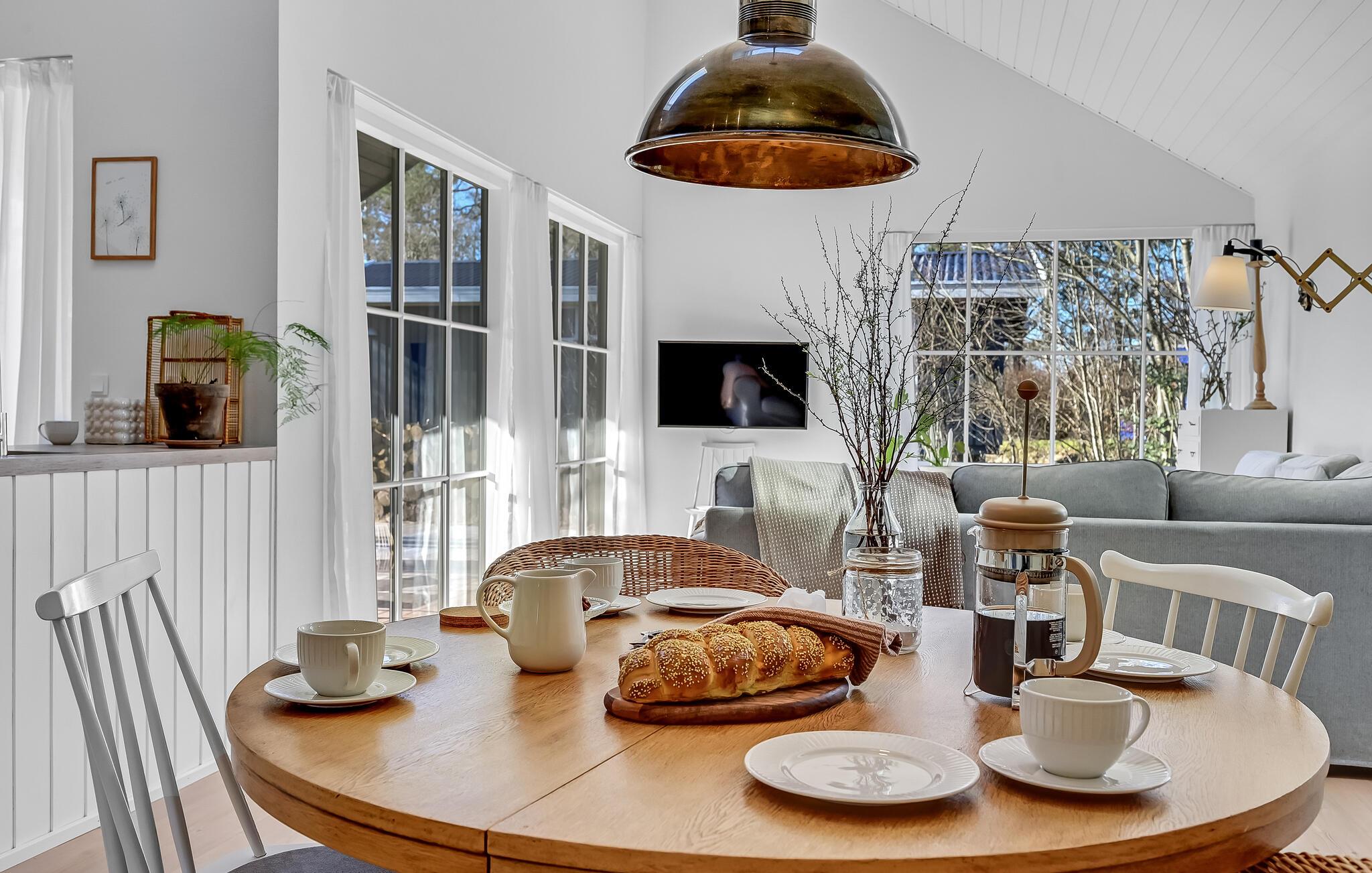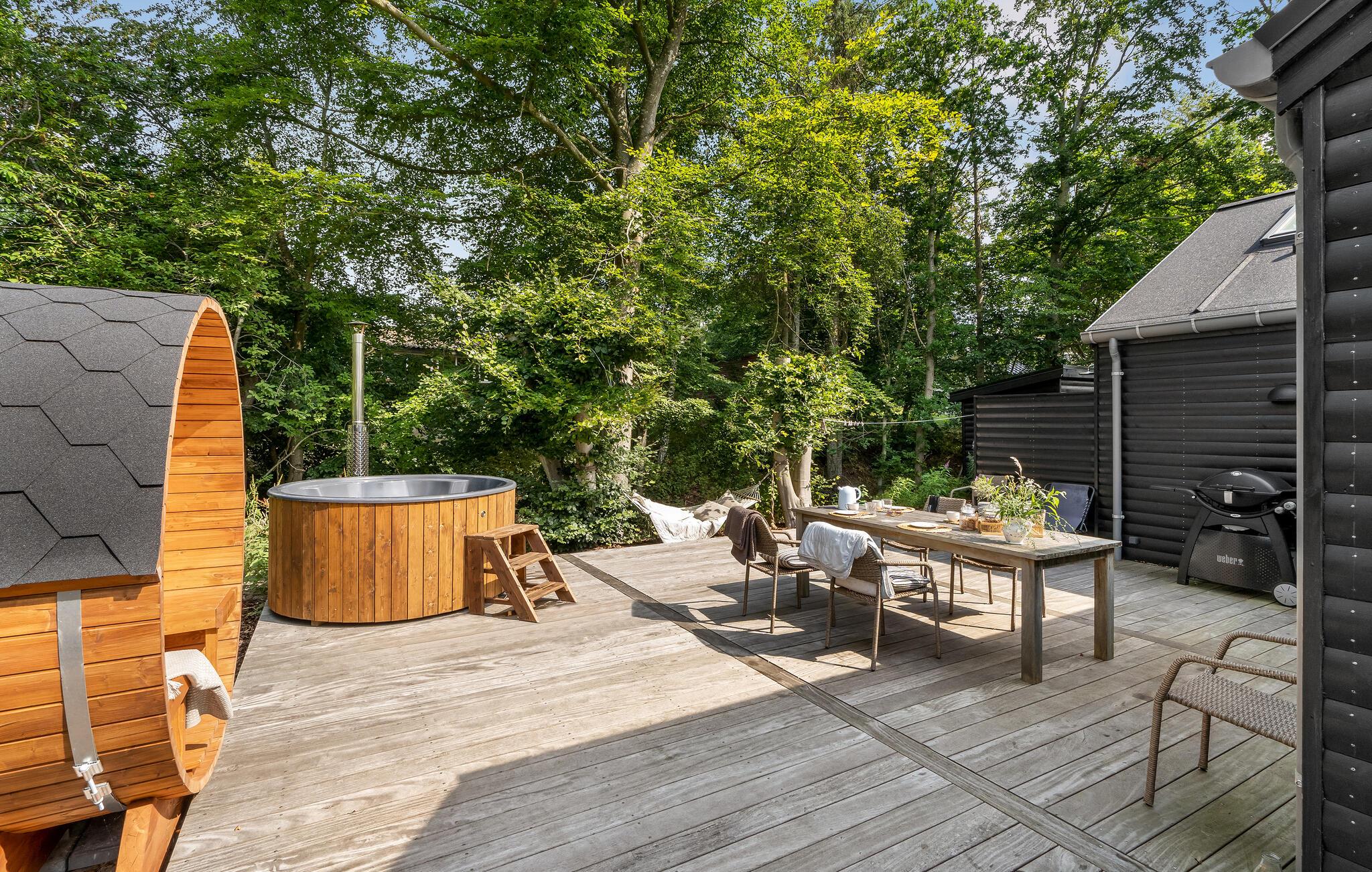 Dette flotte, moderne feriehus er komfortabelt indrettet og byder på mange hyggekroge. Den åbne terrasse med havemøbler og grill er det perfekte sted at nyde morgenmaden og holde hyggelige grillaftener. Det finske vildmarksbad og den udendørs sauna indbyder til rendyrket ferieafslapning.