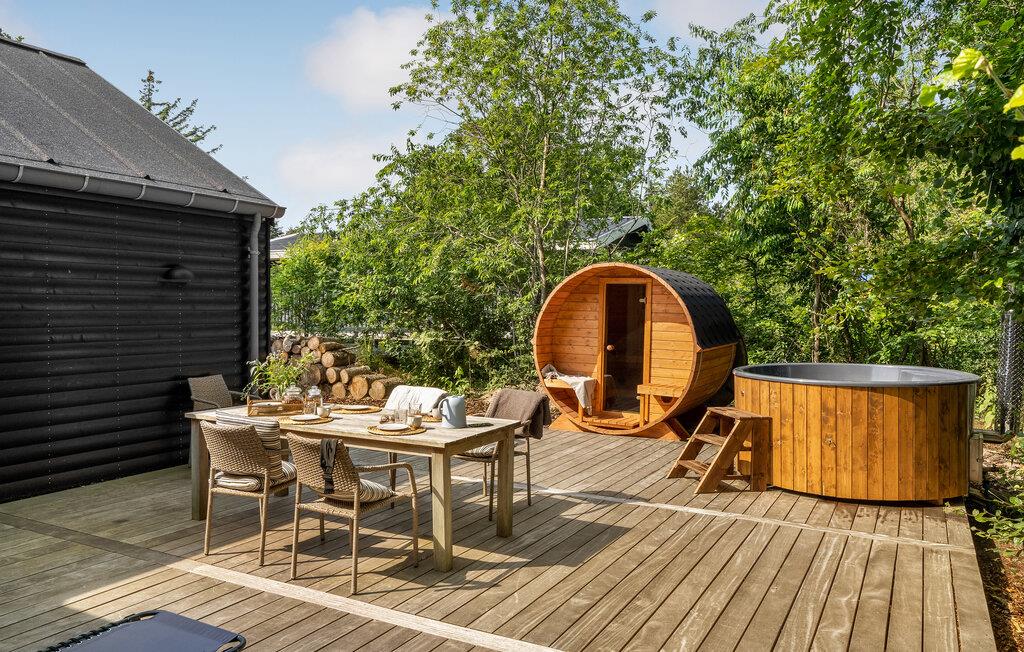 Moderne feriehus ved Øster Hurup Strand med vildmarksbad, sauna og åben terrasse til afslapning og hygge.