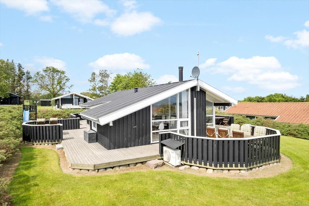 Brændeovn, spabad og sauna, solbeskinnede terrasser og så endda en fin havudsigt fra opholdsafdelingen – det er bare et udvalg af detaljer, der gør det til en udsøgt fornøjelse at holde ferie i dette dejlige sommerhus.