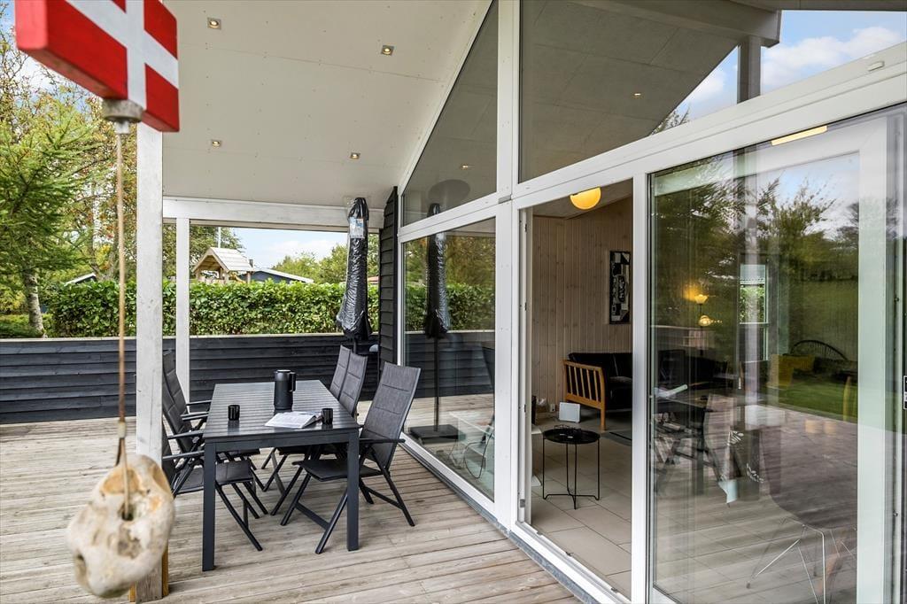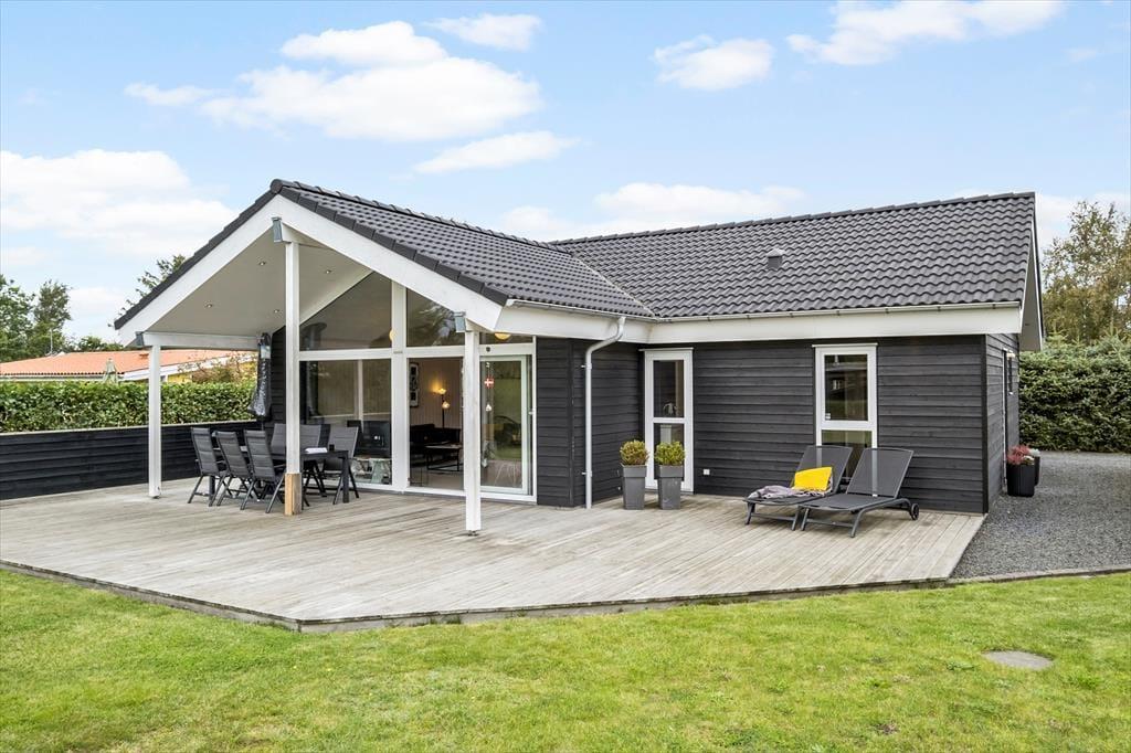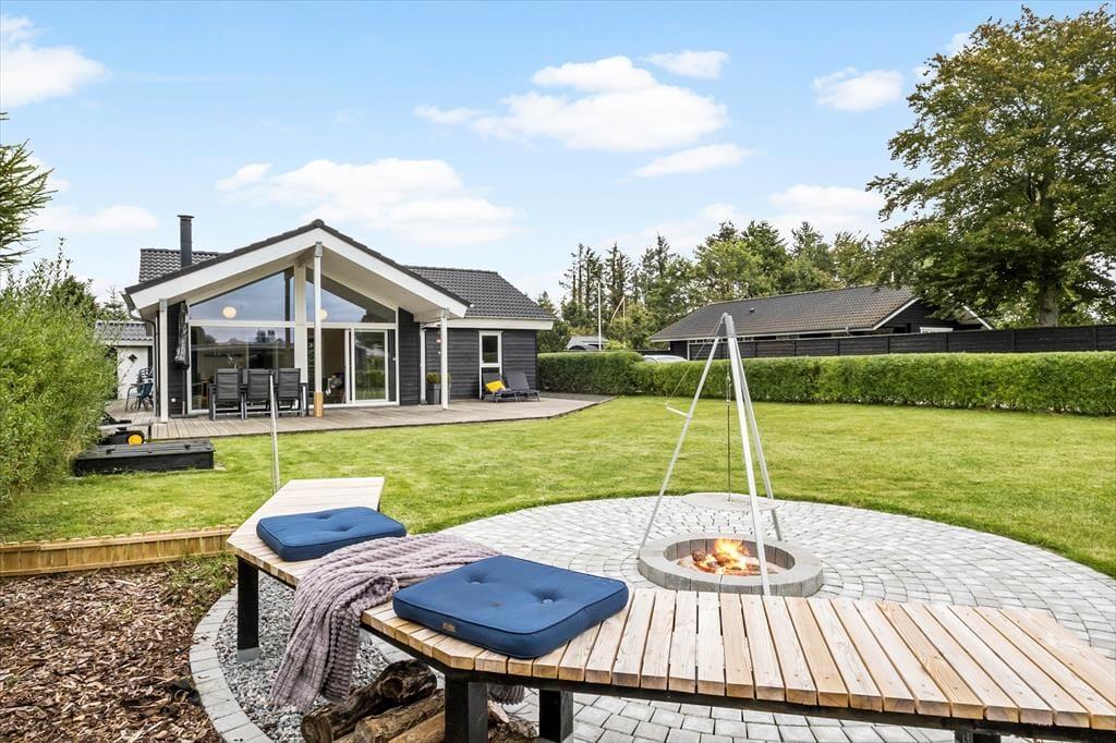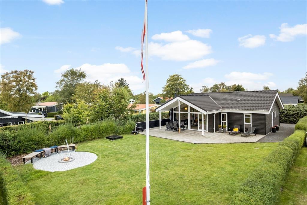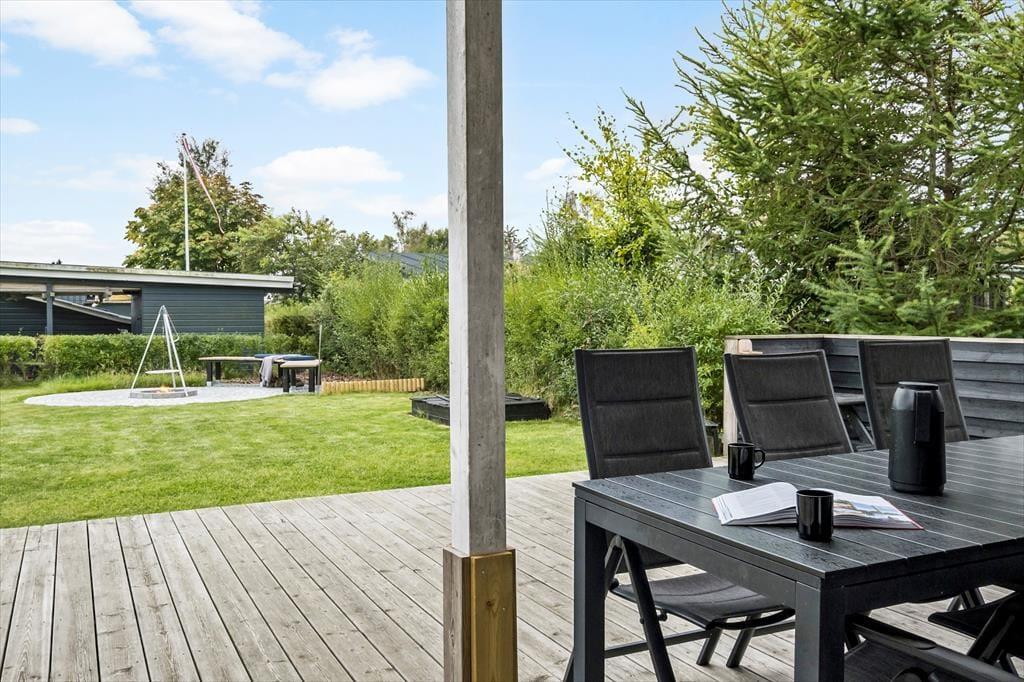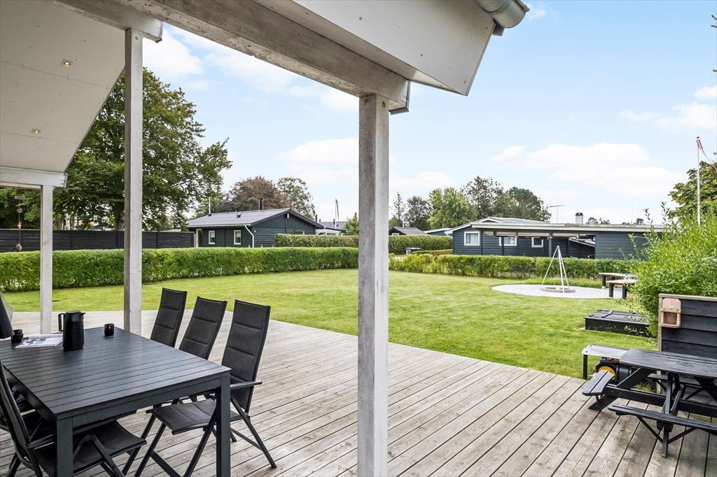 Huset ligger på en forholdsvist lille grund, men der er alligevel god plads til at spille bold og tumle på græsplænen rundt om huset. På husets kæmpe terrasse, hvor en stor del er overdækket, er det masser af plads til at nyde ferielivet og grille til den store guldmedalje.