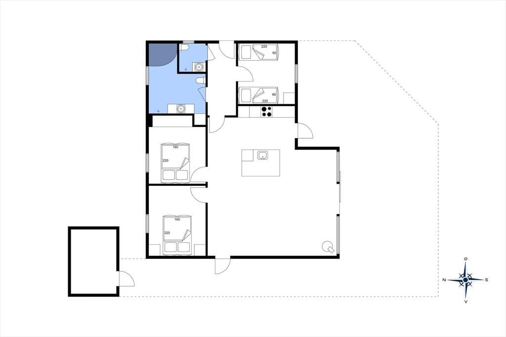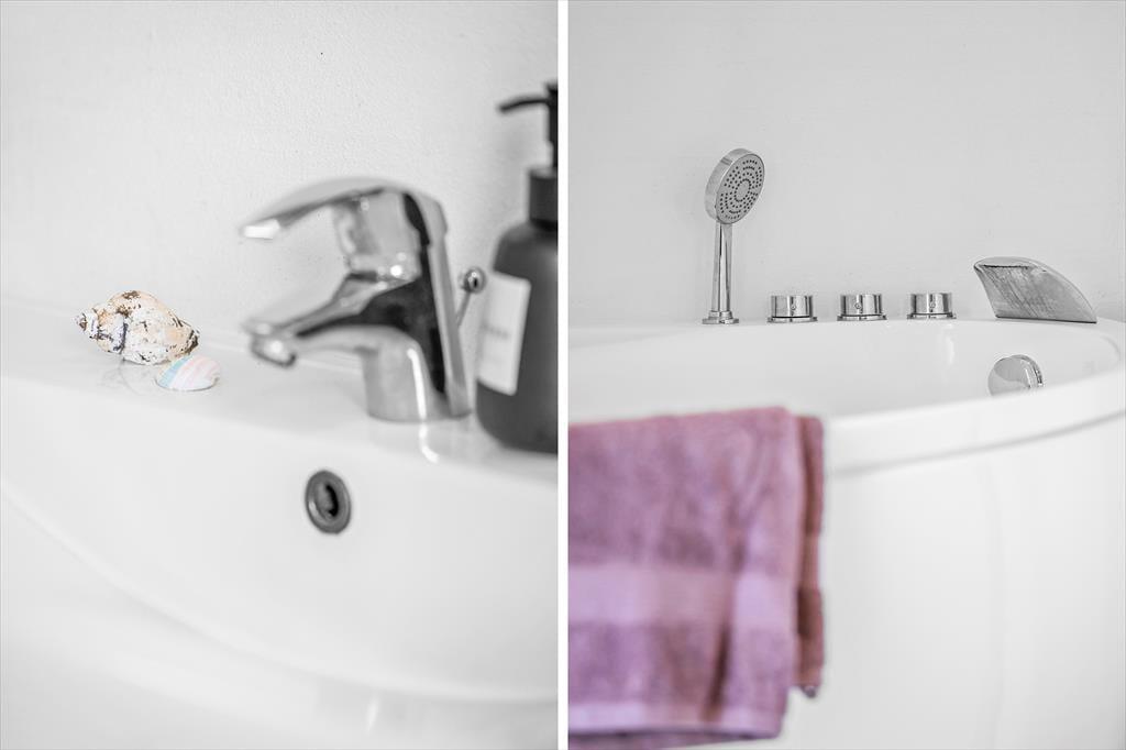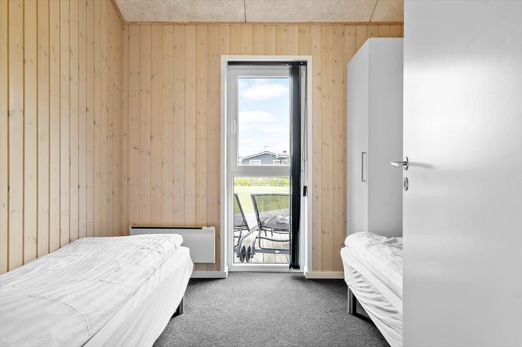 Husets store køkken-alrum-stue har loft til kip og det giver en følelse af enormt megen plads og så lader det en masse dejligt lyd strømme ind i de områder af huset, hvor det meste af ferien - i hvert fald den del, der foregår indenfor - finder sted. Fra stuen er der adgang til to rummelige værelser med dobbeltsenge, mens der via en gang er adgang til husets 3. værelse med to enkeltsenge, samt de to badeværelser, hvor der på det store er et skønt spabad.