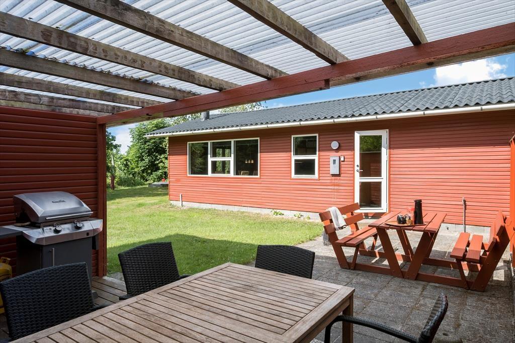 Skinner sommersolen, kan I overveje, om morgenmaden og dagens første kop kaffe skal indtages ude i det fri på den 1320 m2 store grund. I hvert fald er det herlige terrassemiljø perfekt til formålet, for det ligger dejligt ugeneret og i læ af sommerhus og plankeværk. En del af terrassen er for øvrigt overdækket, hvis I foretrækker en skyggefuld opholdsplads, mens I griller og hyggesnakker.