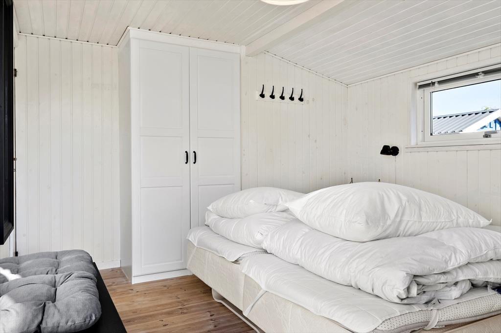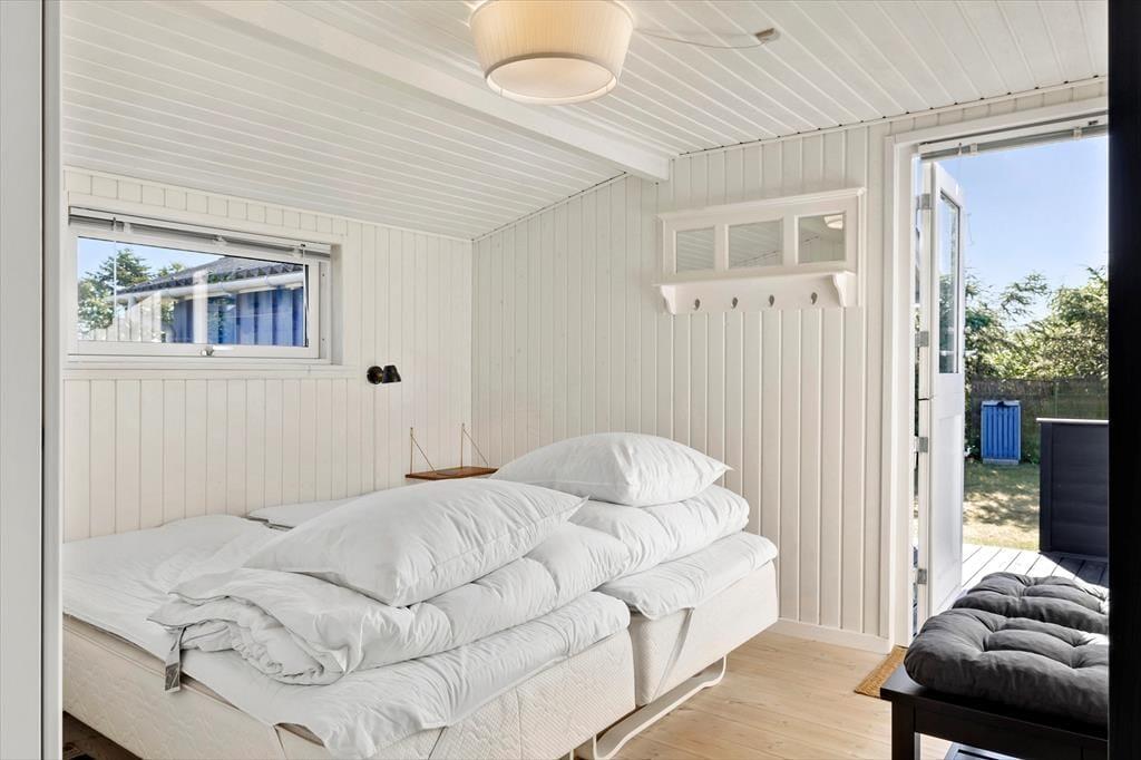 Huset emmer af klassisk charme med sin blåmalede træfacade og hvide vinduesrammer, der skaber en skøn kontrast til alt det grønne i haven. Her mærker man feriefølelsen indfinde sig, så snart man parkerer bilen! Indenfor i huset er der lyst og indbydende, og indretningen er ideel til det hyggelige samvær på ferieturen. Stue og køkken ligger i åben forbindelse, og en brændeovn tilfører ekstra lune, når aftenen falder på. Hjørnevinduerne i stuen trækker masser af lys ind i huset. I får tre soverum, hvoraf de to har egen udgang til terrasse. Herudover et badeværelse med brus.