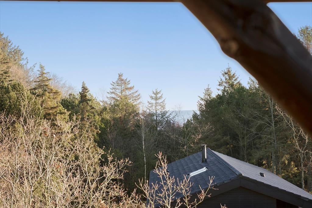 Den skovklædte naturgrund ligger så tæt på stranden, at det kun tager et kort øjeblik at gå fra hoveddøren og ned til vandkanten. Vil I starte dagen med en morgendukkert, skal I bare beslutte, om I vil tage kaffen med ned på stranden eller vente med at indtage den, indtil I er tilbage på terrassen – og hvis I er stået tidligt nok op, kan badeturen endda foregå, mens solen stiger op over Kattegat. Fra den tilbagetrukne adresse har I nem adgang til Øster Hurups bymidte, når I vil købe ind eller ud at spise, og I kan også sætte kursen mod byens hyggelige havn, der ligger cirka halvanden kilometer mod nord.