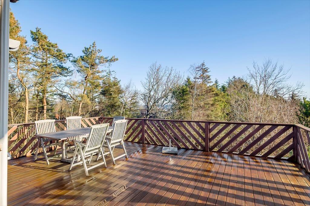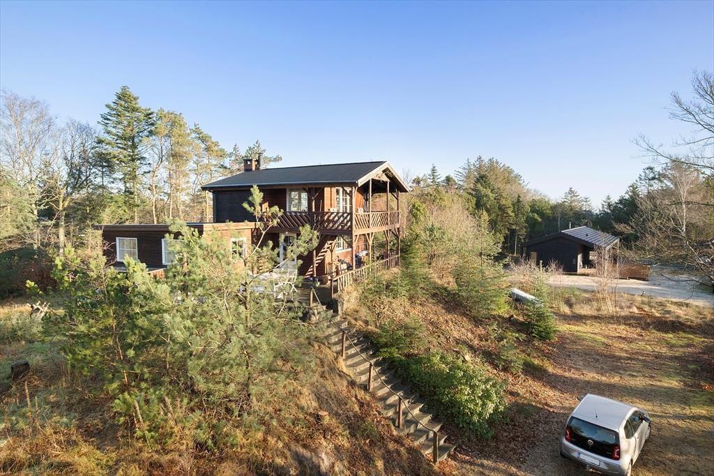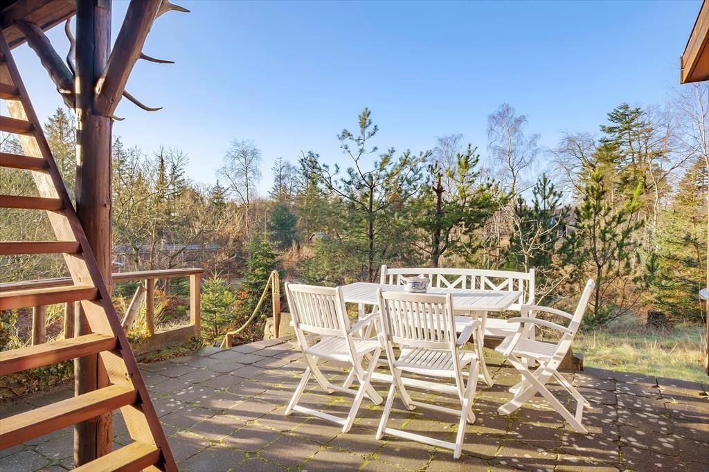 I har god grund til at glæde jer til feriens udendørs stunder, for det er herligt at sidde her på naturgrunden mellem duftende nåletræer og grønt løvhang. Fra køkken-alrummet og spisestuen kan I gå lige ud på de sydvendte terrasser, og i forlængelse af førstesalen finder I både en overdækket altan og en åben tagterrasse, hvor I kan sole jer og slappe af dagen lang.